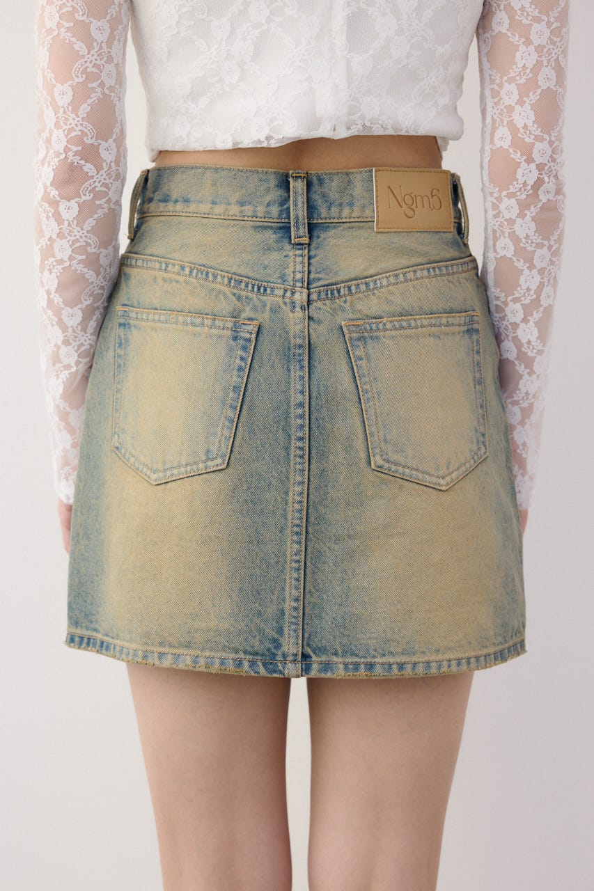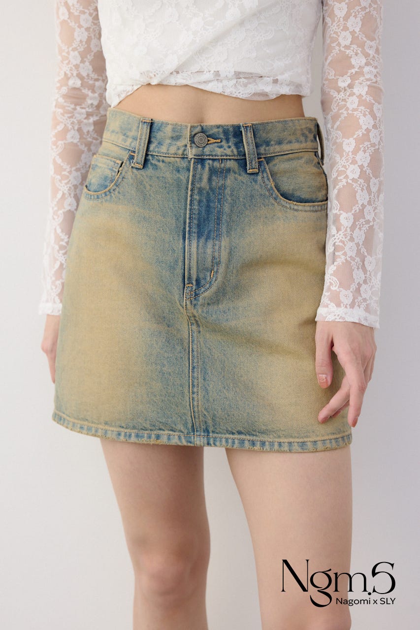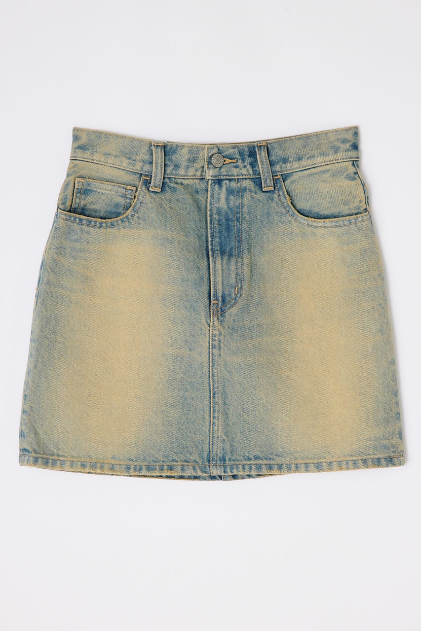 ■DETAIL:オーバーダイ加工を施しているので、ヴィンテージ感漂う印象に。バランスの良い台形シルエットで、太もも周りもカバーすることができる万能アイテムです。