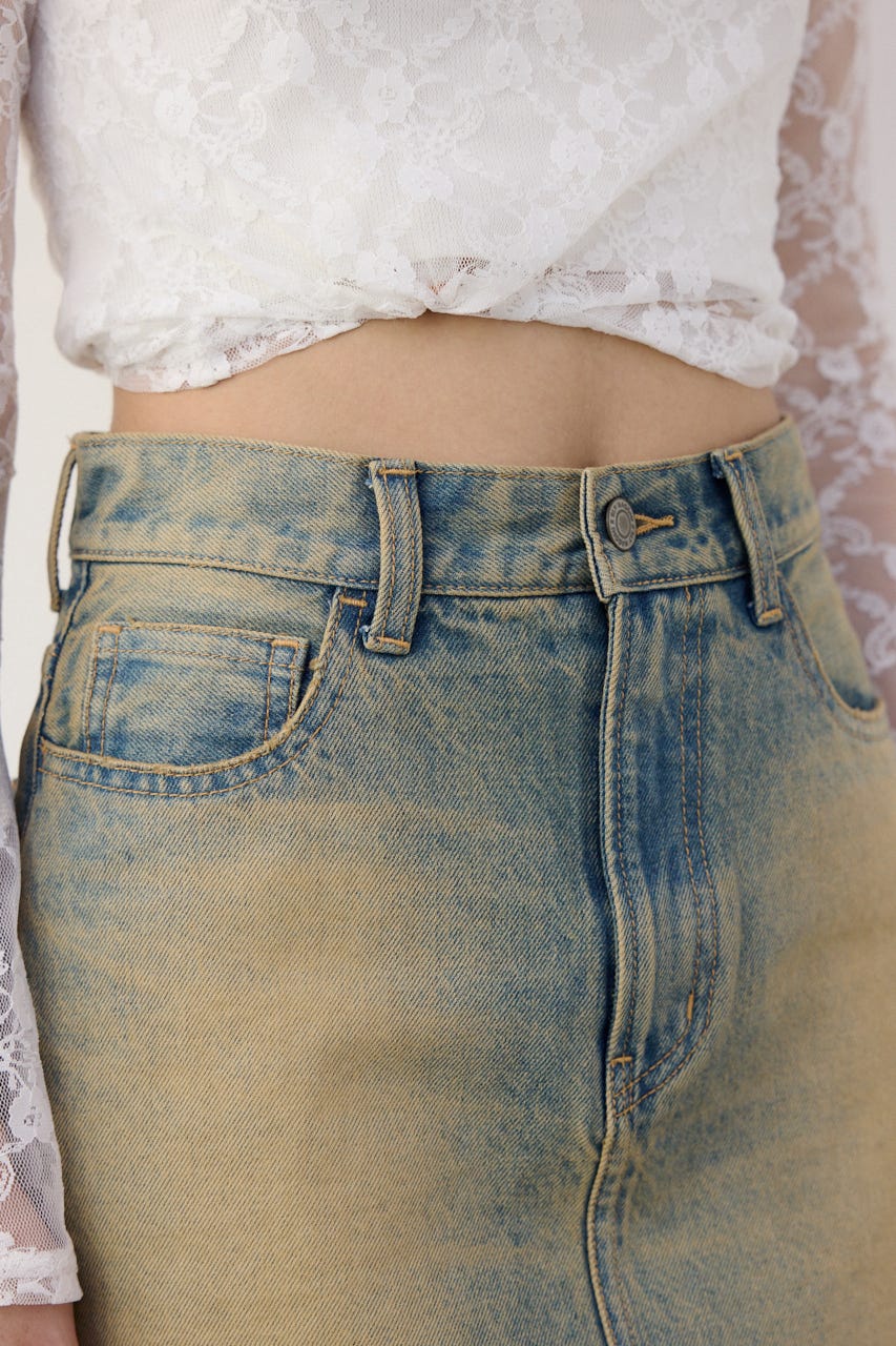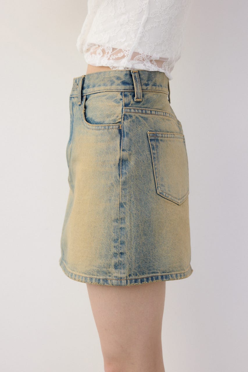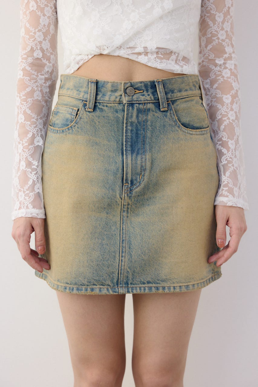 ■DETAIL:オーバーダイ加工を施しているので、ヴィンテージ感漂う印象に。バランスの良い台形シルエットで、太もも周りもカバーすることができる万能アイテムです。