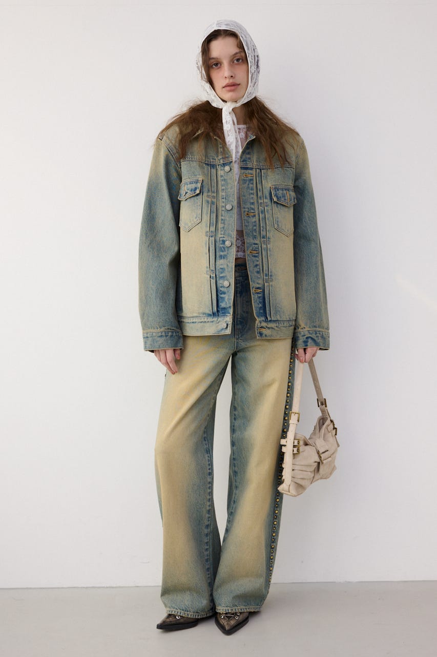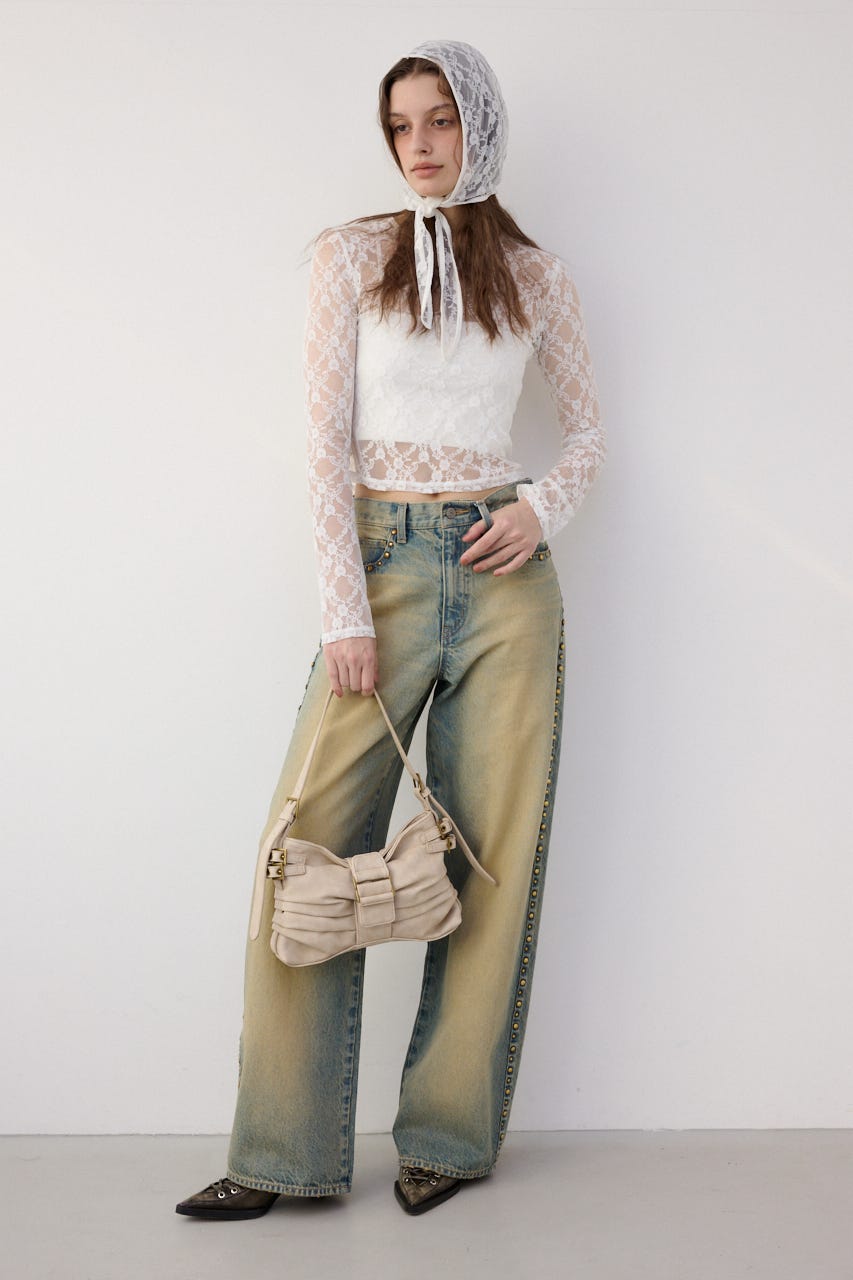 ■POINT:モデルとして活躍するなごみを起用して制作されたコラボレーション企画。サイドに施されたスタッズが今季のムード漂うジーンズ。後ろベルトには本コラボレーションオリジナルの合皮パッチを付けています。