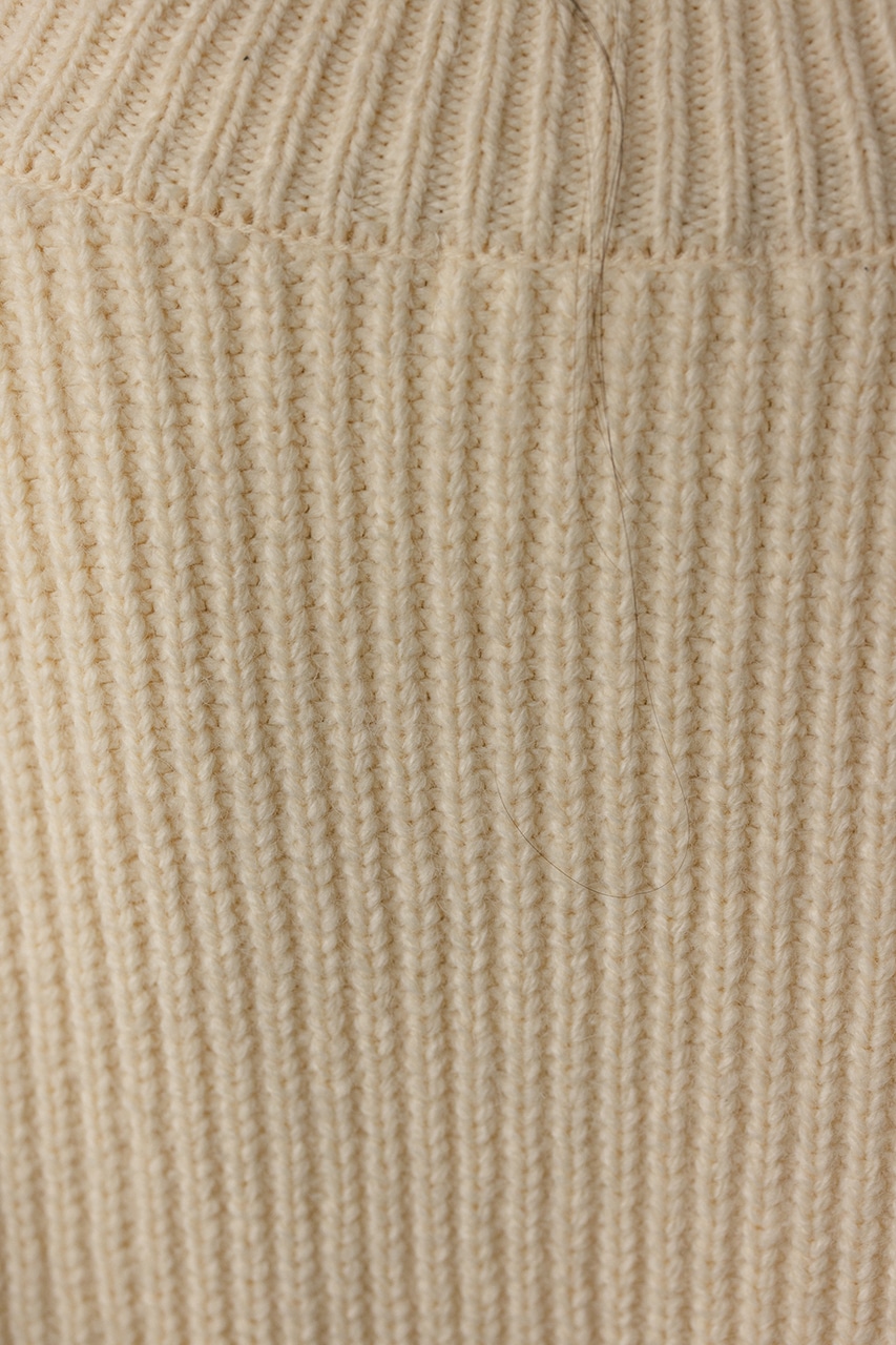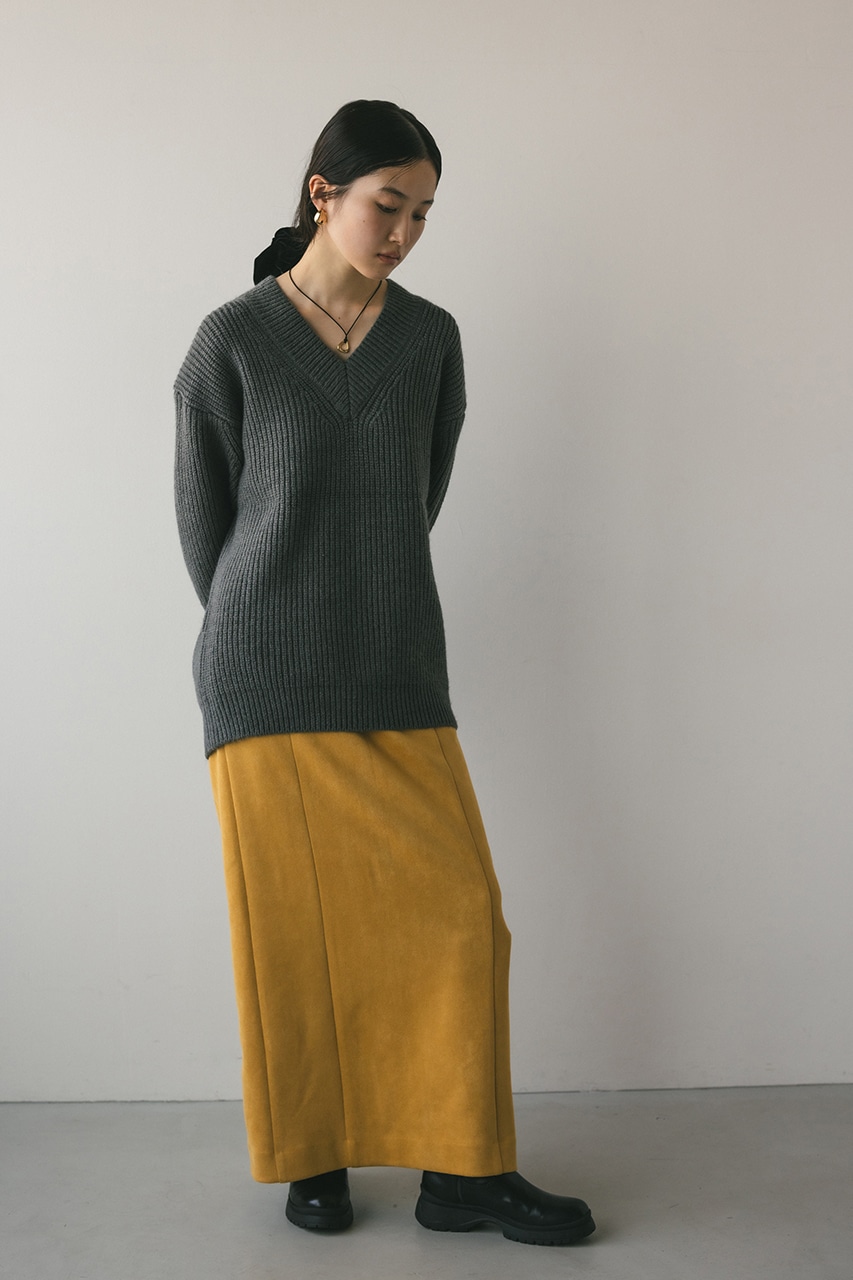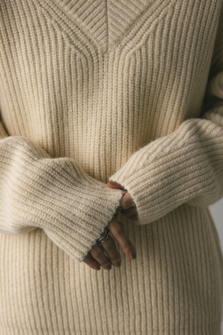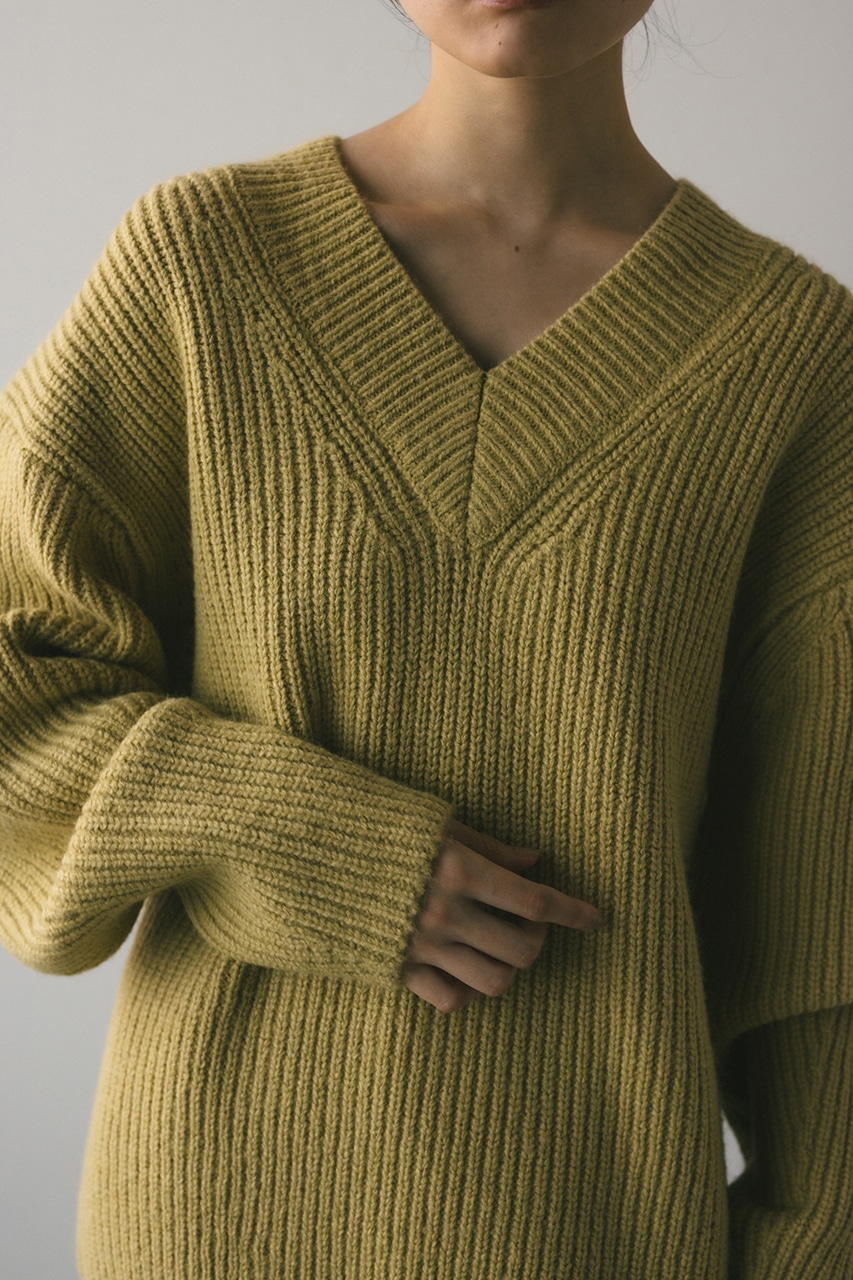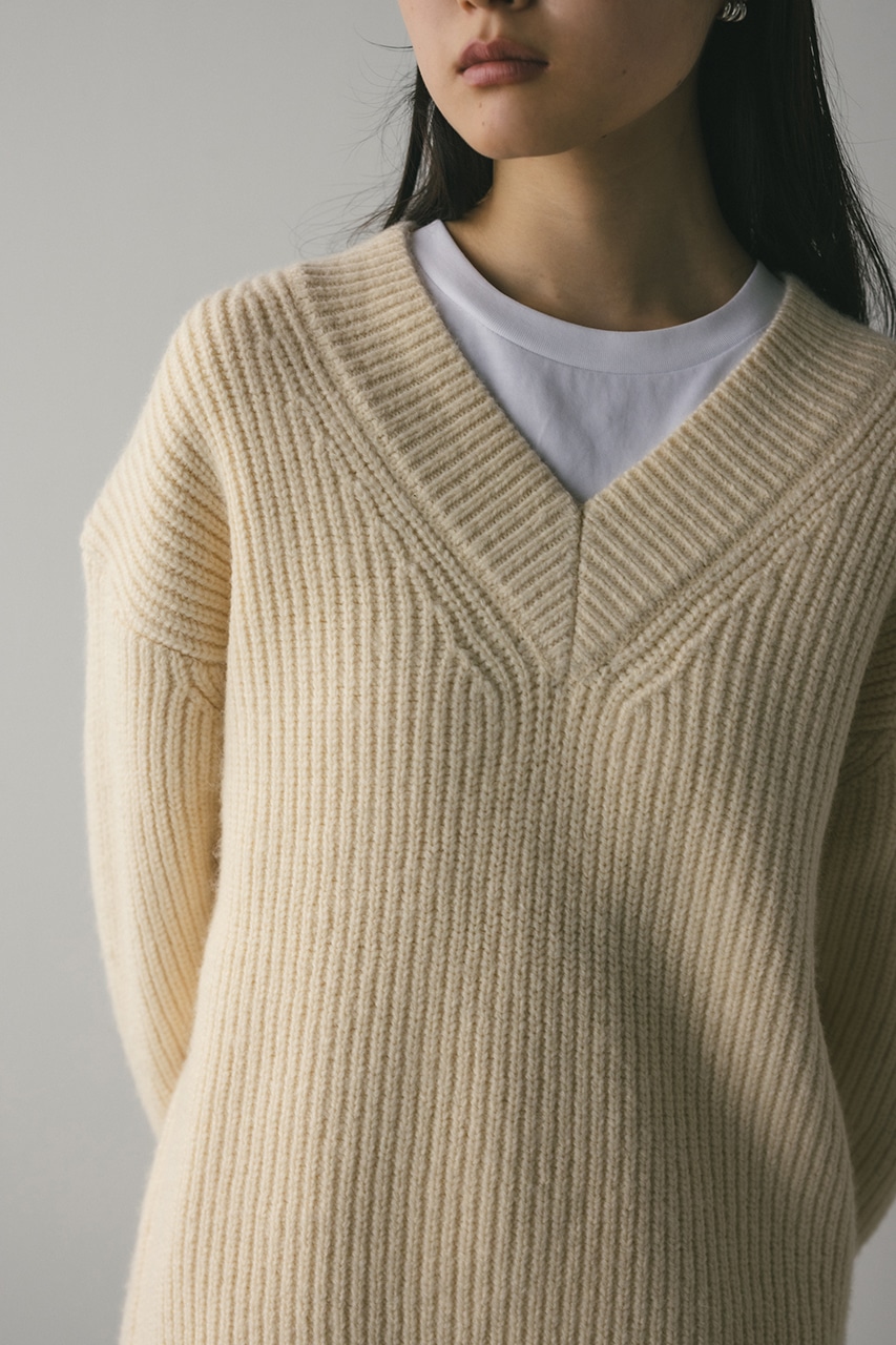 程よく開けたVネックが女性らしいローゲージのニットトップ。