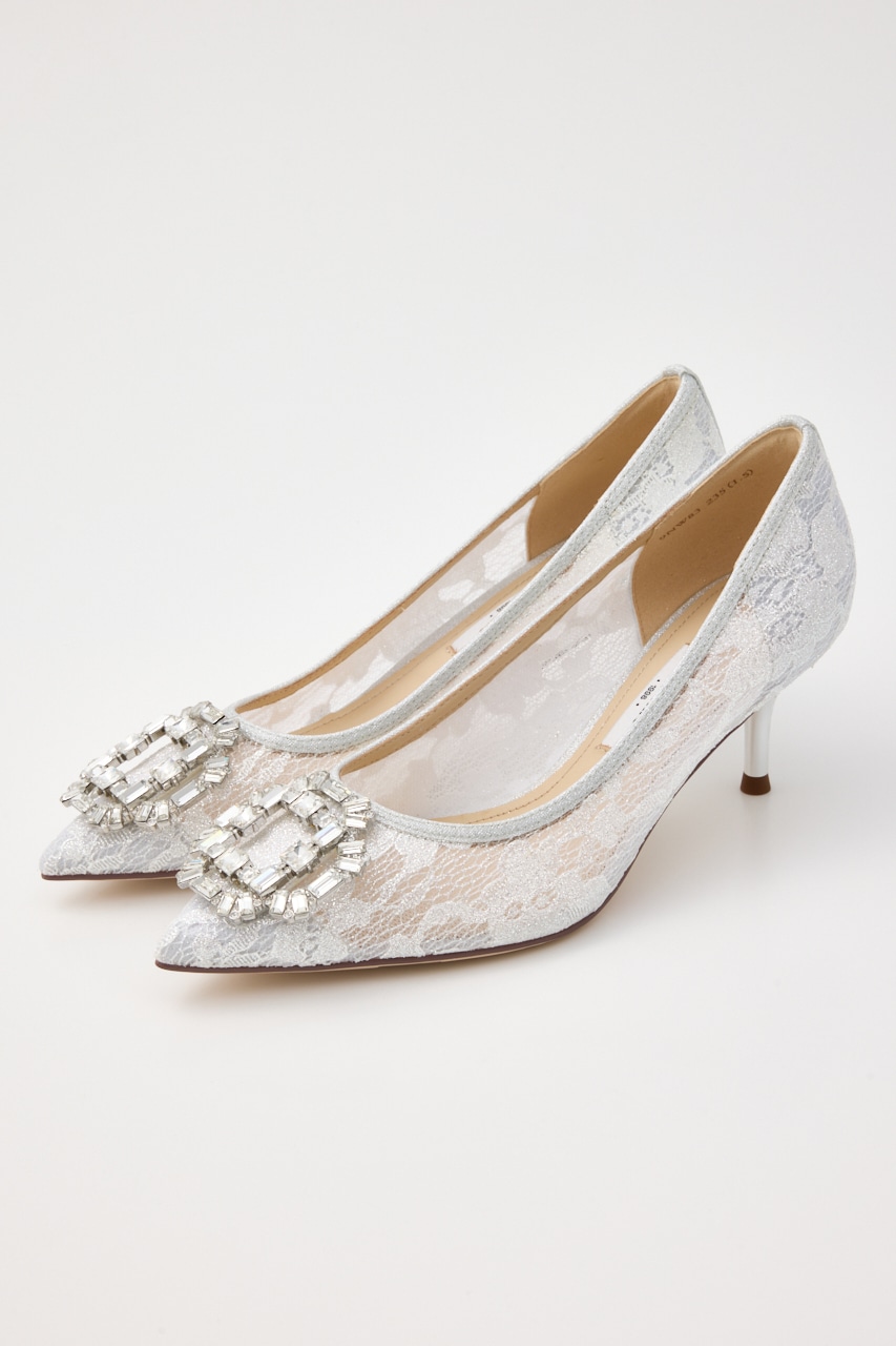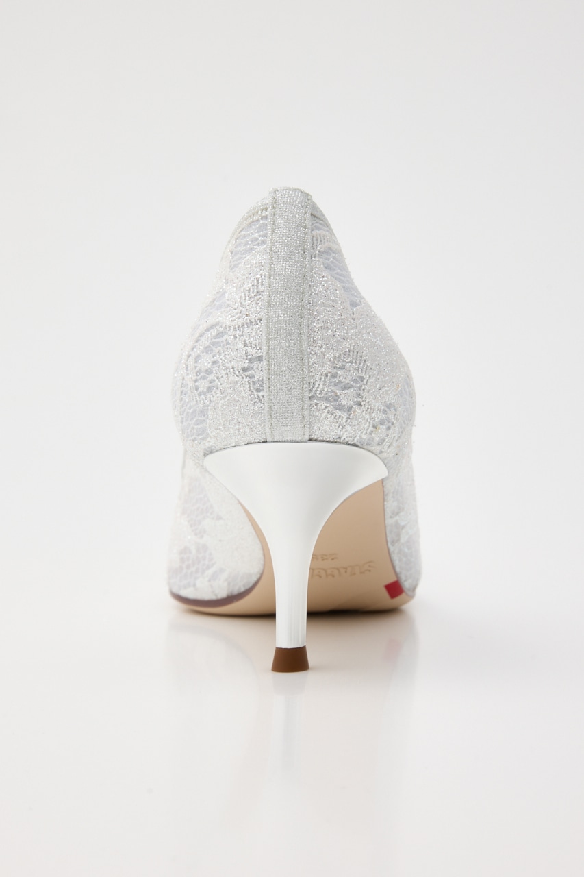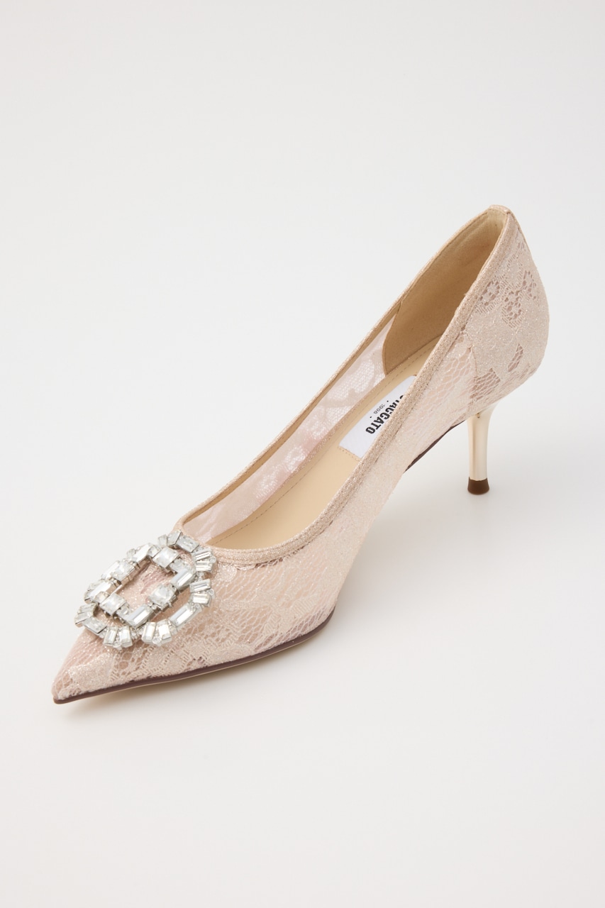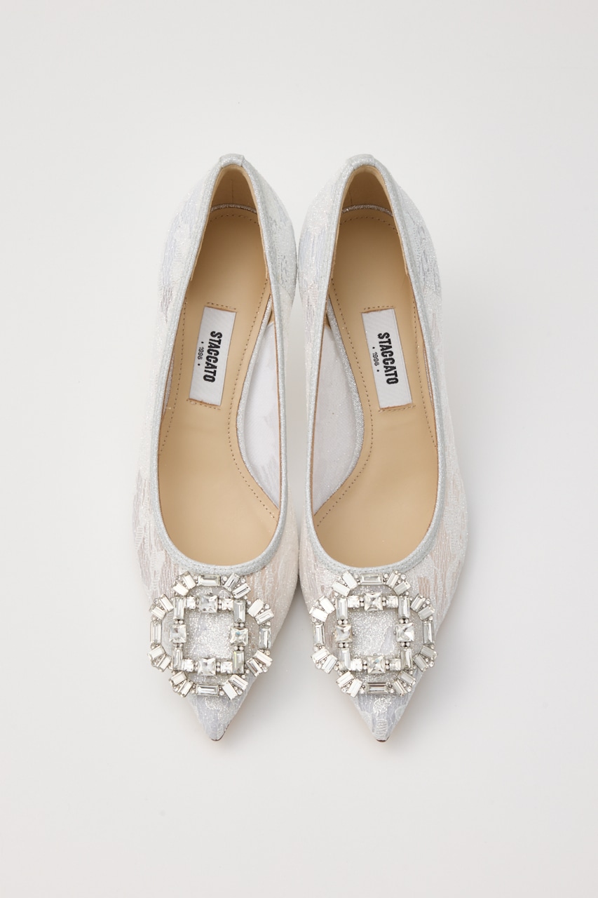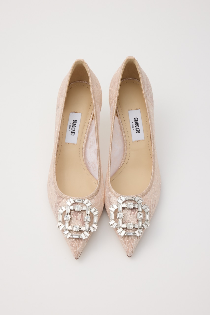STACCATOらしい煌びやかでとびきりゴージャスなレーシーパンプス。ソフトで透け感のあるレースにはさり気なくラメ感がより一層華やかに。繊細さ際立つ立体的なクリスタルバックルがさらに足元に注目を集めてくれる、特別な日にも相応しい1足です。