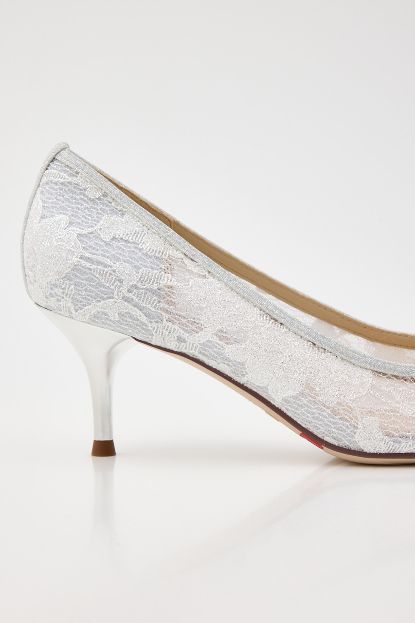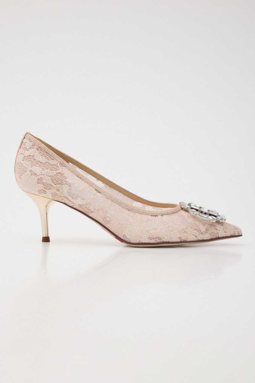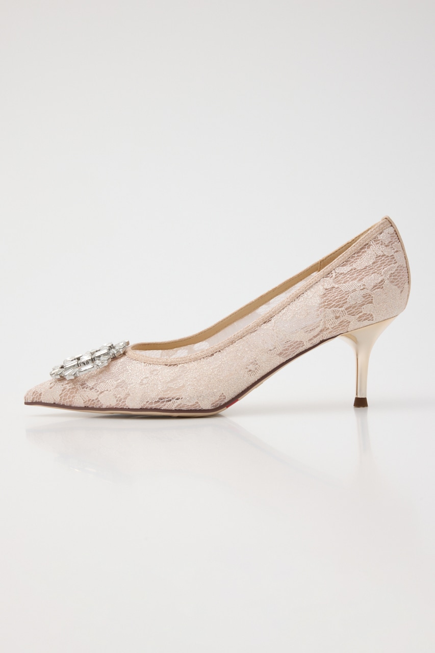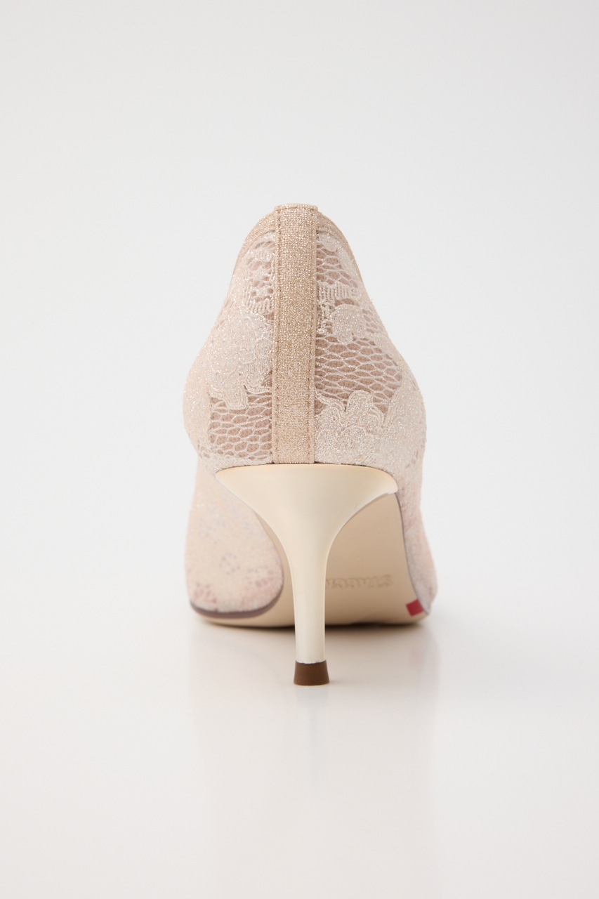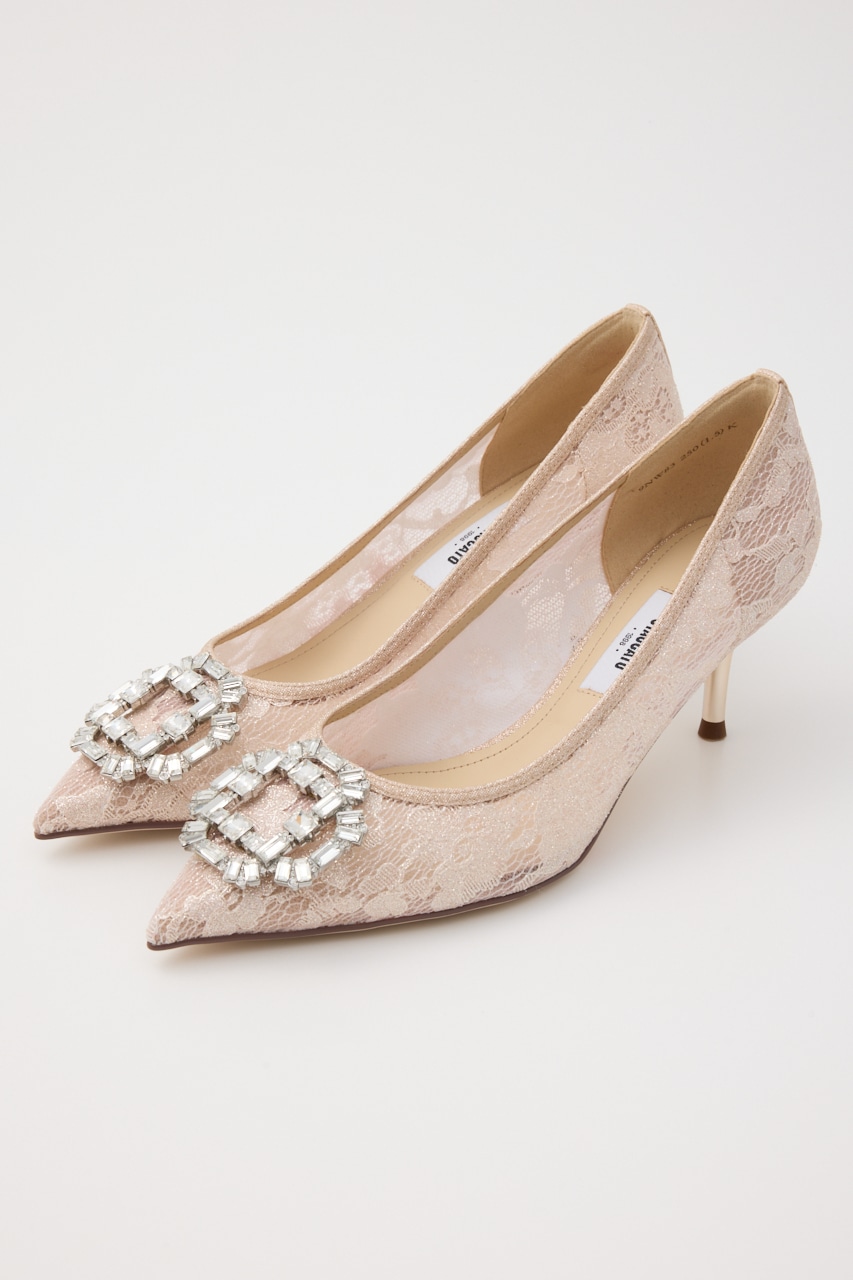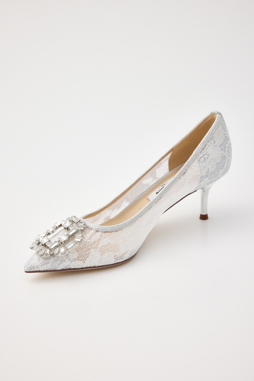 STACCATOらしい煌びやかでとびきりゴージャスなレーシーパンプス。ソフトで透け感のあるレースにはさり気なくラメ感がより一層華やかに。繊細さ際立つ立体的なクリスタルバックルがさらに足元に注目を集めてくれる、特別な日にも相応しい1足です。