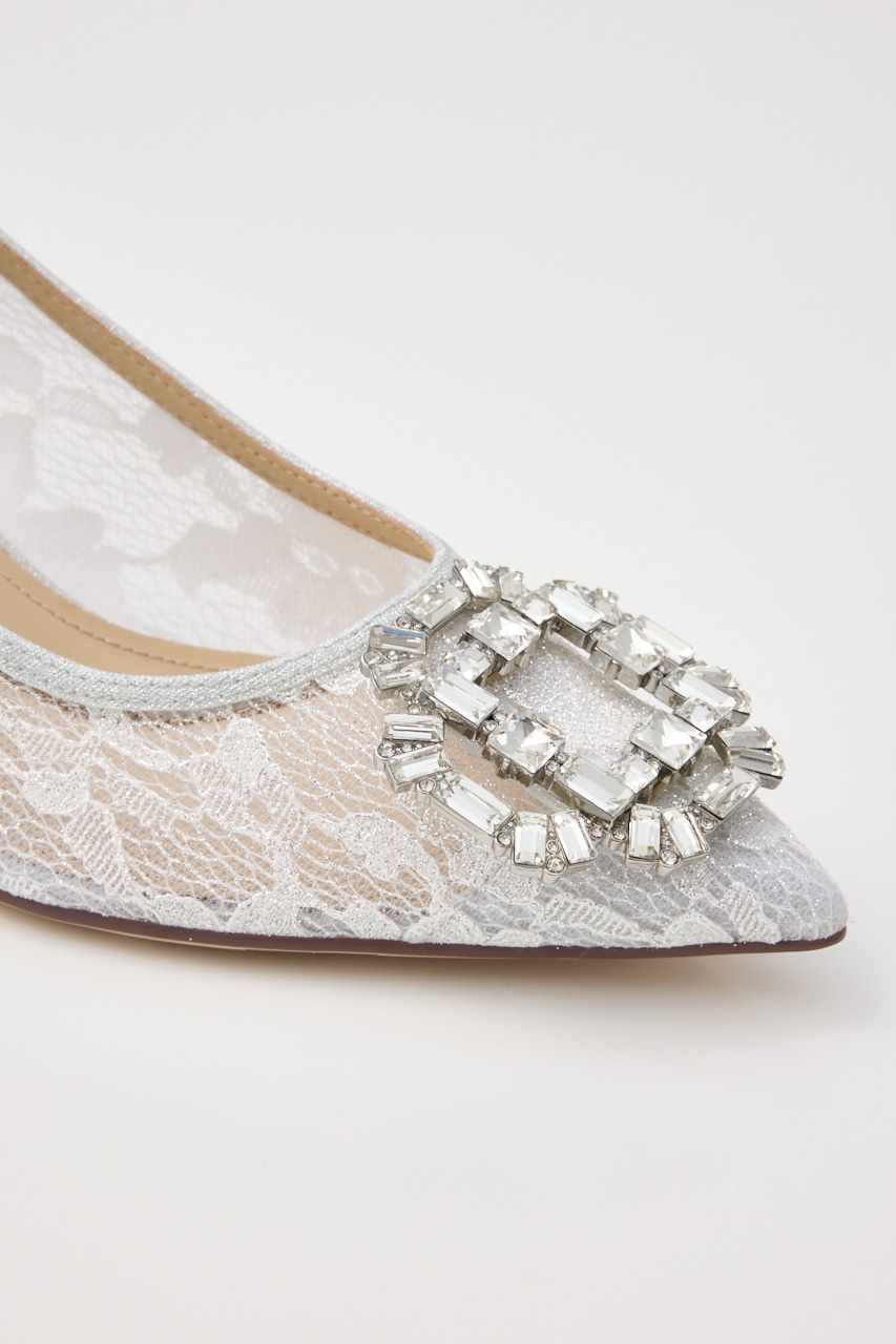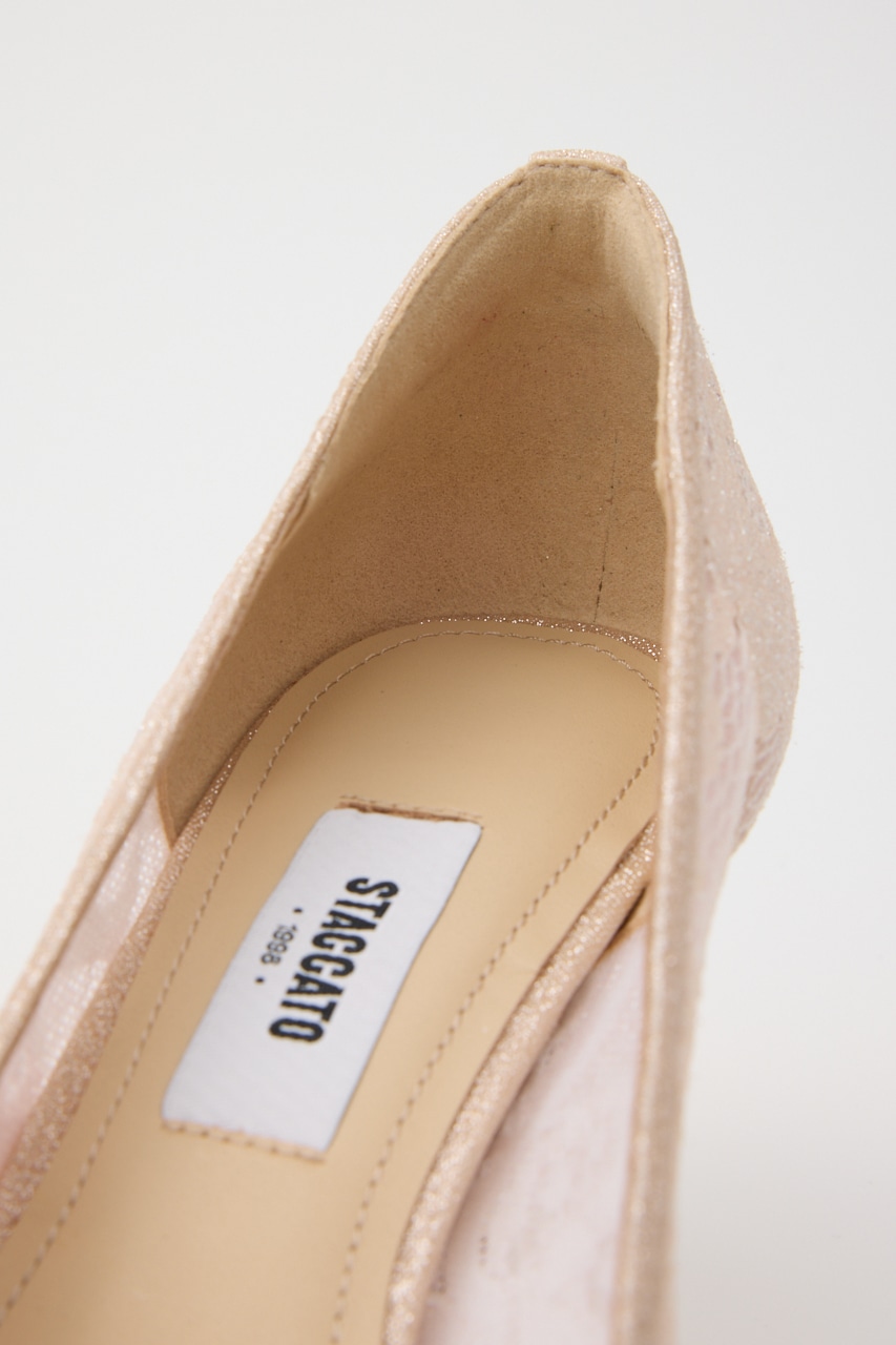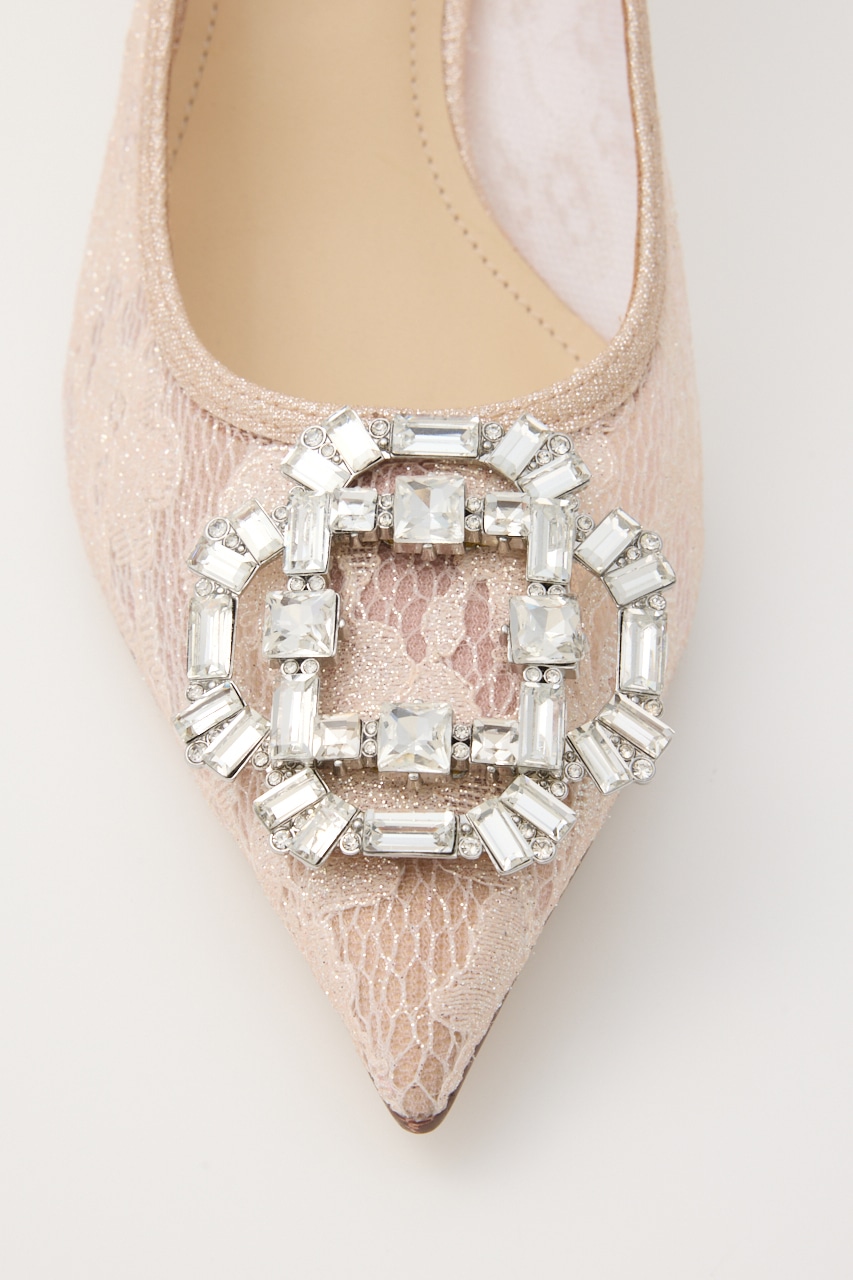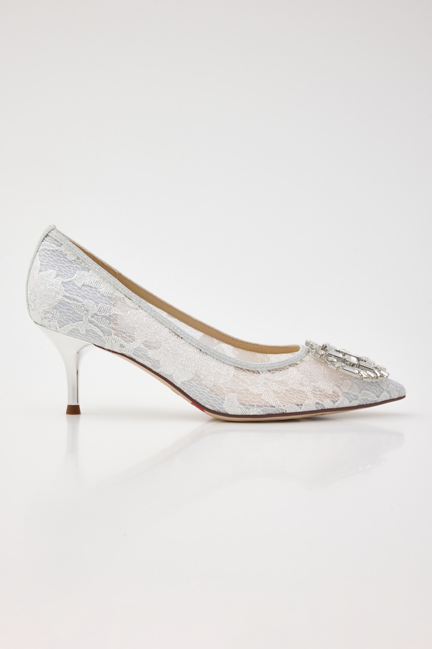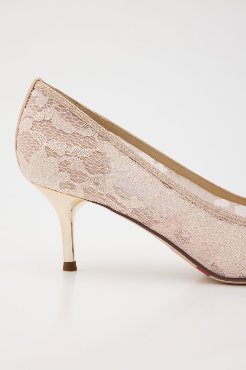 STACCATOらしい煌びやかでとびきりゴージャスなレーシーパンプス。ソフトで透け感のあるレースにはさり気なくラメ感がより一層華やかに。繊細さ際立つ立体的なクリスタルバックルがさらに足元に注目を集めてくれる、特別な日にも相応しい1足です。