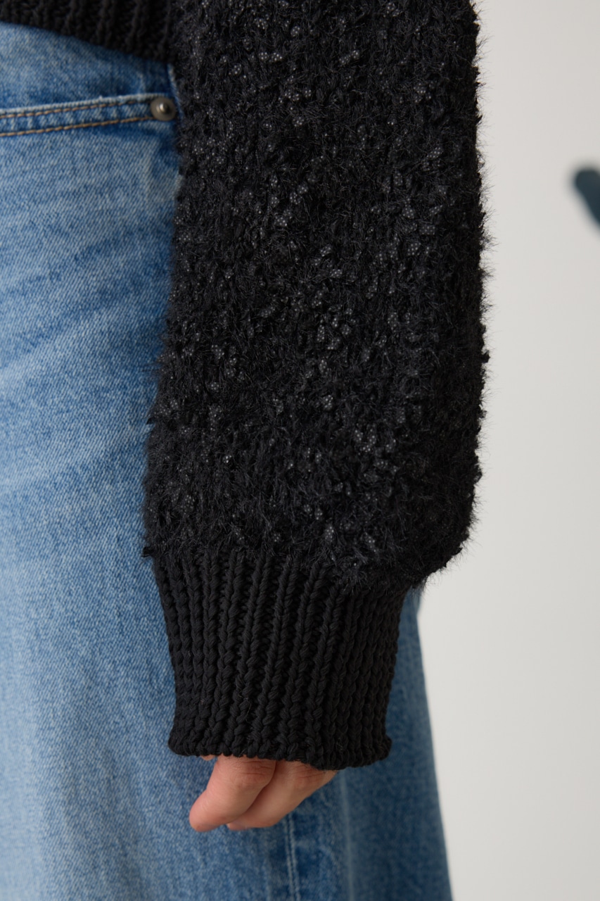 ■素材:リボンヤーンやシャギーなど3種類の糸を引き揃えて編んだニット素材を使用しています。