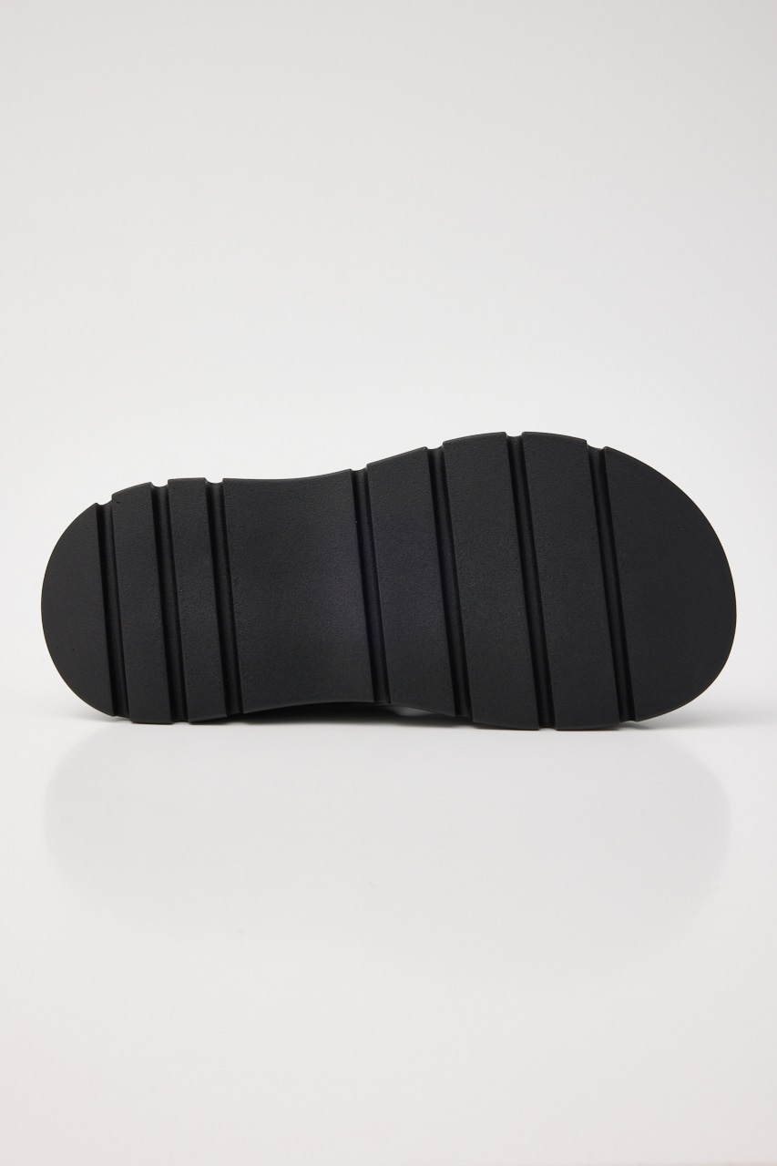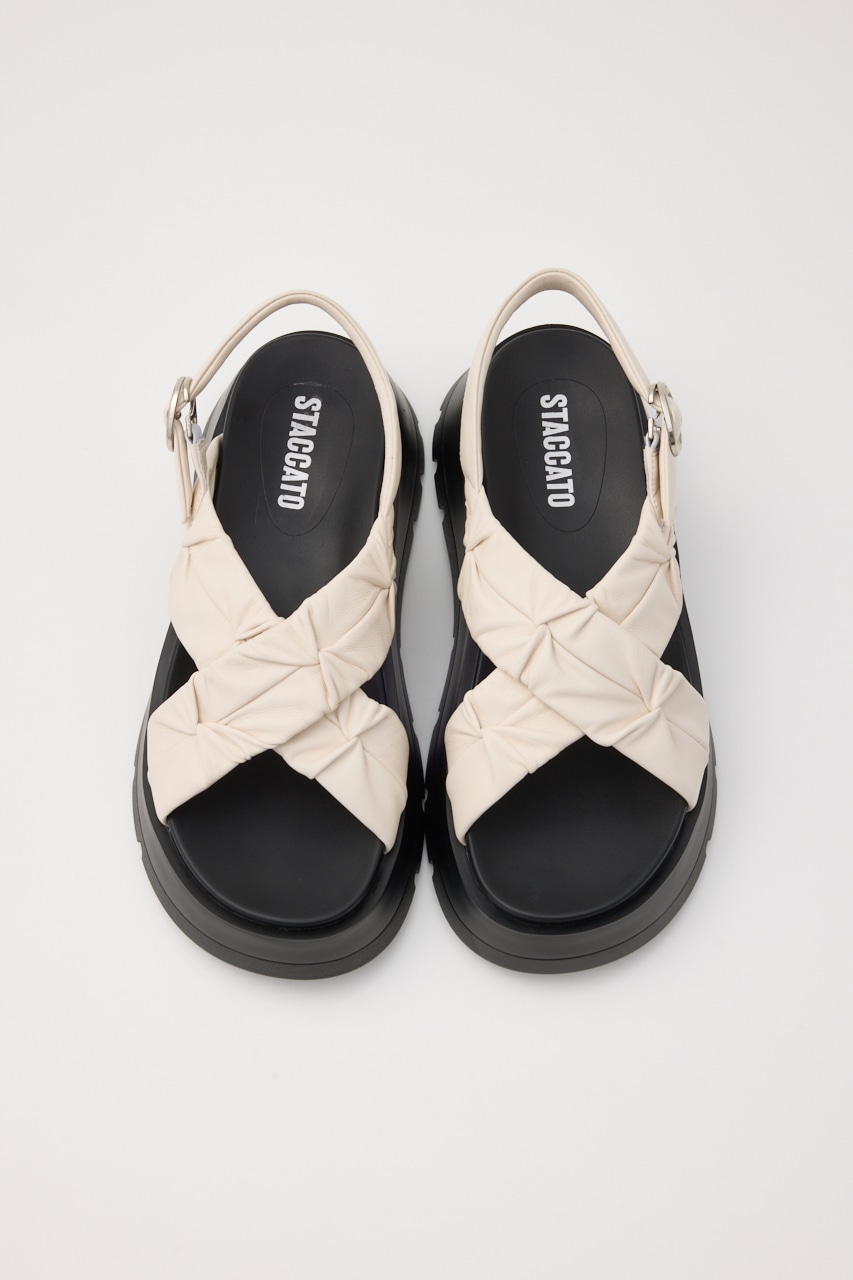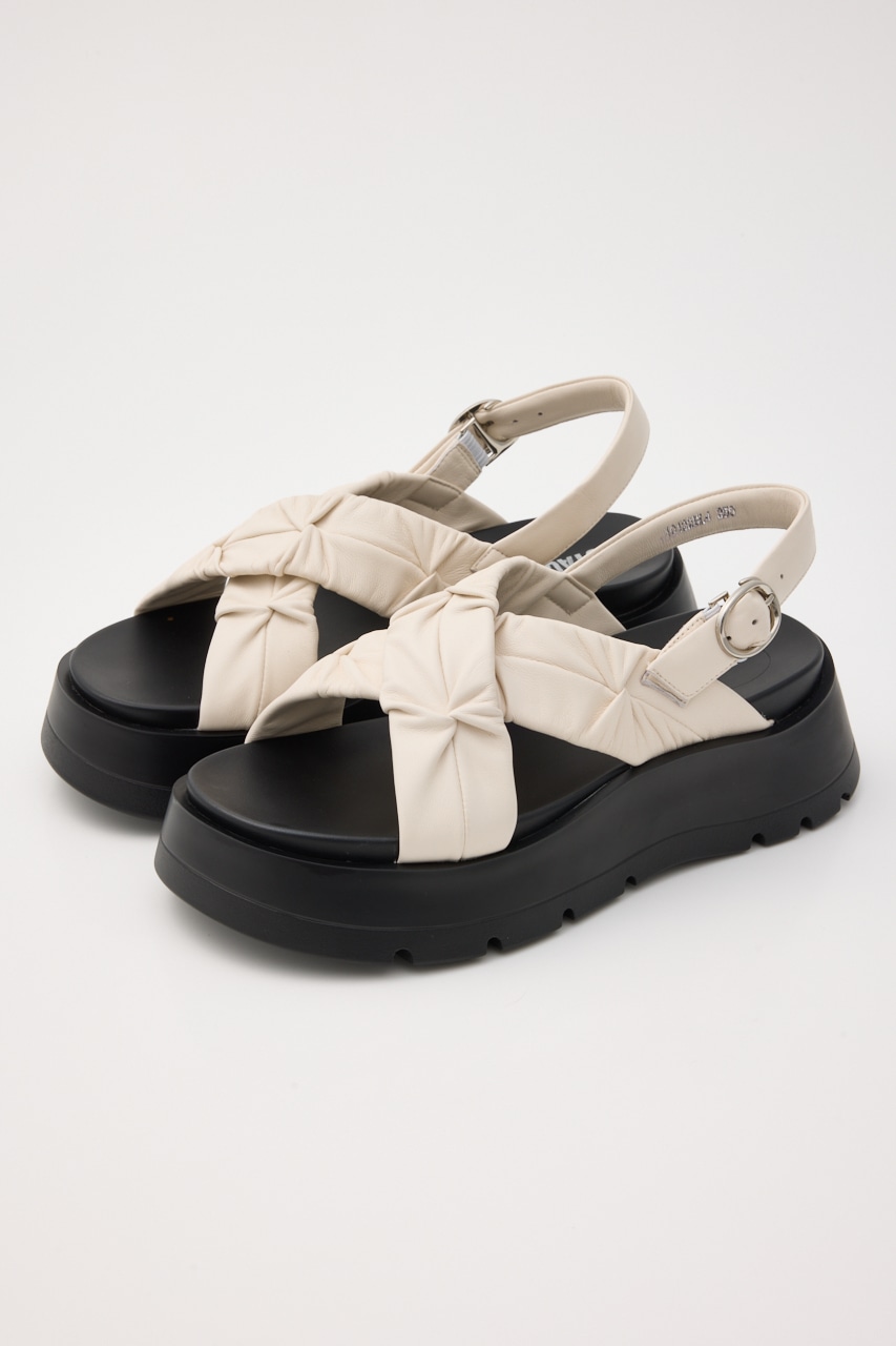 ツイスト風の表情感あるクロスベルトがおしゃれなボリュームソールサンダル。ベルト部分はふんわりとして足あたりも◎ソックス合わせにも相性のよい、ぽってりとした厚みのある船底ソールが今っぽい足元にアクセントつけてくれます。