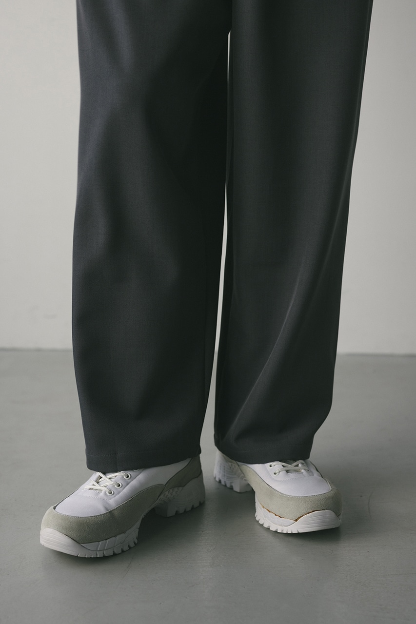 落ち感のあるクリーンなポリエステルツイルを使用。