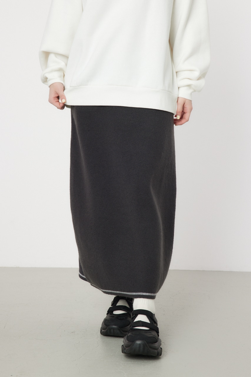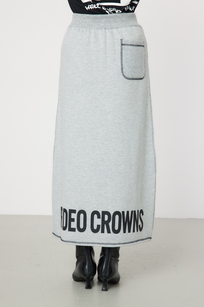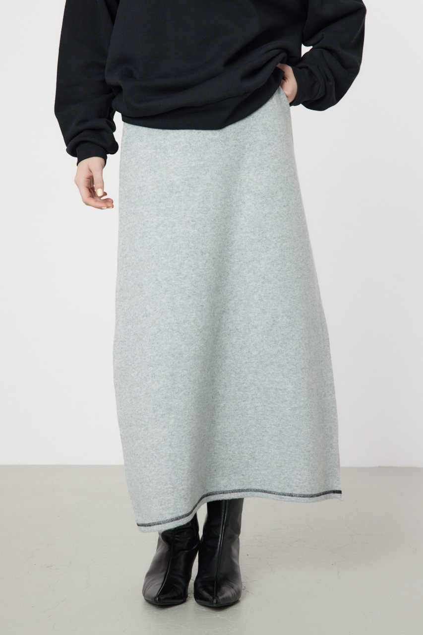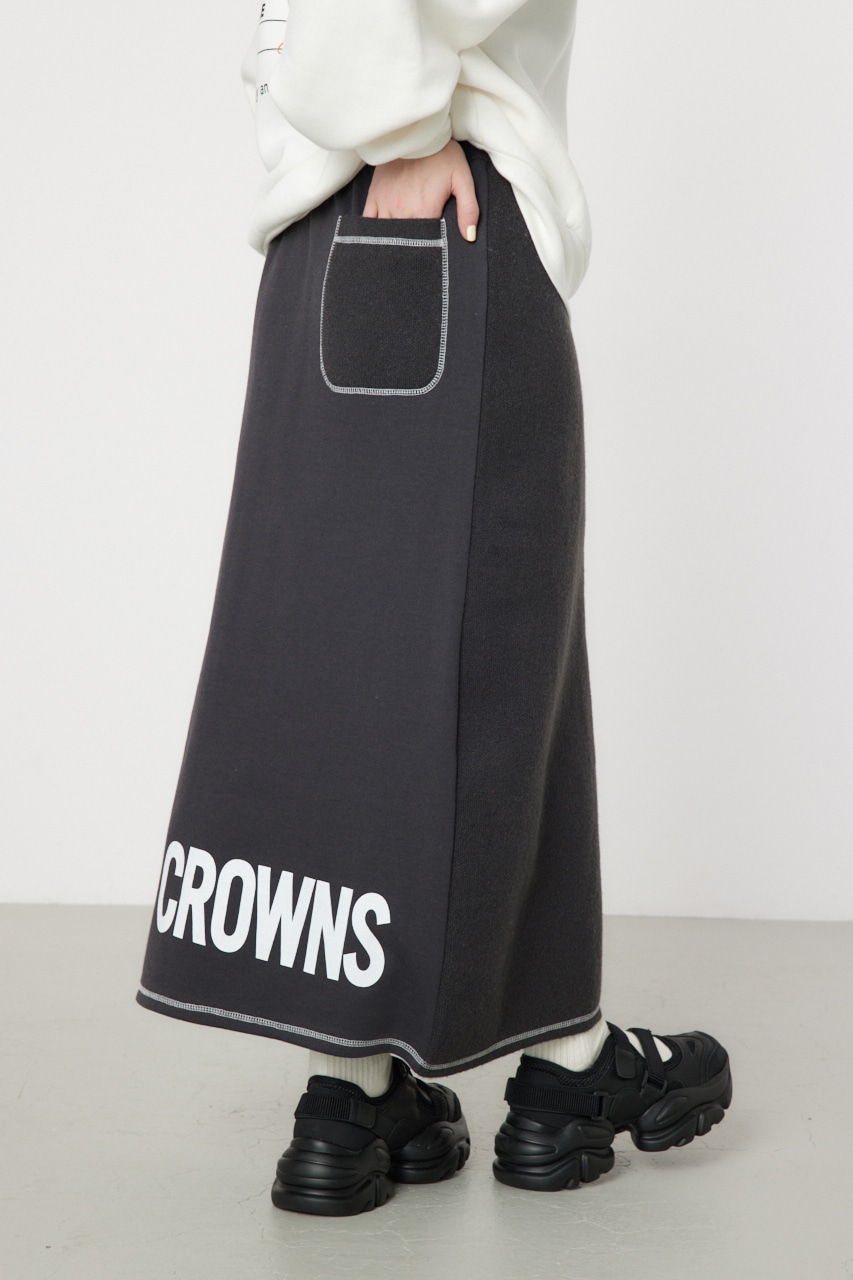 ニットとスウェットを合わせて作ったコンビスカート。オリジナルのAラインスカートで、着心地が良くリラックス感のあるアイテム。配色のロゴと可愛いステッチ使いがポイント。