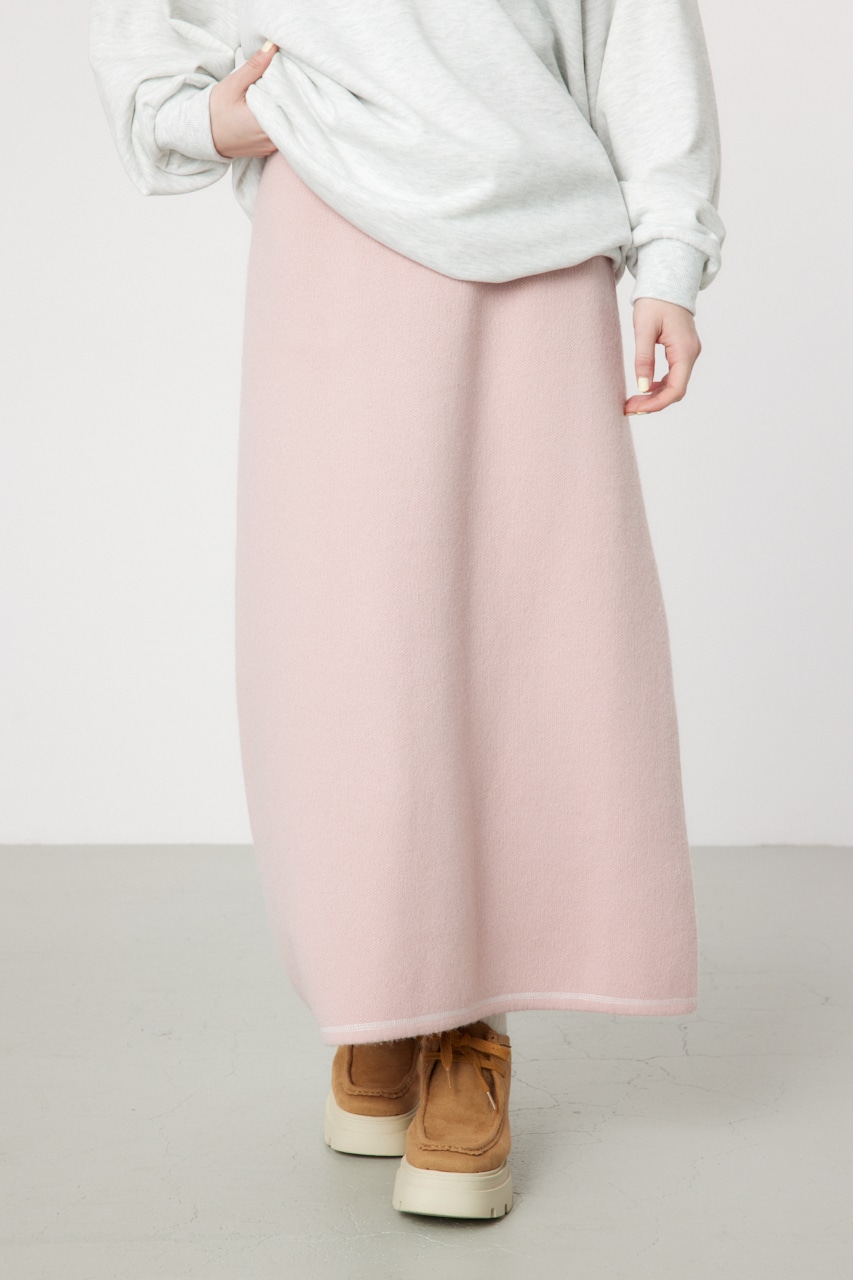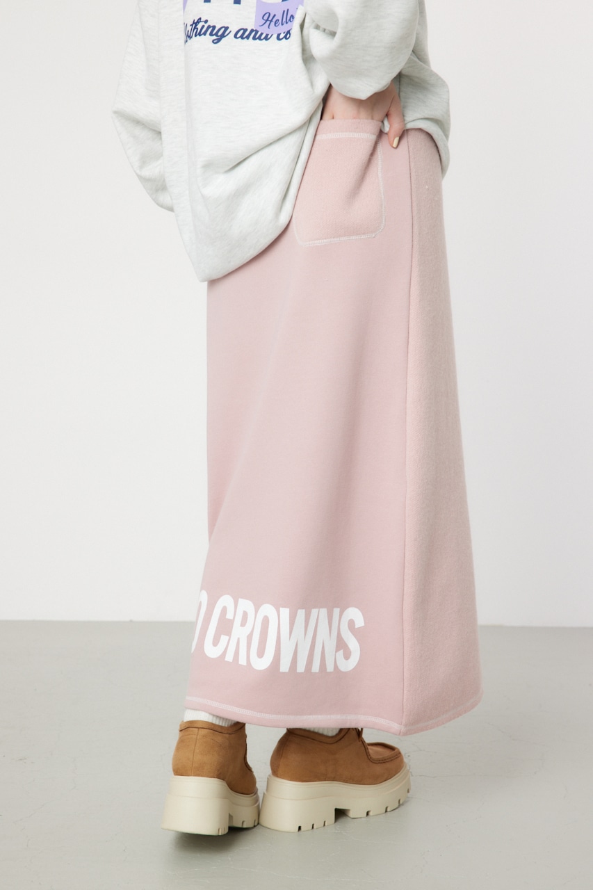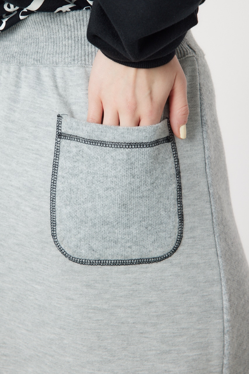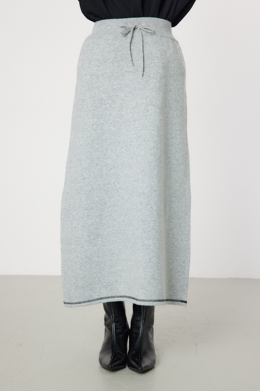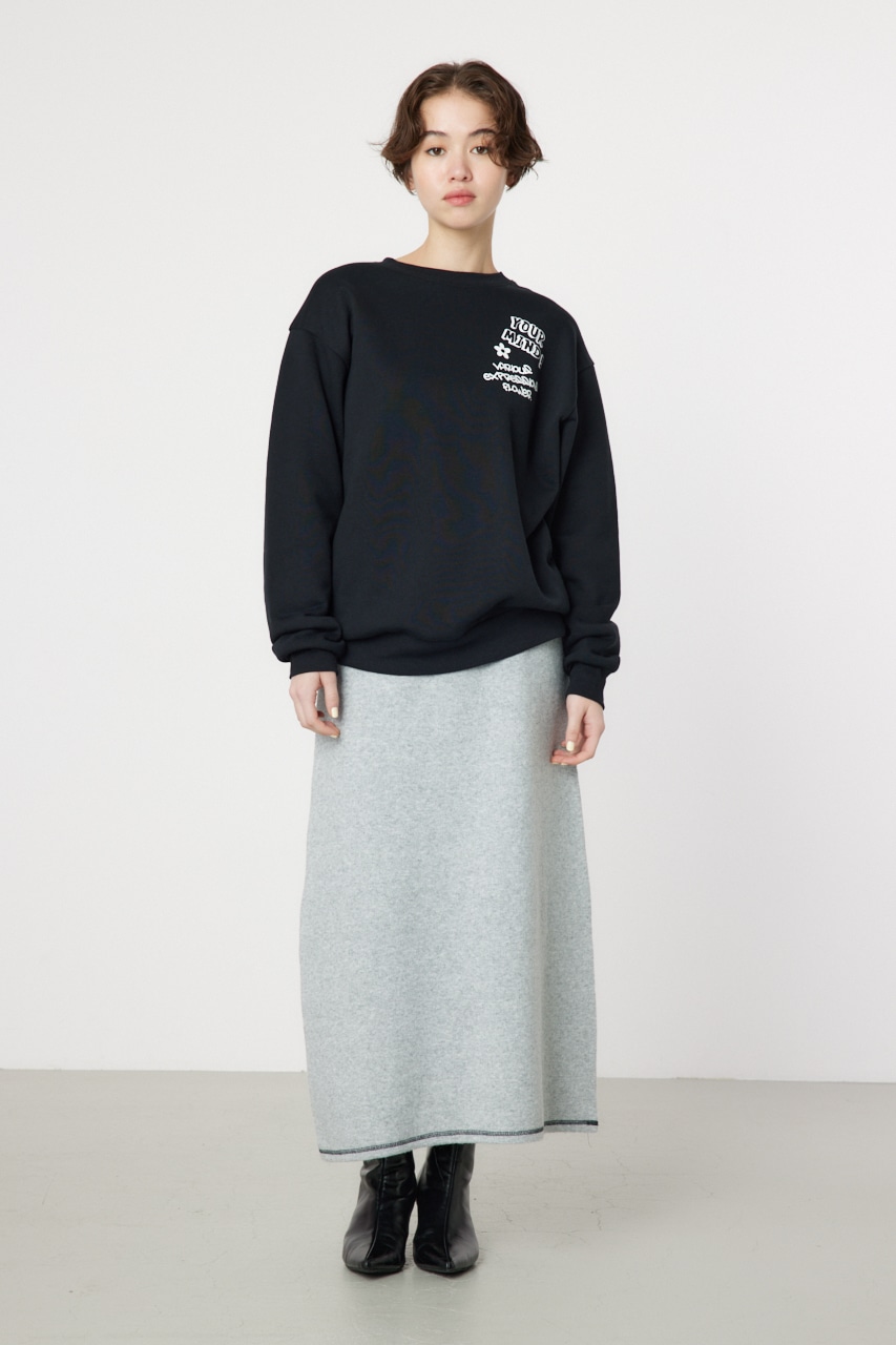 ニットとスウェットを合わせて作ったコンビスカート。オリジナルのAラインスカートで、着心地が良くリラックス感のあるアイテム。配色のロゴと可愛いステッチ使いがポイント。