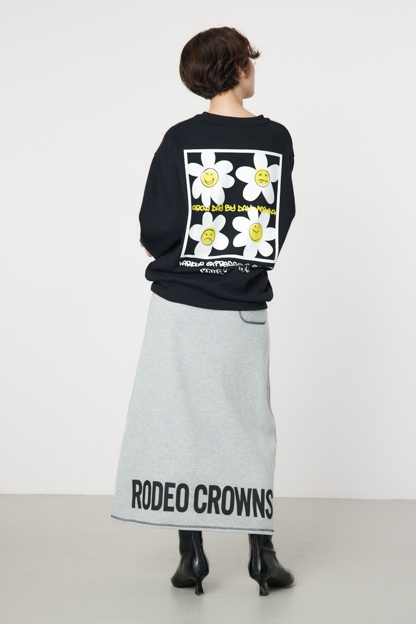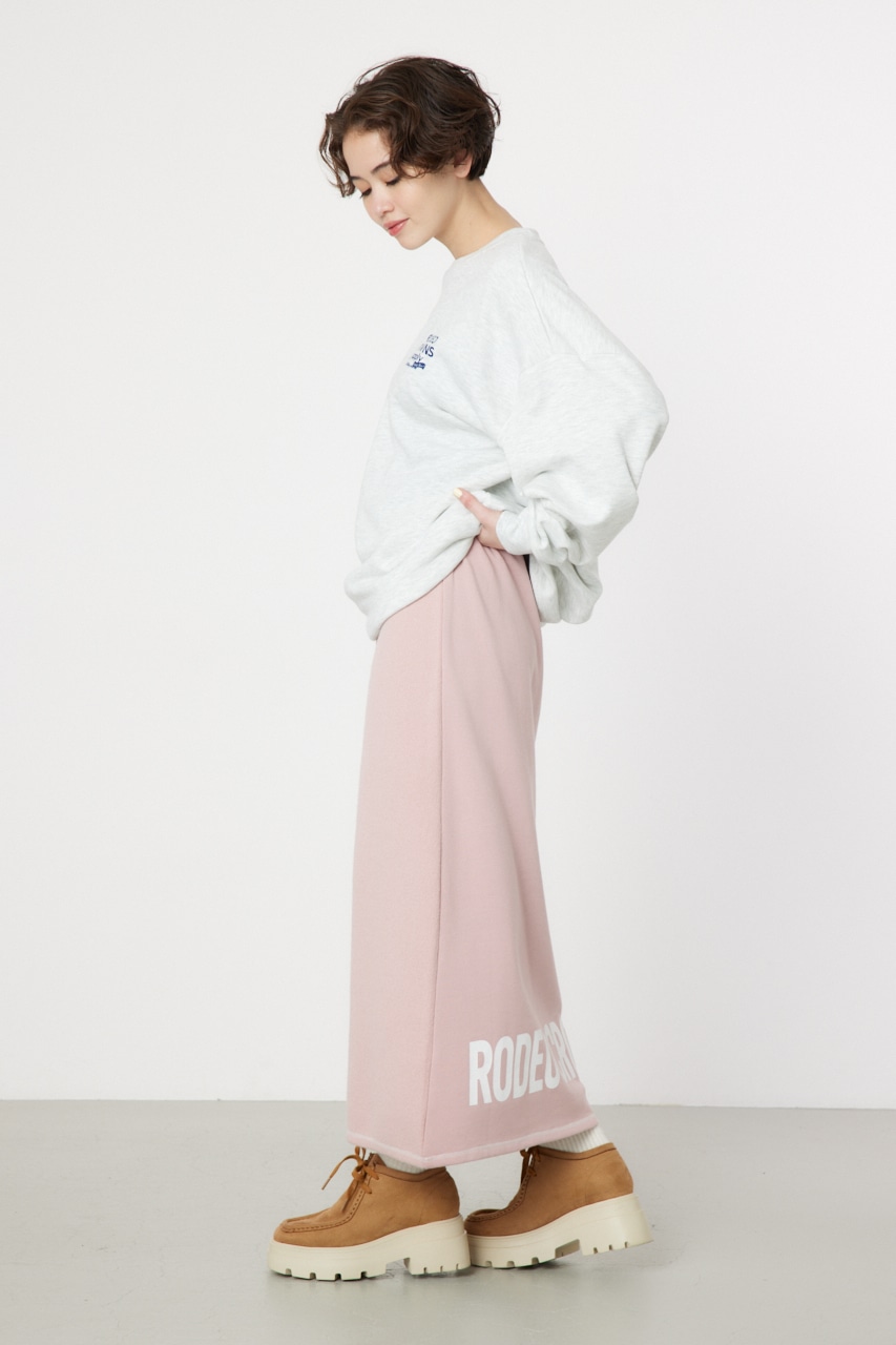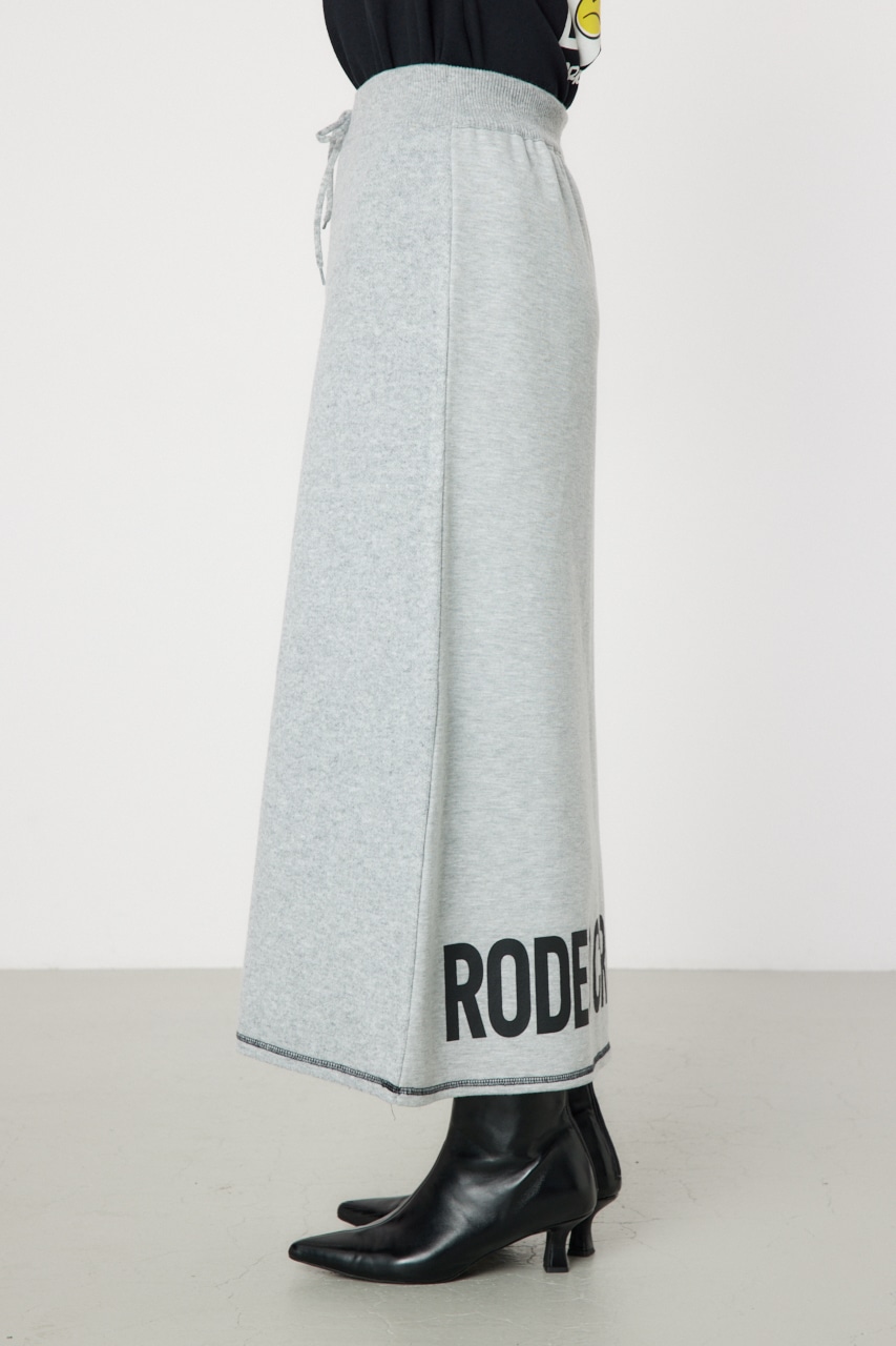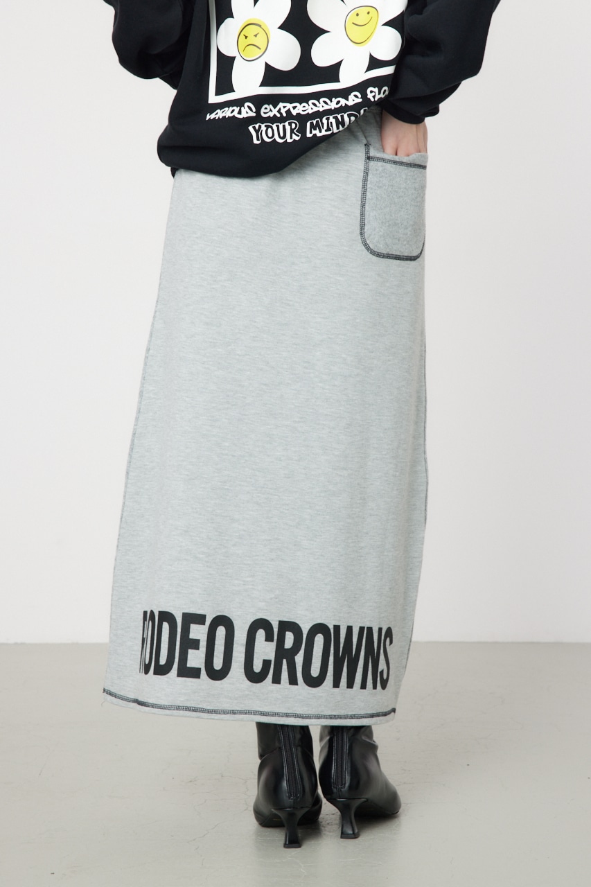 ニットとスウェットを合わせて作ったコンビスカート。オリジナルのAラインスカートで、着心地が良くリラックス感のあるアイテム。配色のロゴと可愛いステッチ使いがポイント。