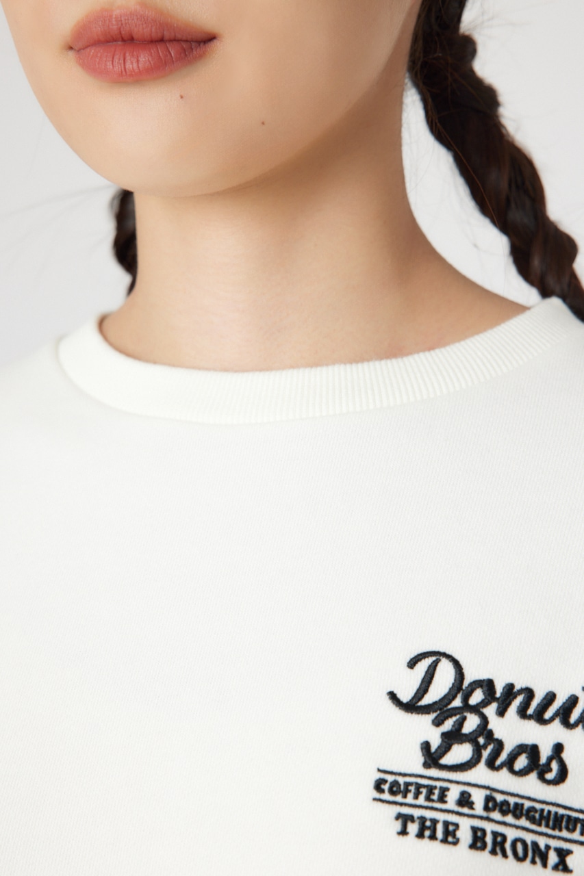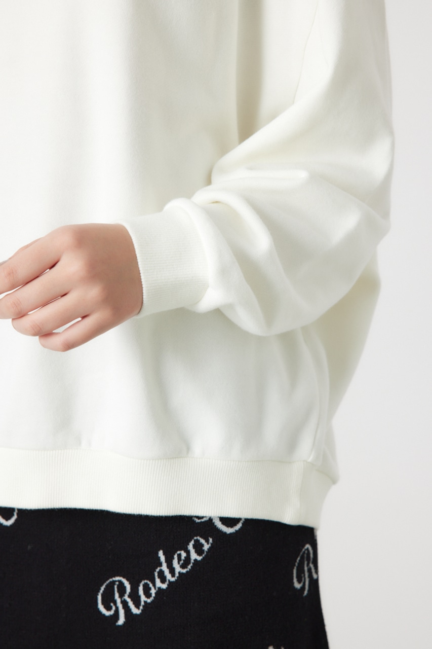 架空のドーナツショップをイメージしたキャラクターグラフィックがポップで可愛いスウェット。ルーズなサイズ感なので、シャツやタートルネックをレイヤードするのもおすすめです。
