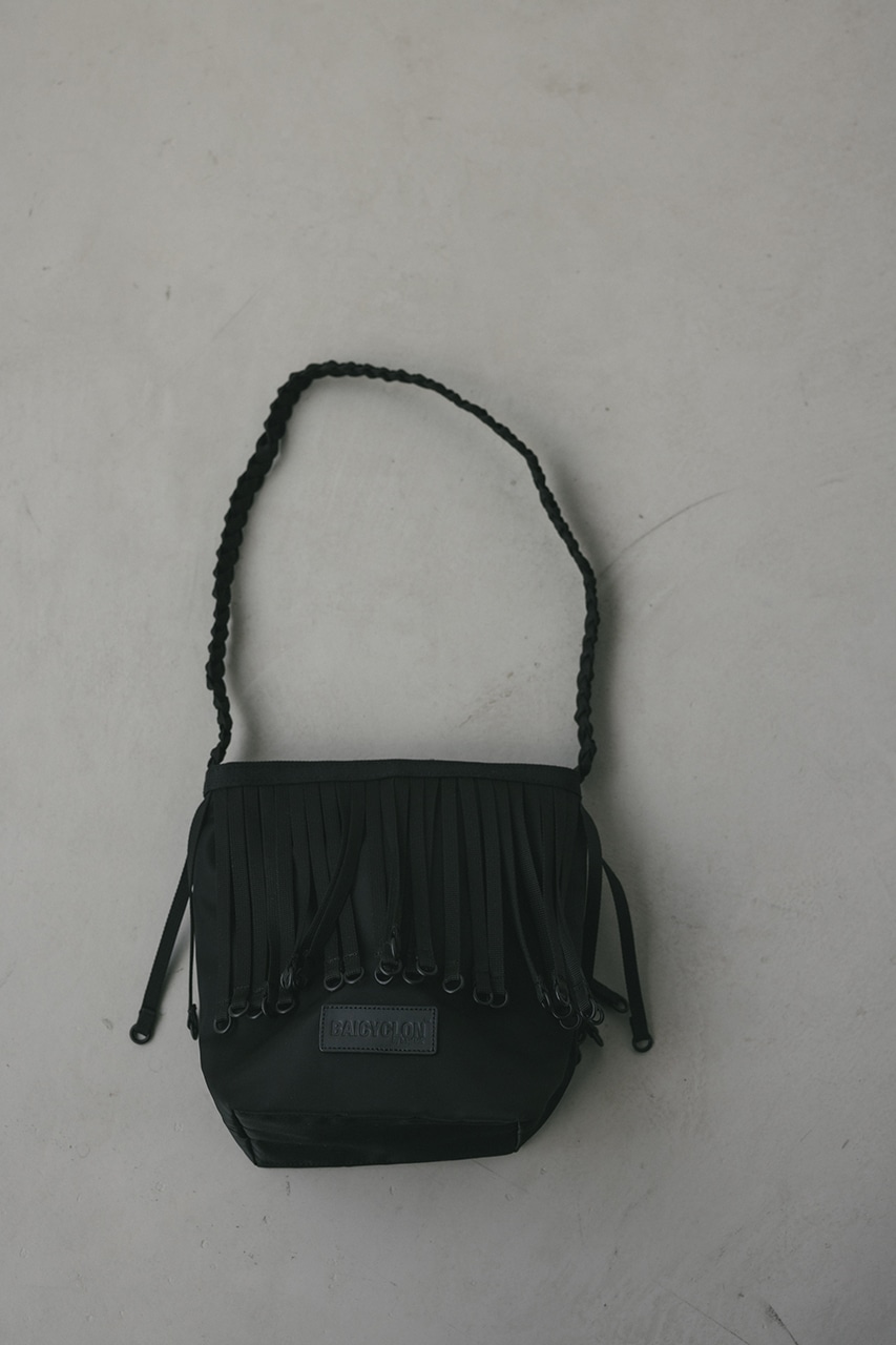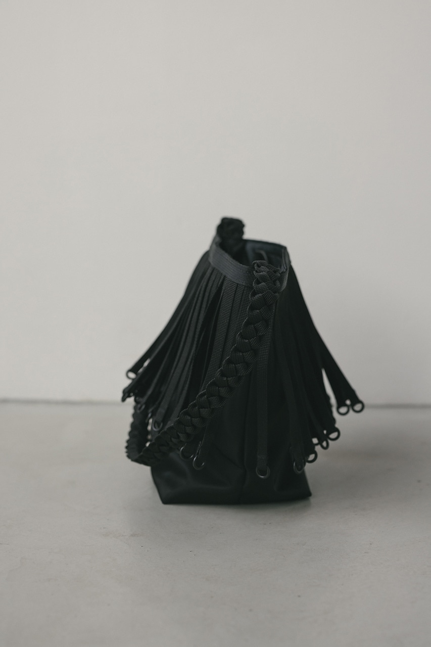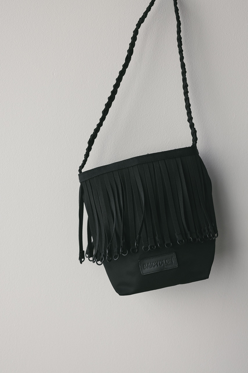 テープをフリンジに仕立てたシリーズのワンショルダー型バッグ。