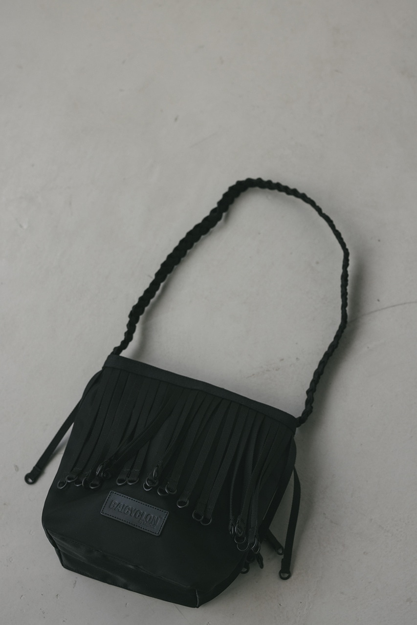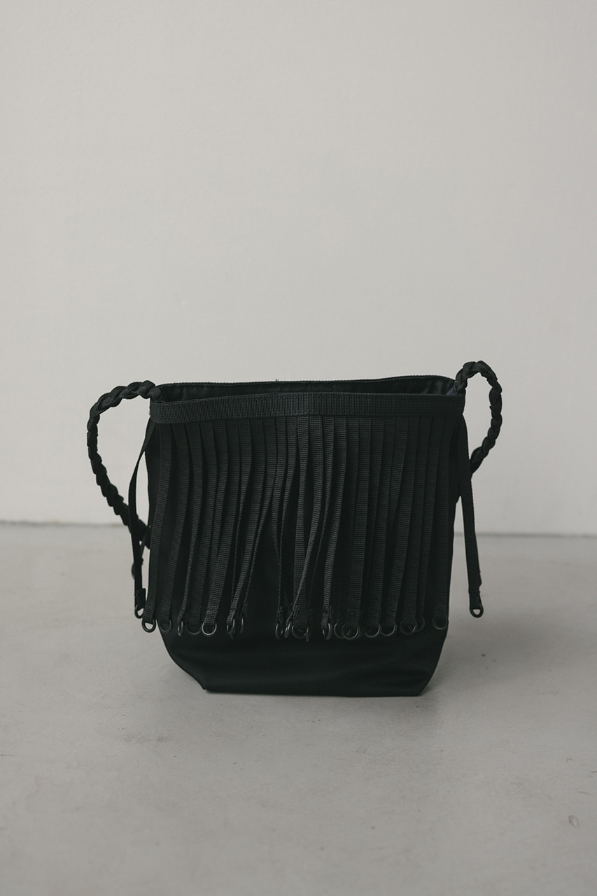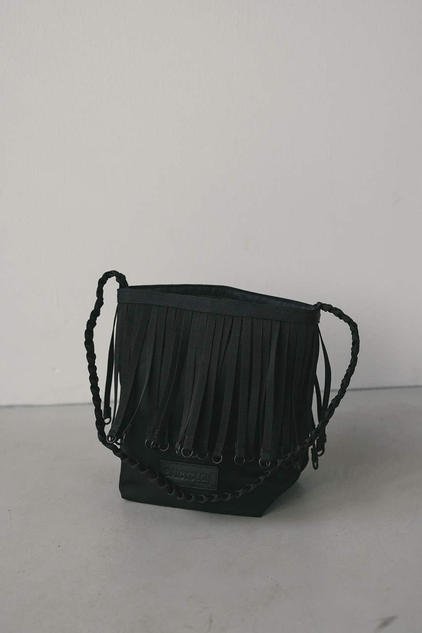 テープをフリンジに仕立てたシリーズのワンショルダー型バッグ。