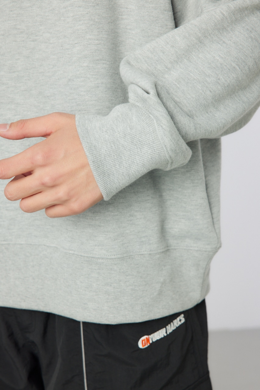 肉厚で手持ち感のあるコットンを混紡したヘビーウエイトな裏毛素材感。