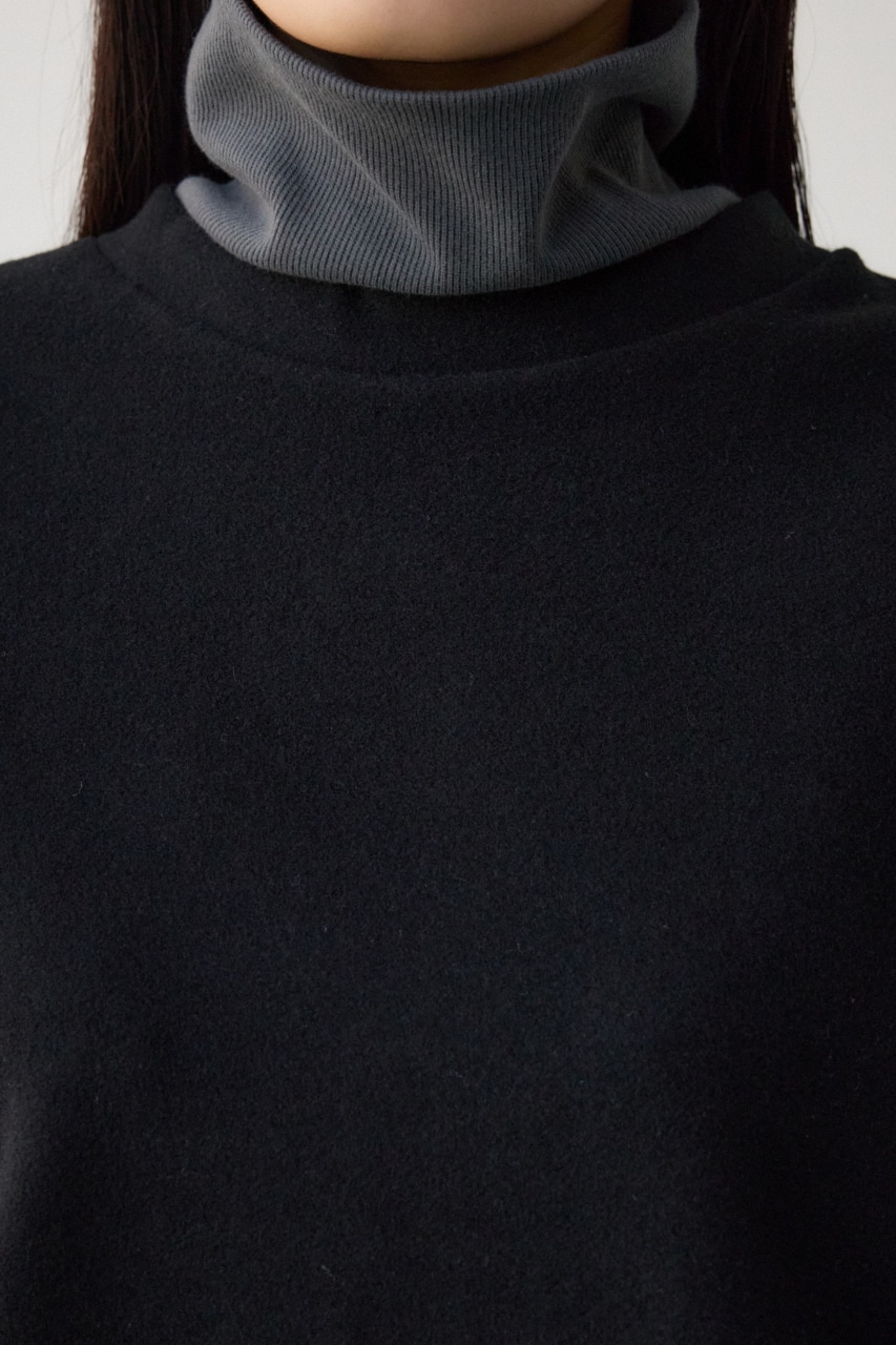 ウールライクな素材とリブ素材のタートルネックのドッキングしたトップス。