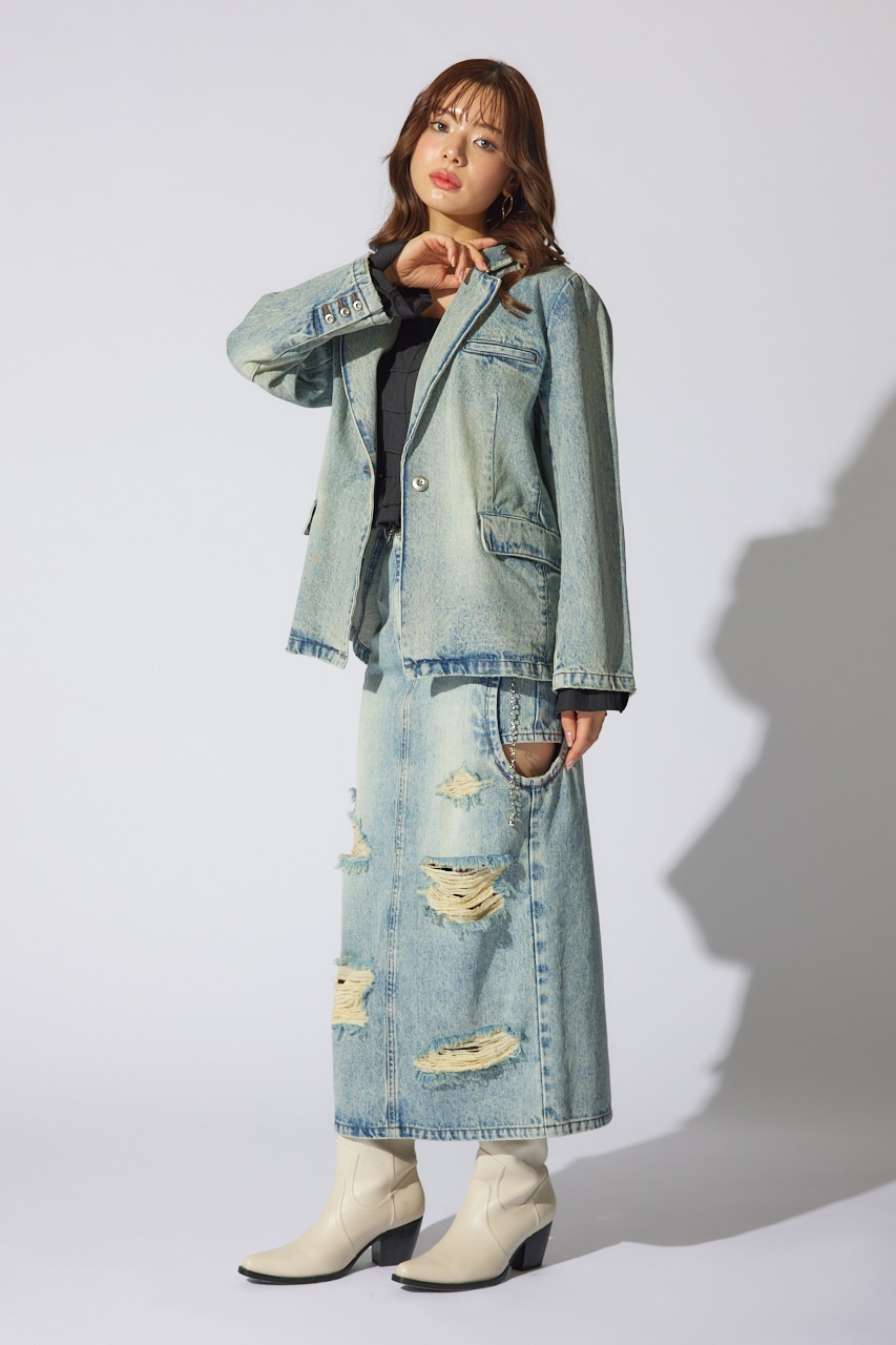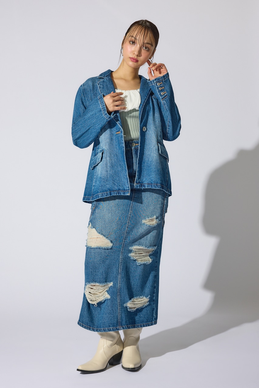 【着るだけで旬コーデが完成するデニムタイトスカート】