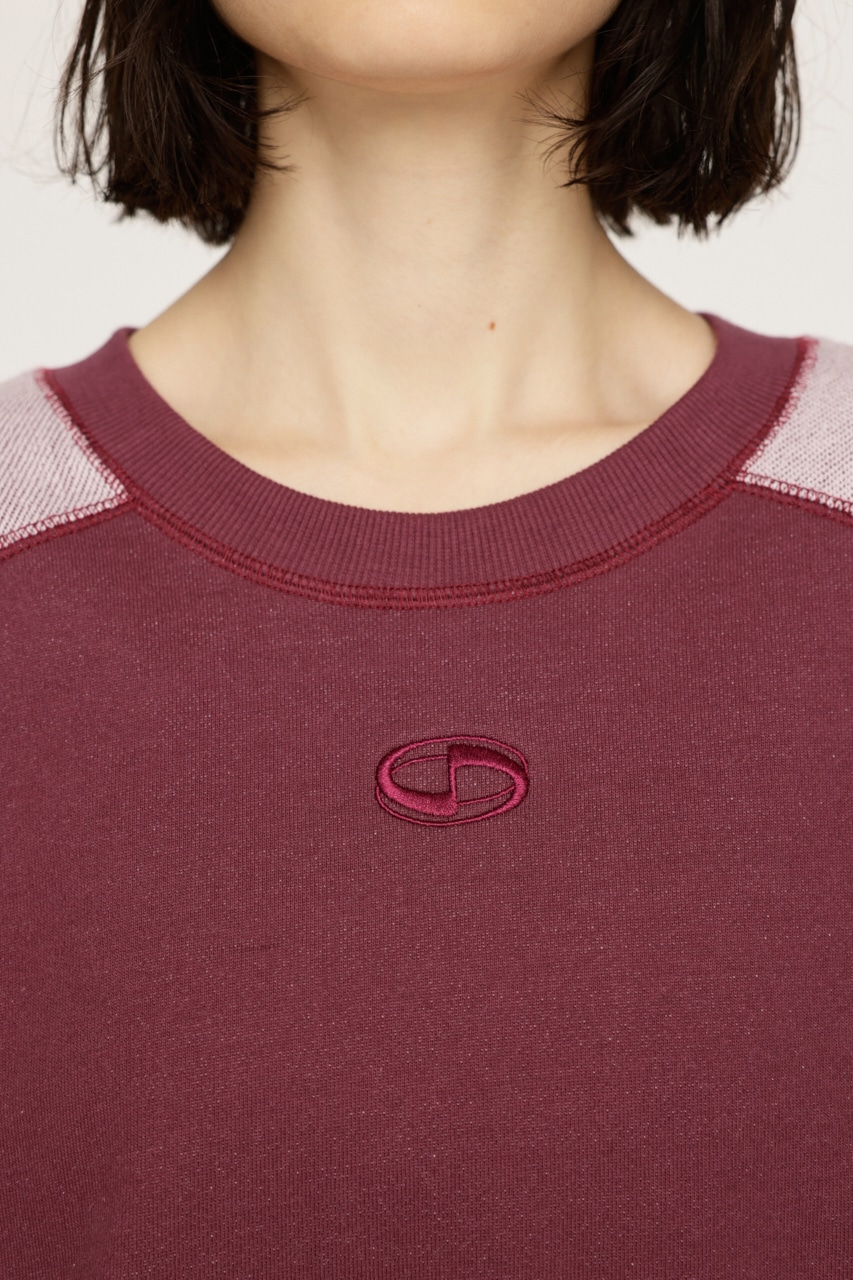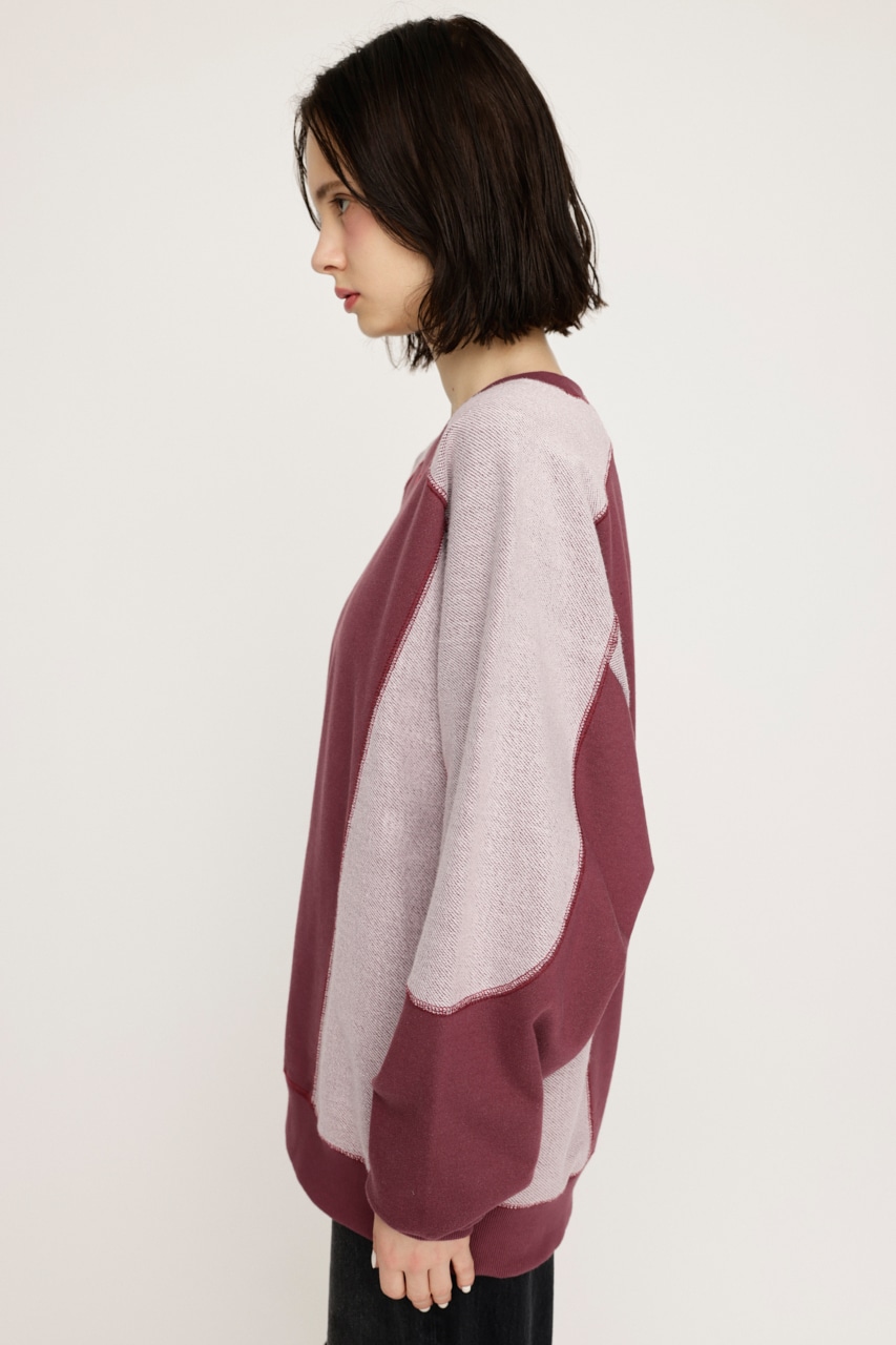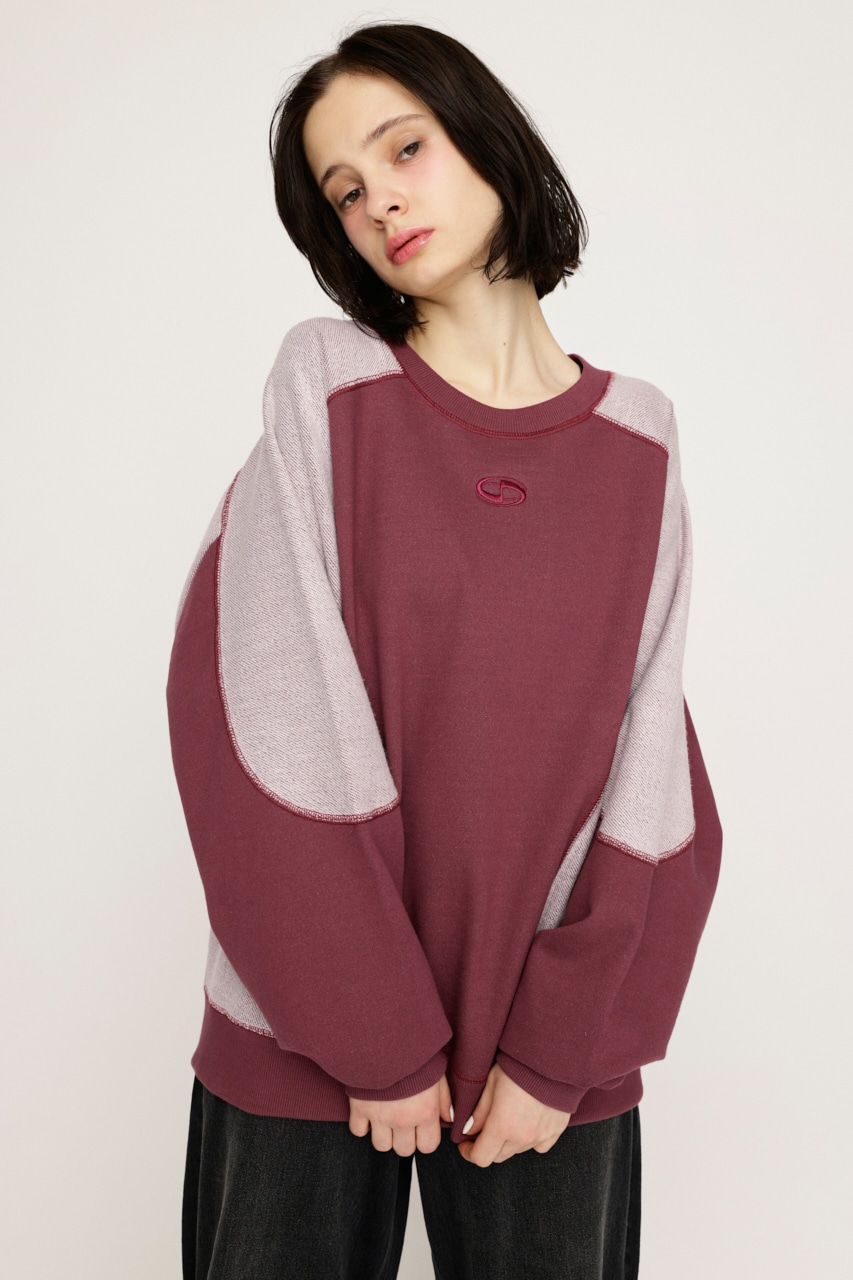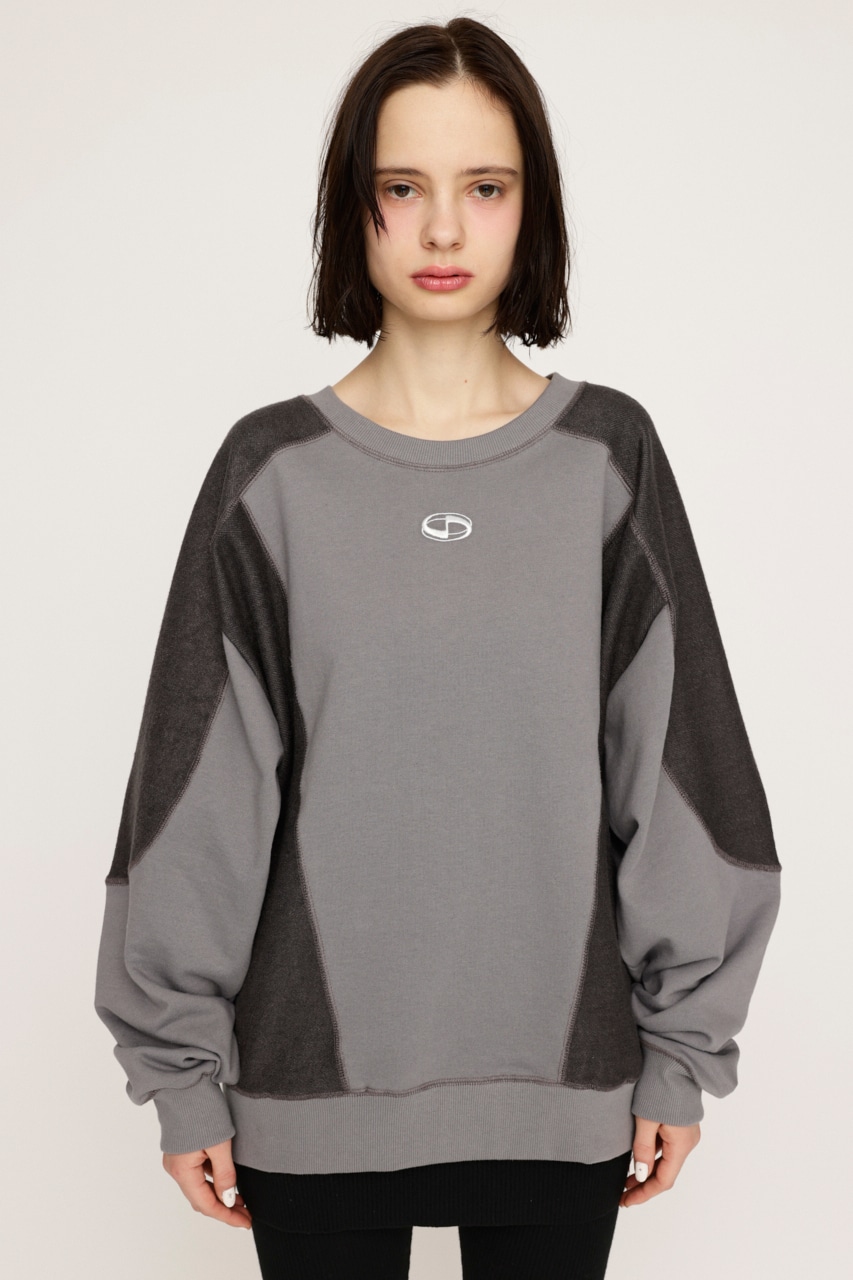 ■POINT:切り替え部分を裏使いにしているので、配色と表面感の差がポイントのスウェットトップス。切り替え部分をロック見せにしていて、カジュアルな印象に。