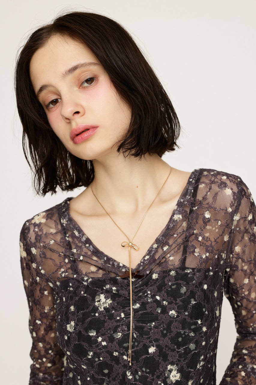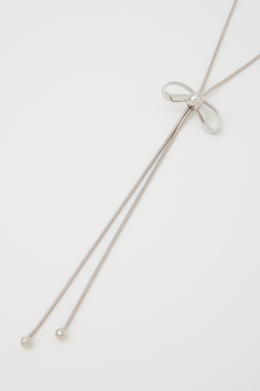 ■POINT:トレンドのリボンモチーフのスネークチェーンネックレス。デイリー使いしやすいシンプルなデザインです。