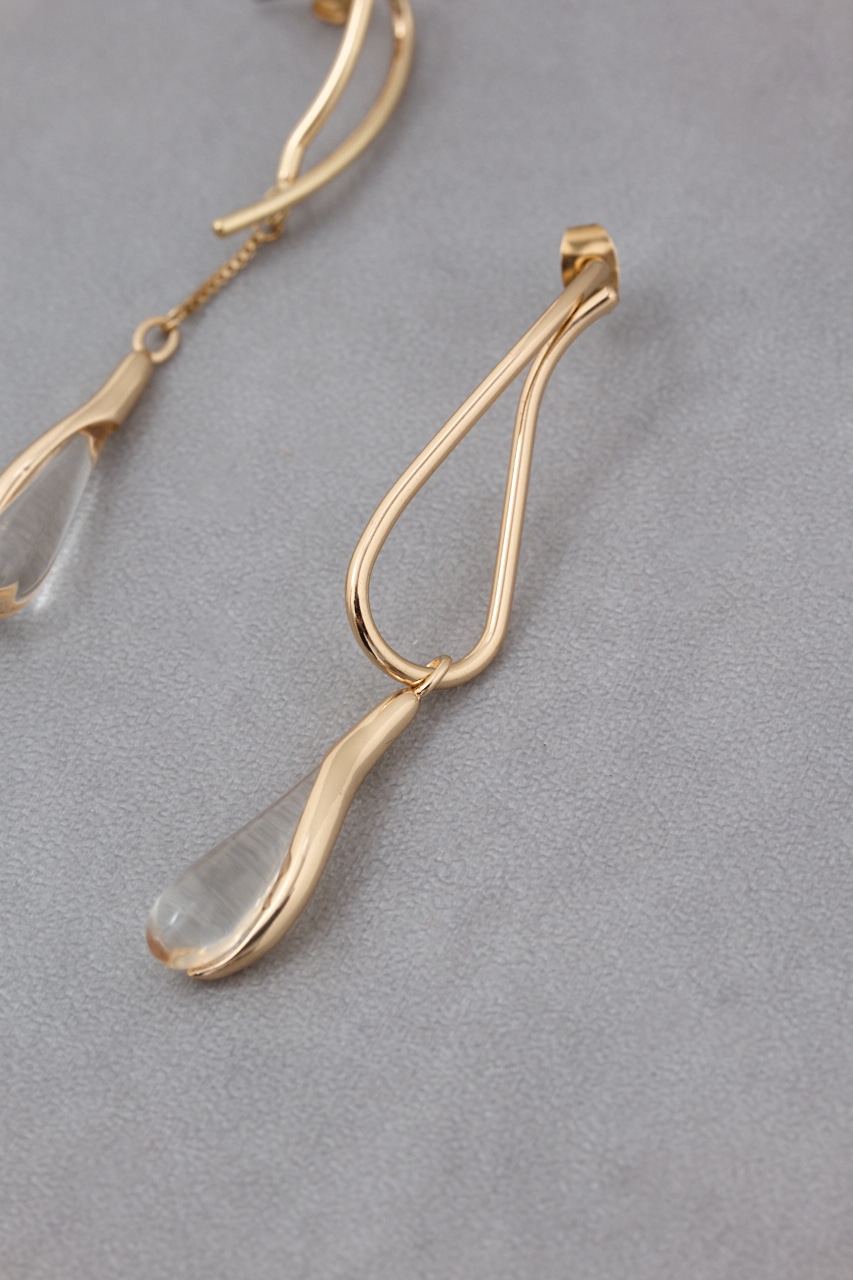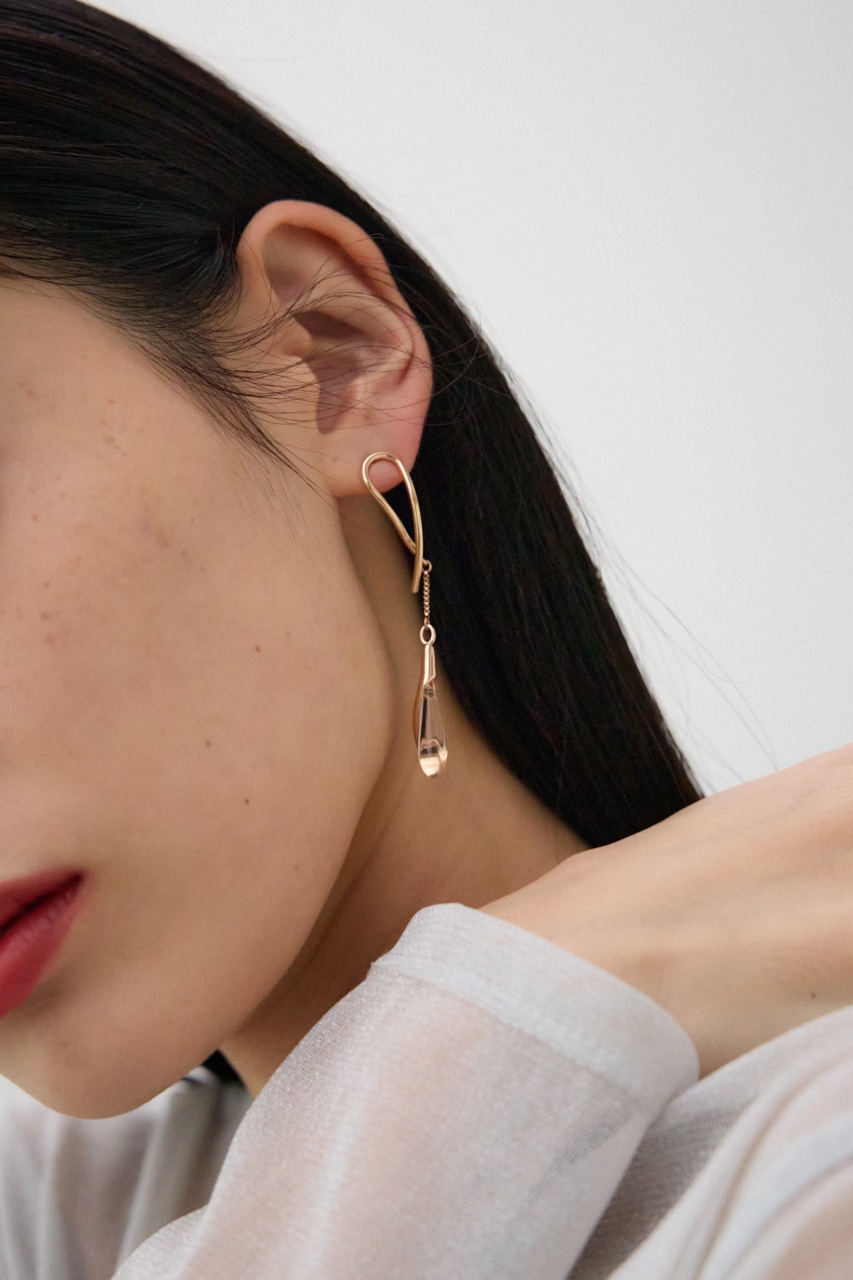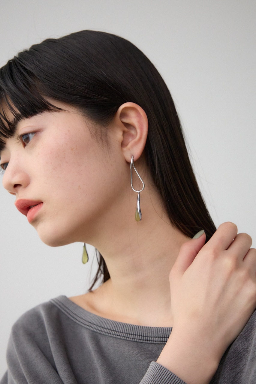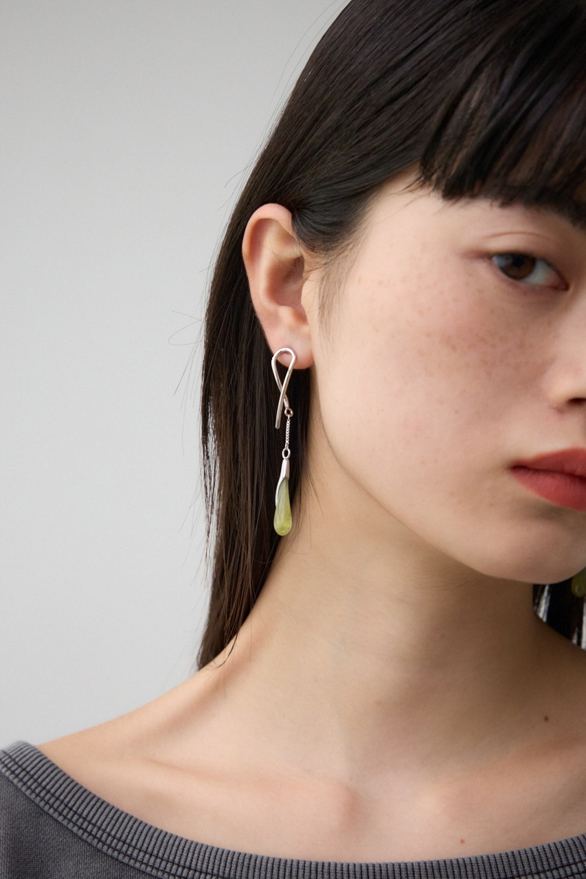 しなやかなアシンメトリーラインに艶のあるフレームと透け感のあるドロップモチーフのコンビネーションが目を惹くデザイン。