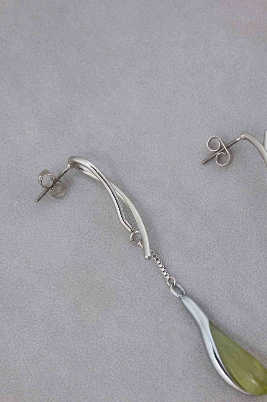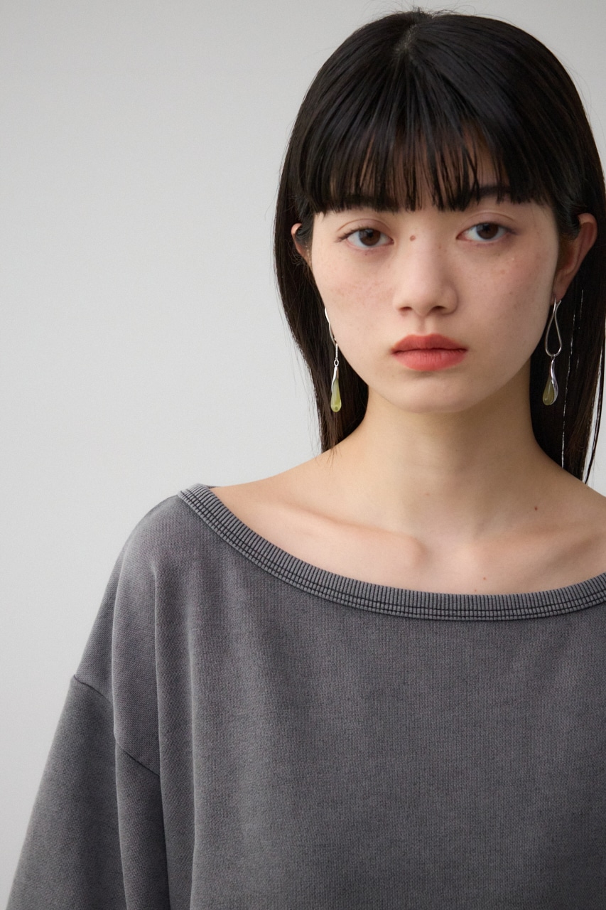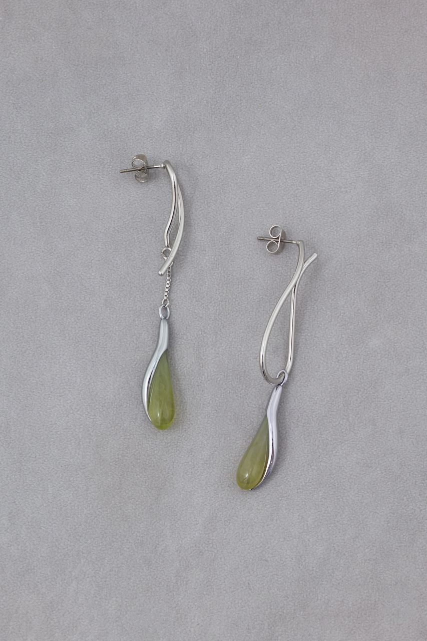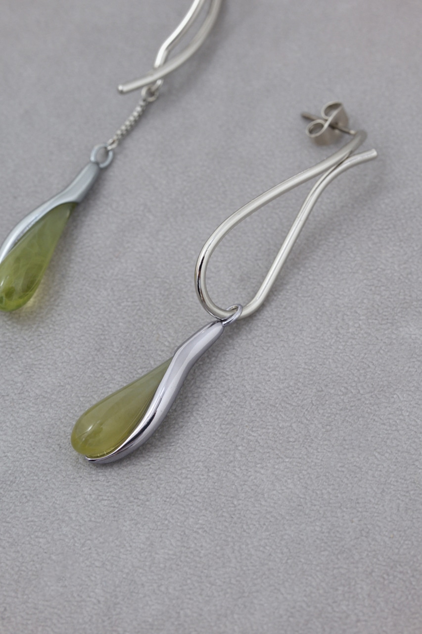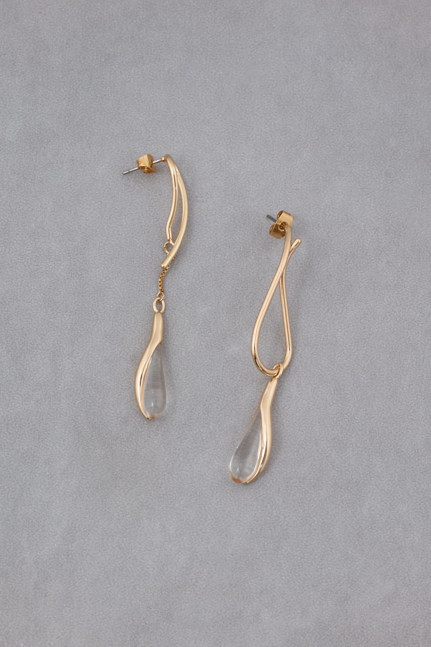 しなやかなアシンメトリーラインに艶のあるフレームと透け感のあるドロップモチーフのコンビネーションが目を惹くデザイン。