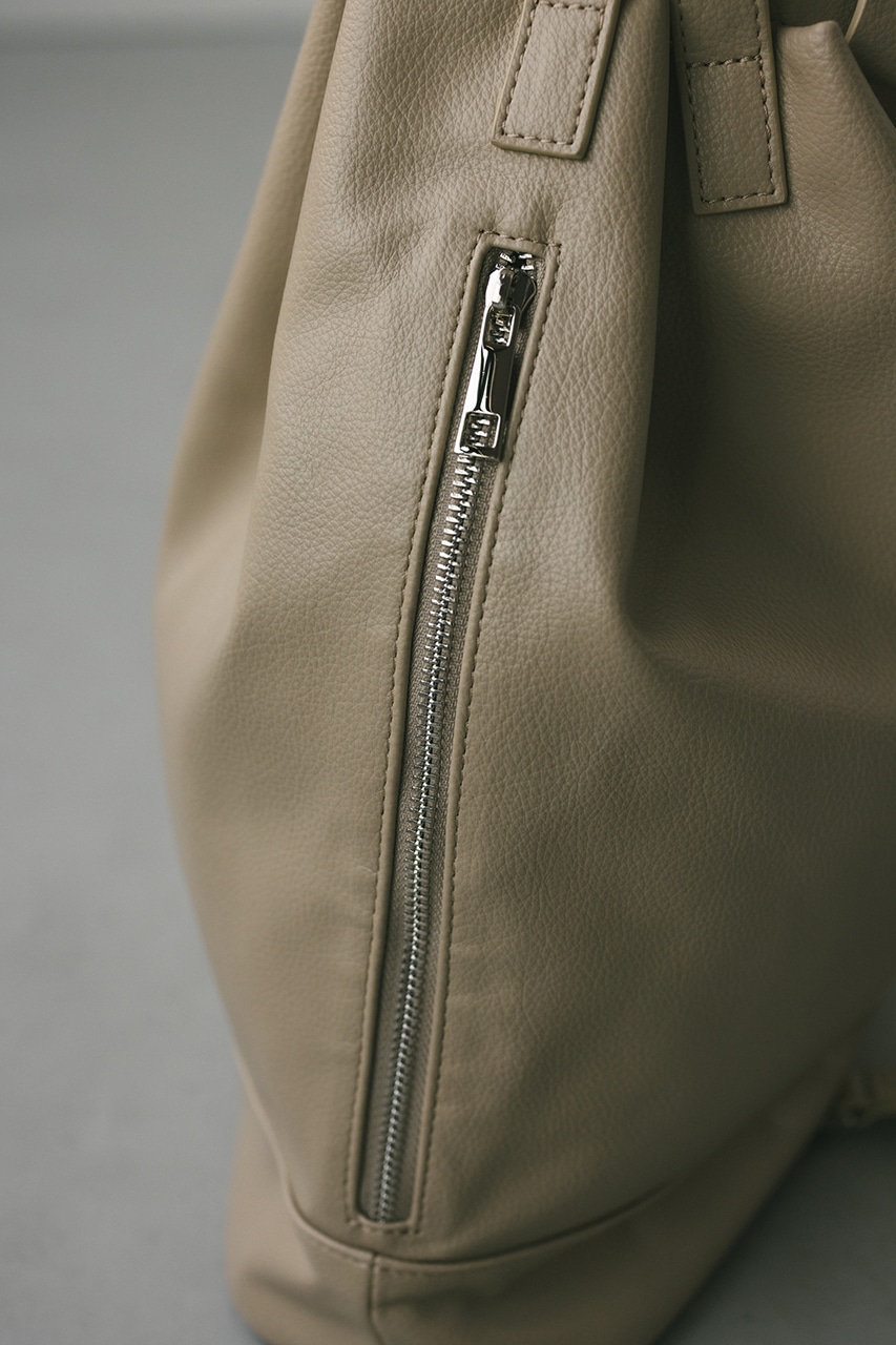 ワンハンドル仕様でラフ感がありながらも、マットなスムースレザーで大人っぽさもあるボンサック。
