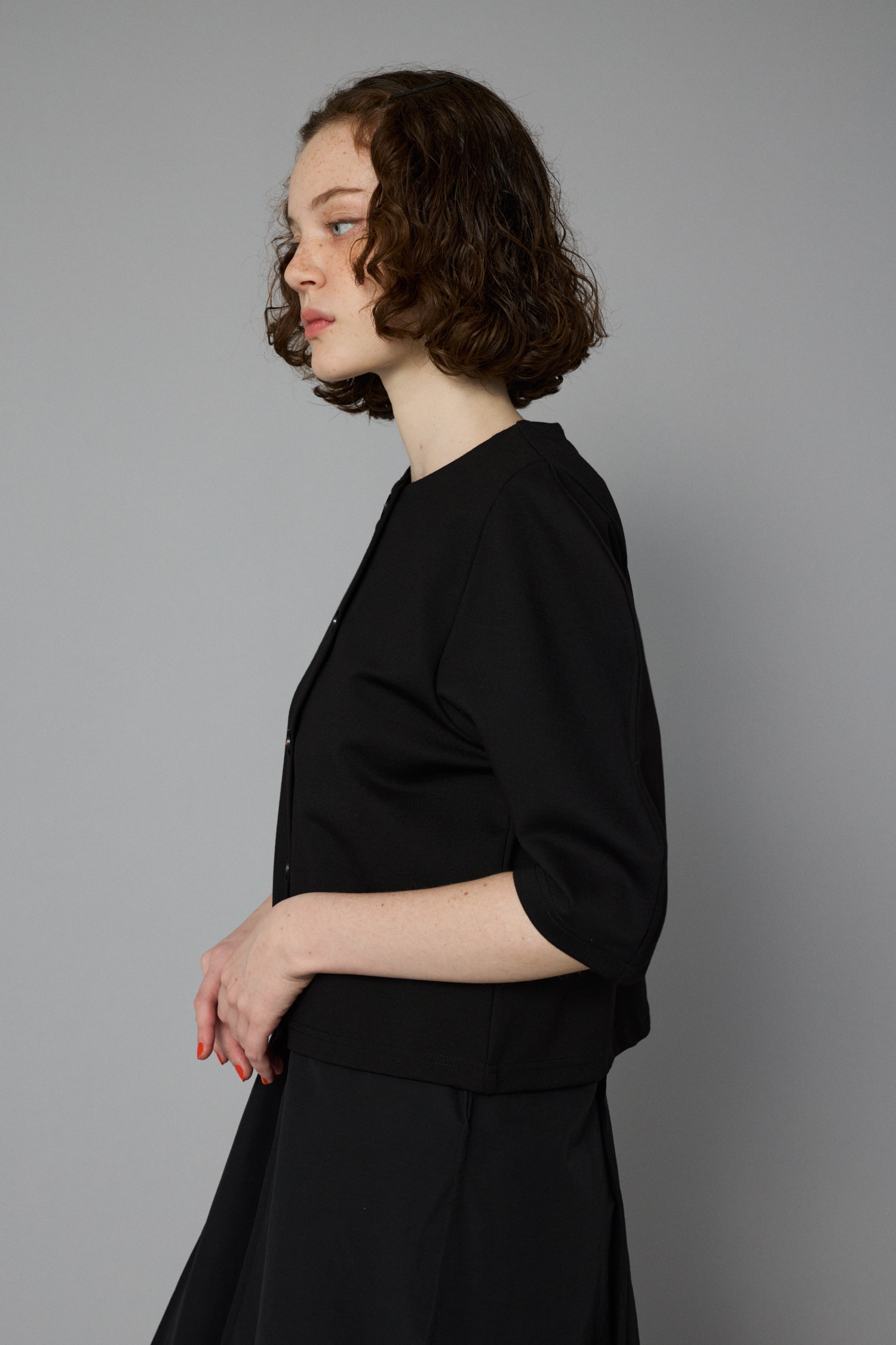 前を全て閉めてトップスとしても、着用できます。