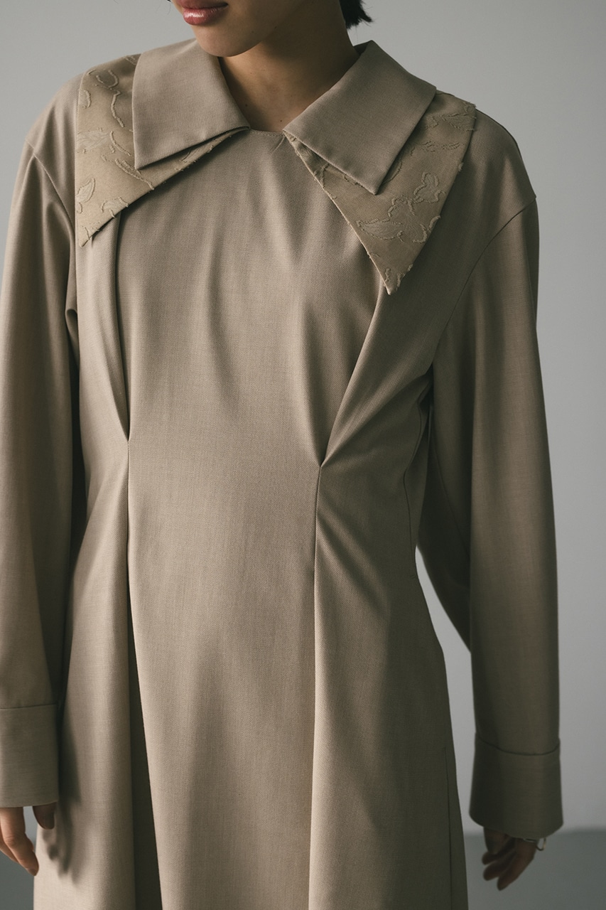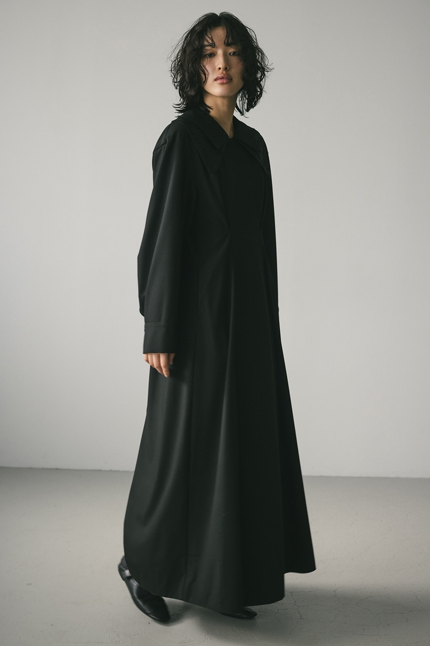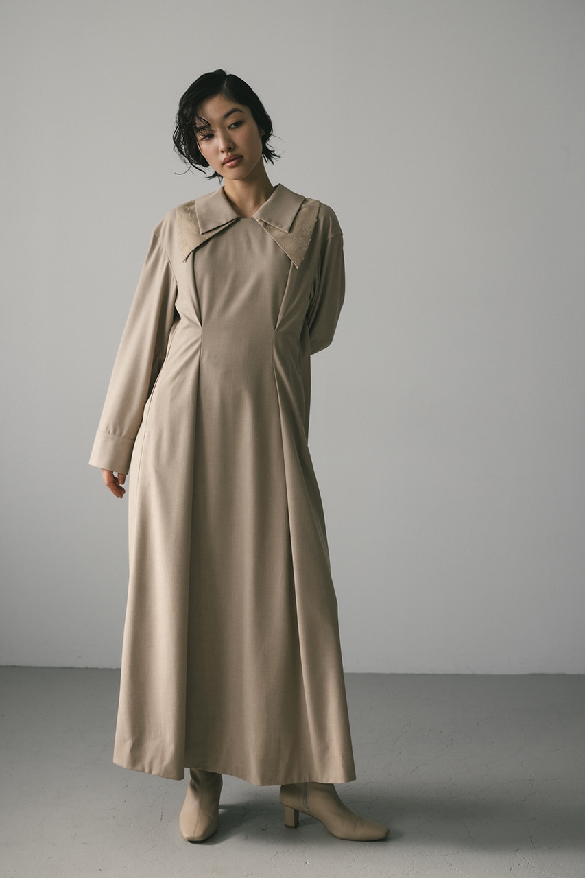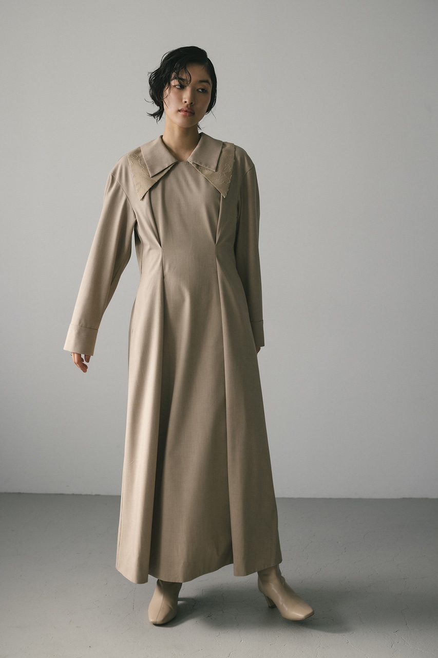 大振りのダブルカラーが可愛い美シルエットワンピース。