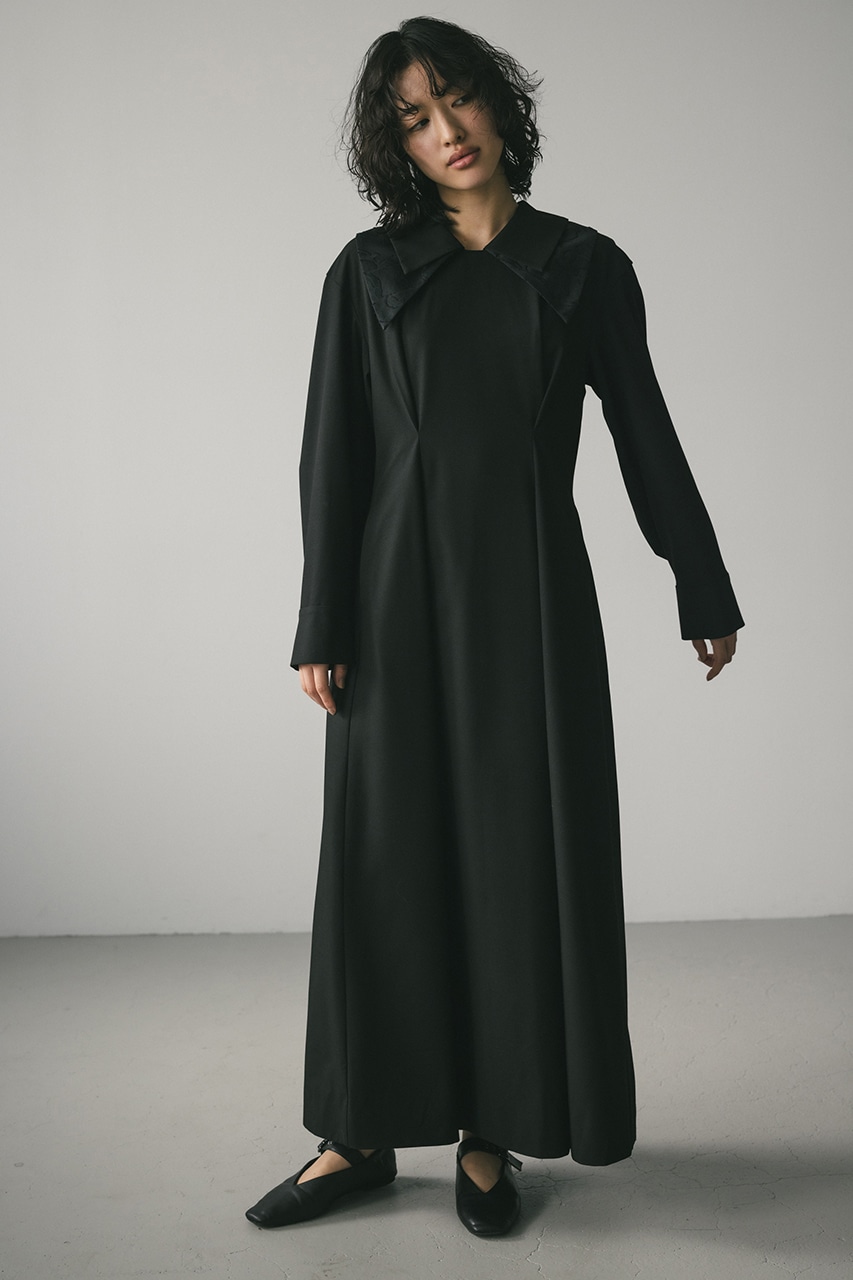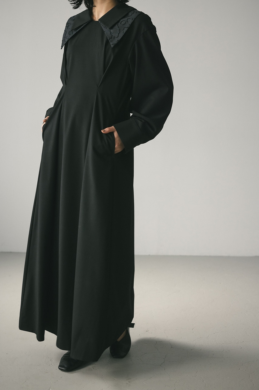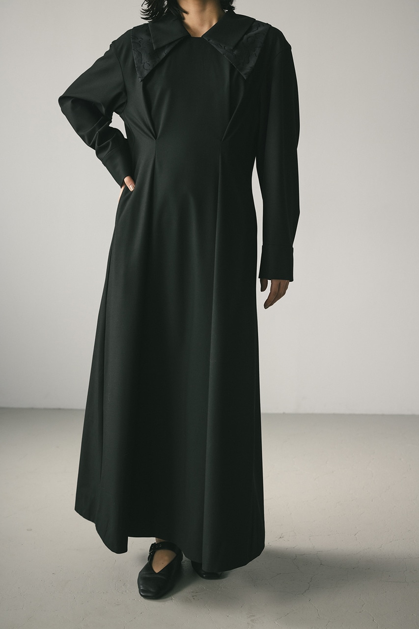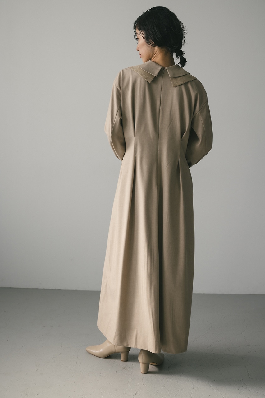 大振りのダブルカラーが可愛い美シルエットワンピース。