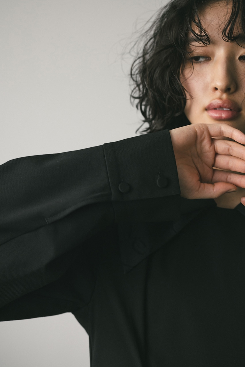 スクエアラインのネックとワイドスリーブがモードな印象に導きます。