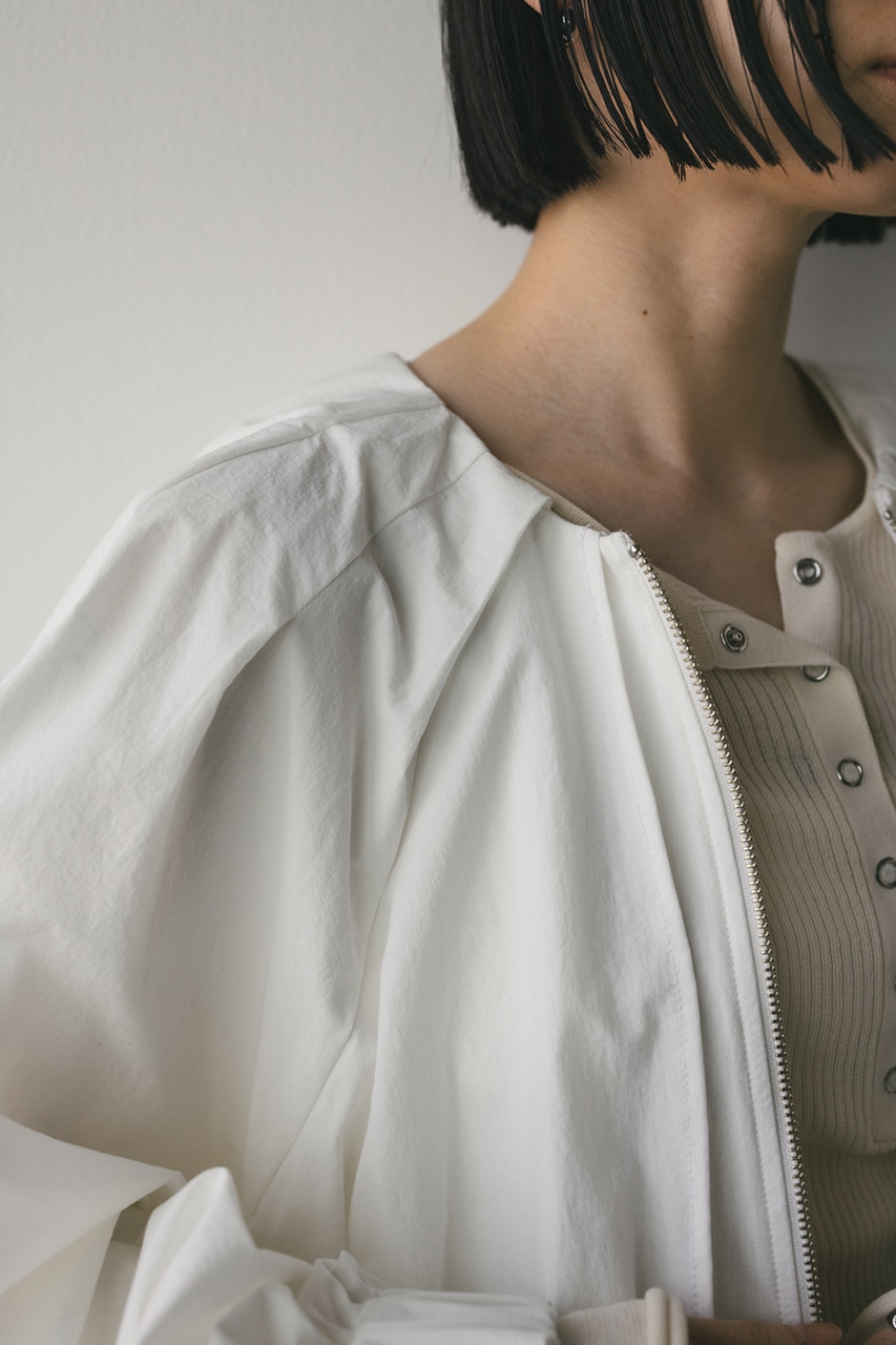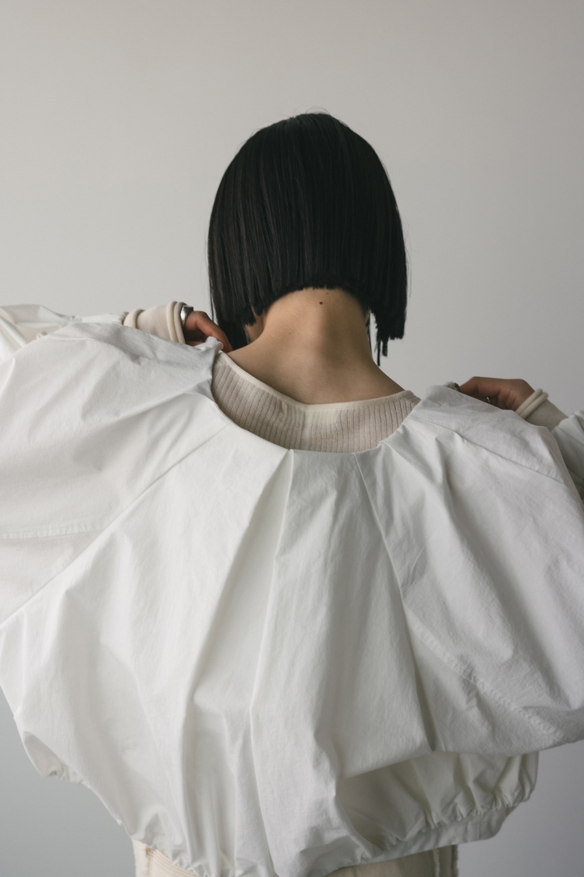 ショルダーとネックのタックで動きのあるモードなシルエットに仕上げた一枚です。