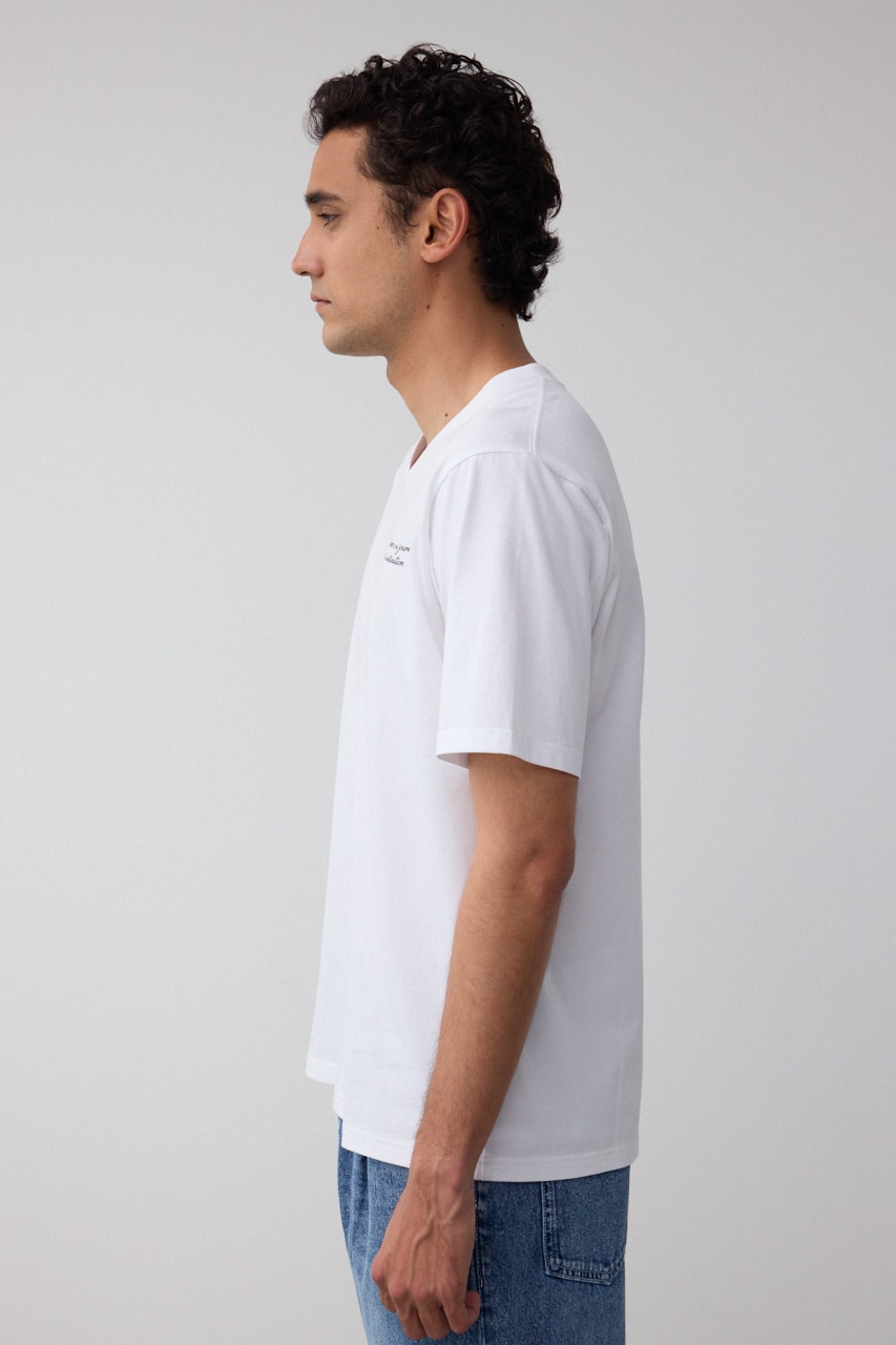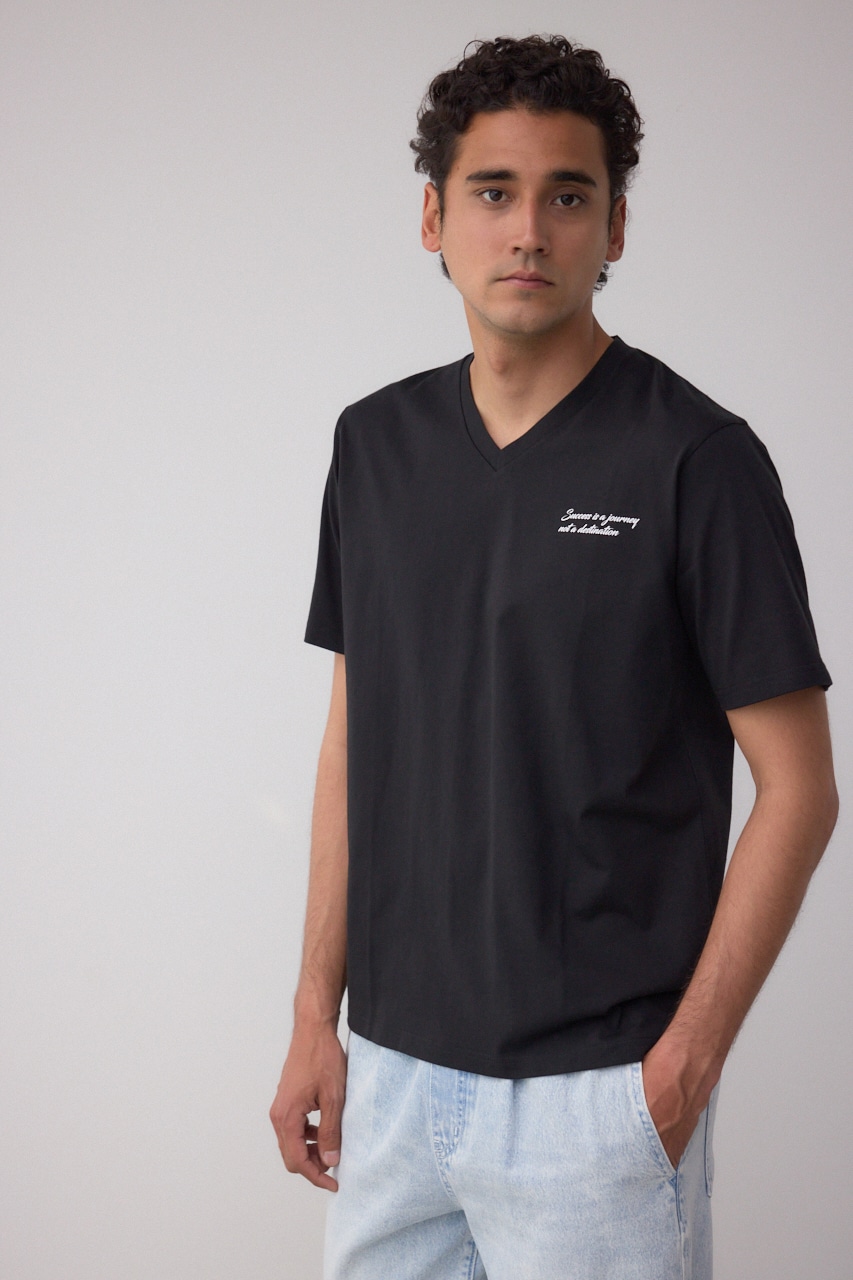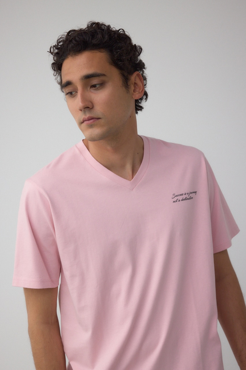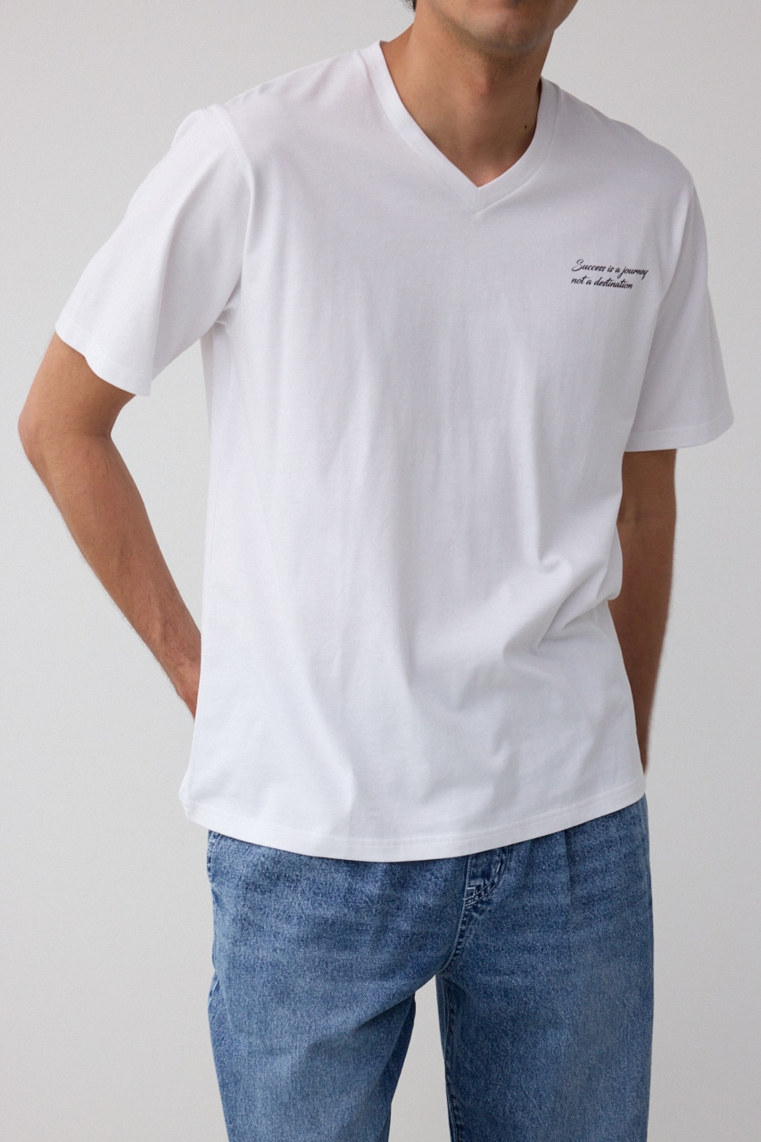 コットン100%のベーシックワンポイントVネックTシャツです。