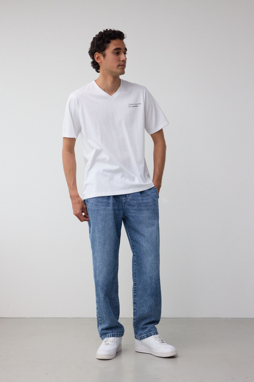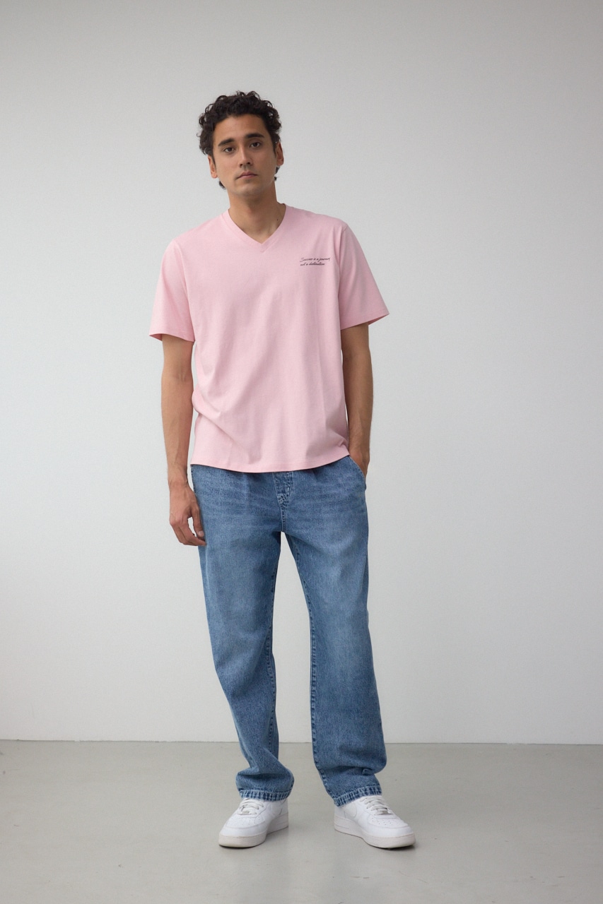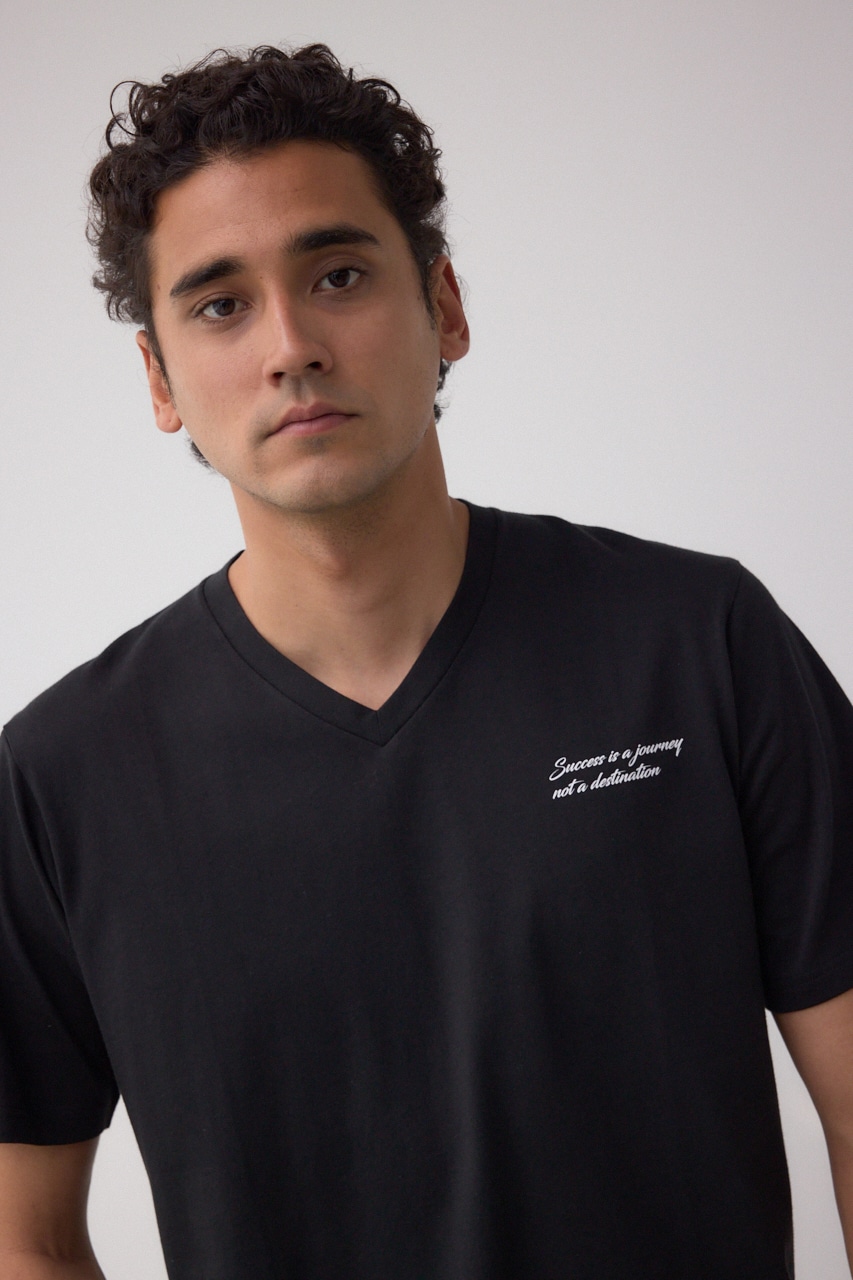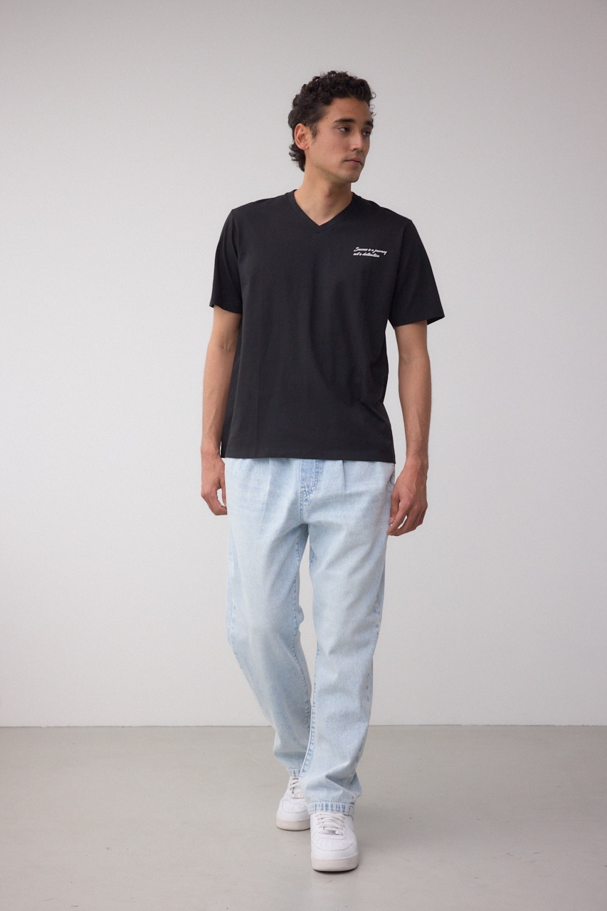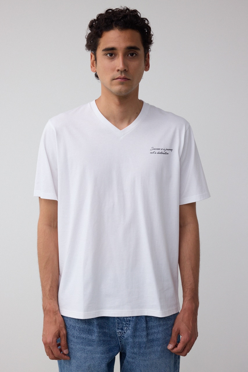 コットン100%のベーシックワンポイントVネックTシャツです。
