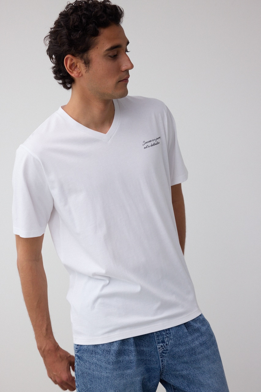 コットン100%のベーシックワンポイントVネックTシャツです。