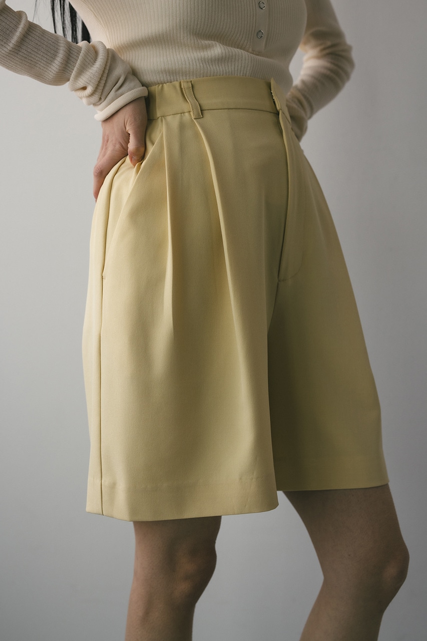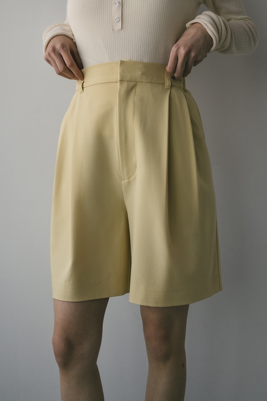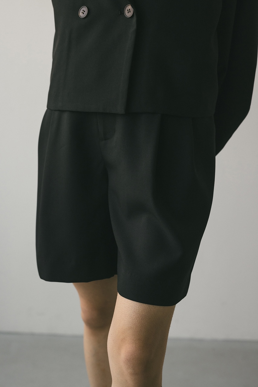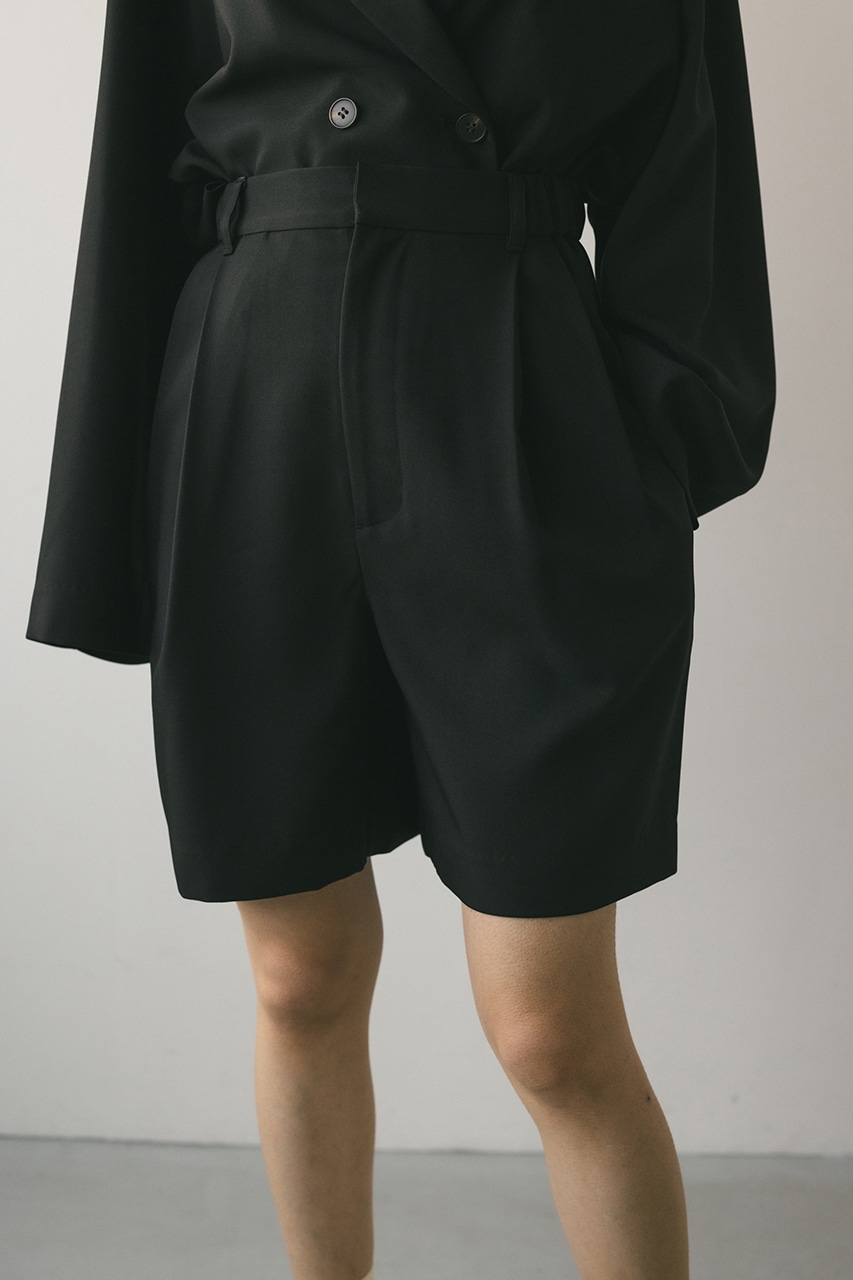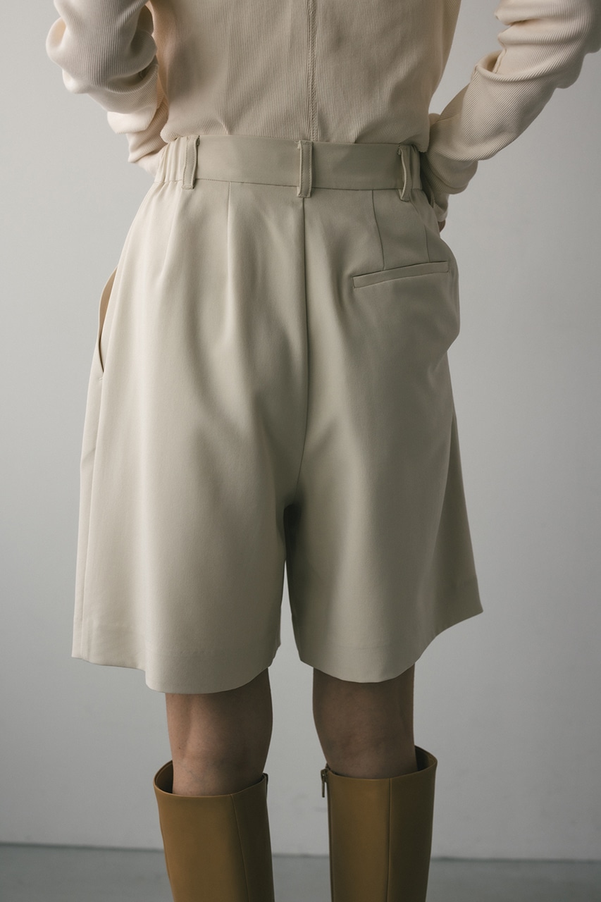 脇のパネルを後ろにたおしたことでサイドから見た時のシルエットに丸みを持たせたショートパンツ。