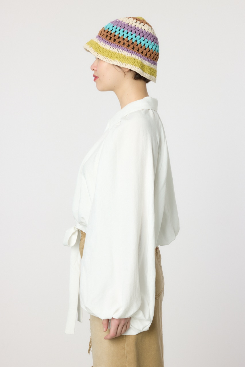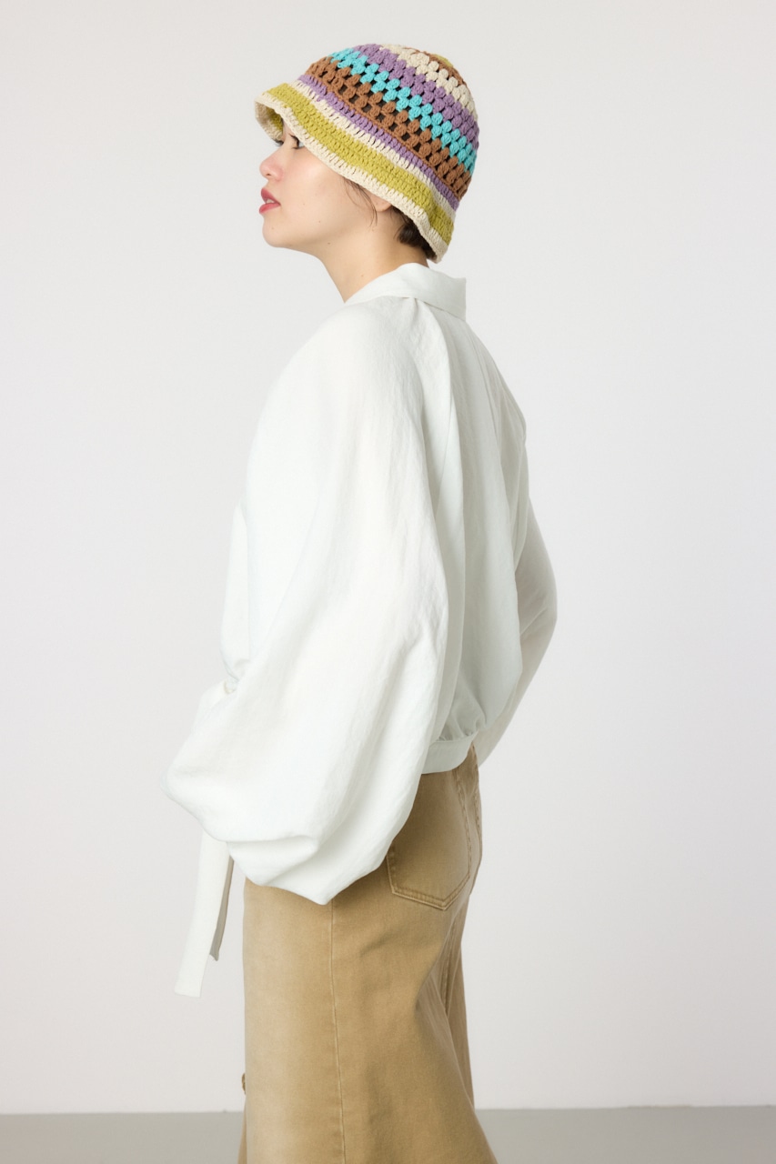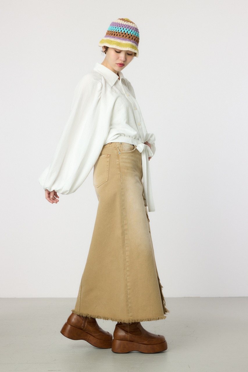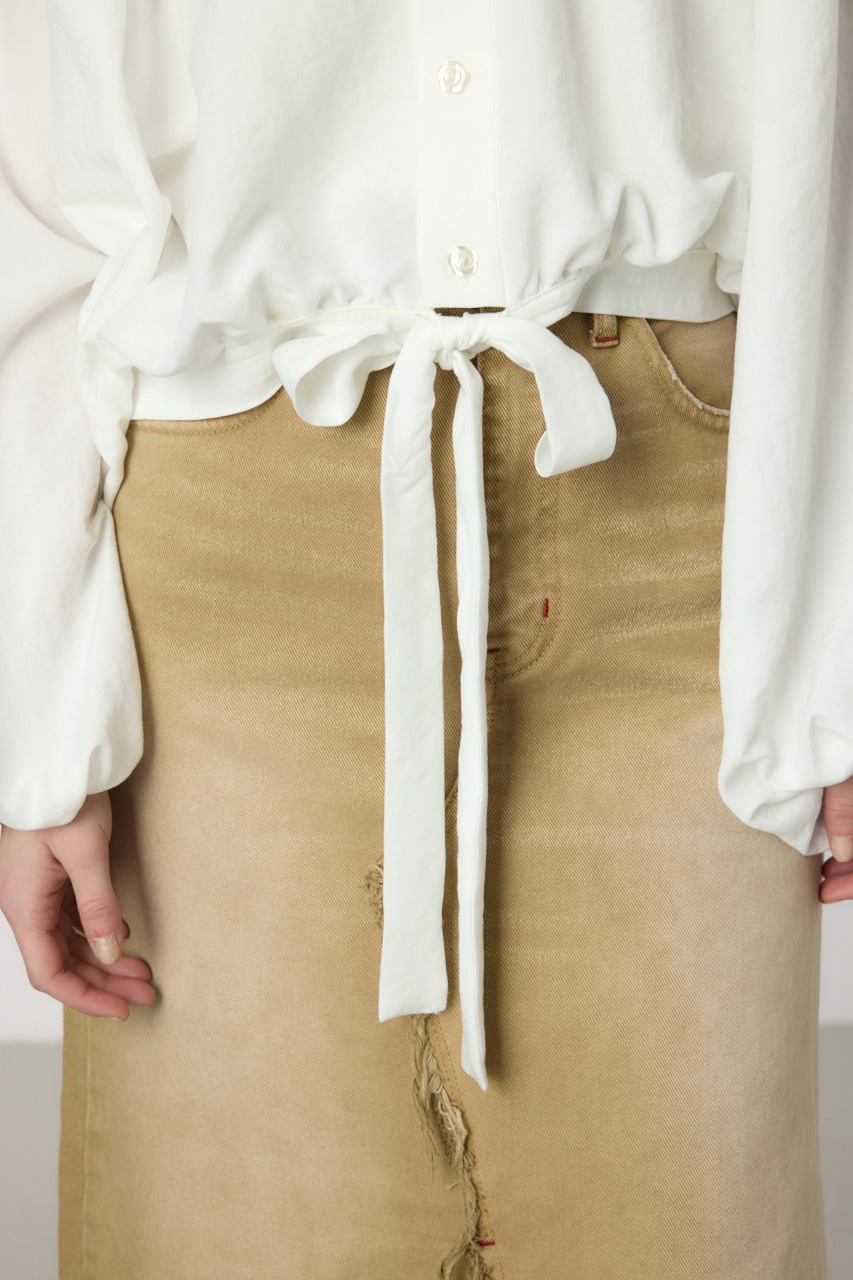 SLIT DENIM MAXI スカート(420ISD11-0841)にトップスとして着用し、ウエストリボンをスタイリングのポイントにしても可愛いです。