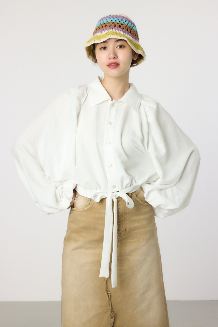 まるでアラジンパンツのような袖ボリュームでふんわりとしたシルエットのシャツ。