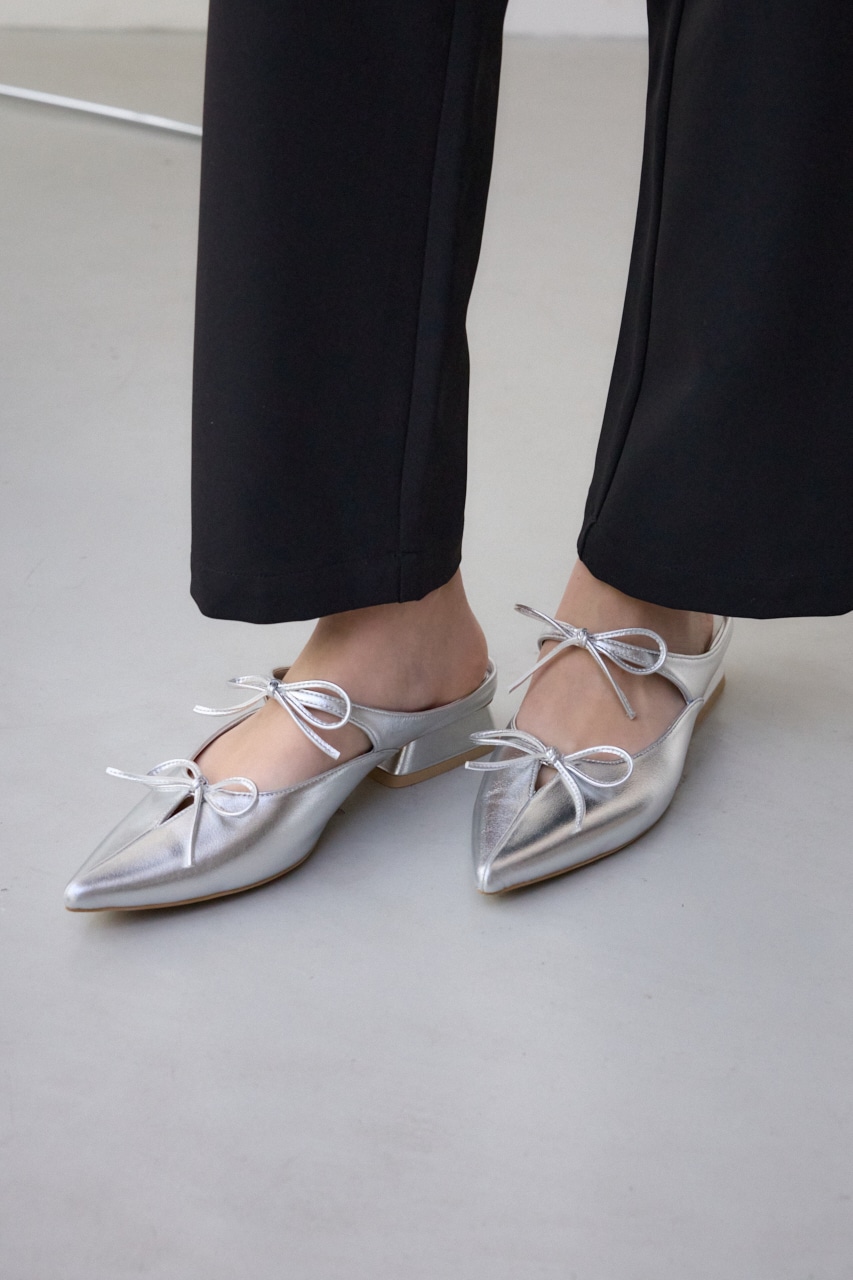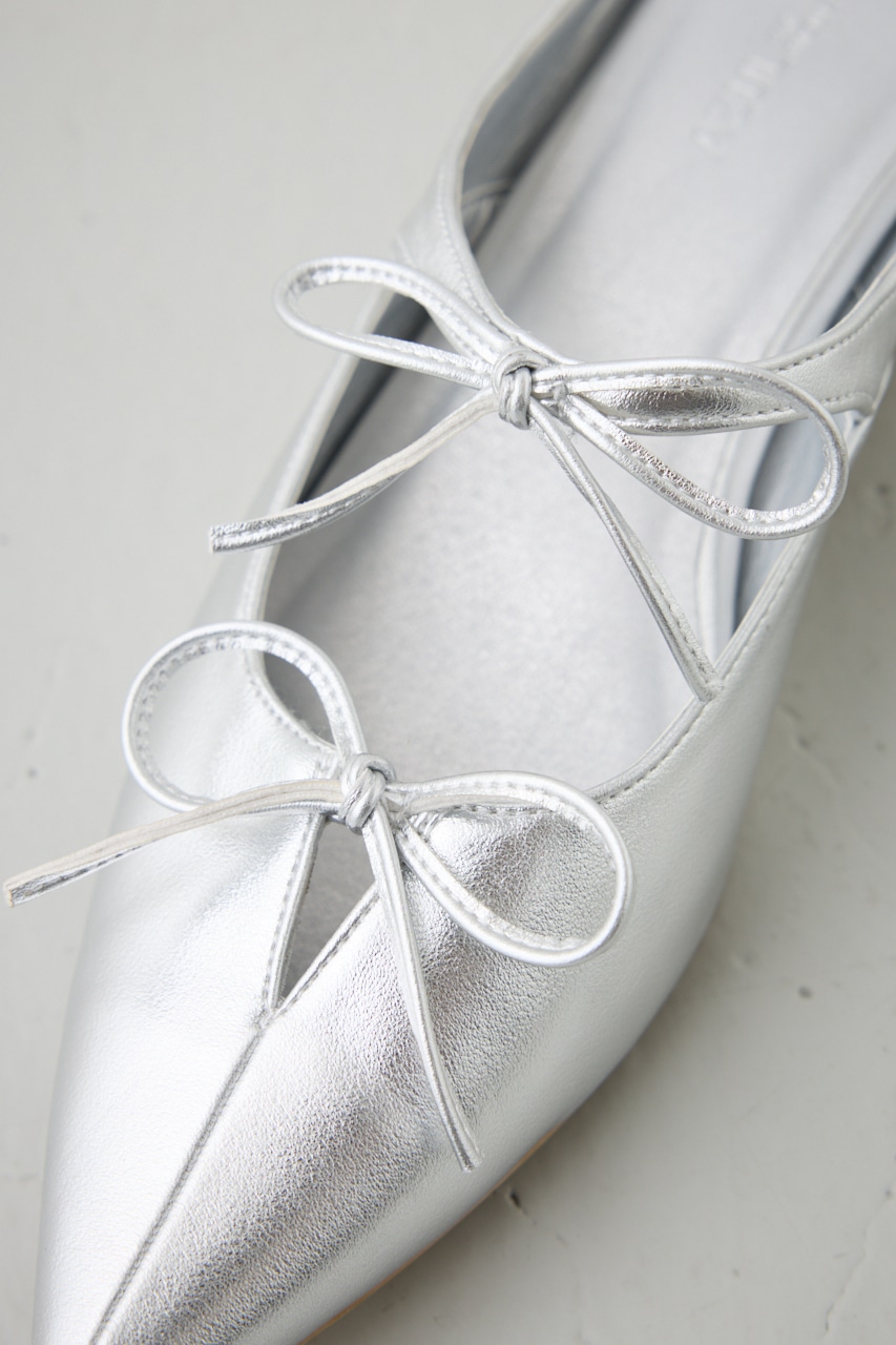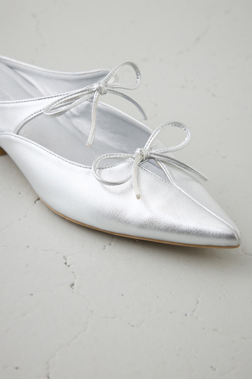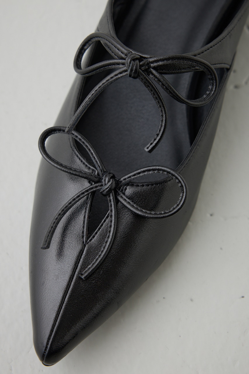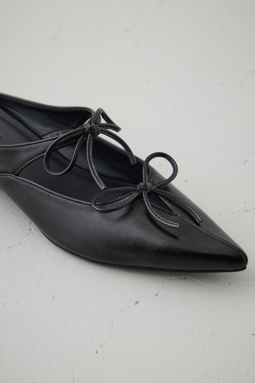 アッパーのラインに添った控えめなリボンモチーフとポインテッドトゥのデザインが新鮮な一足です。