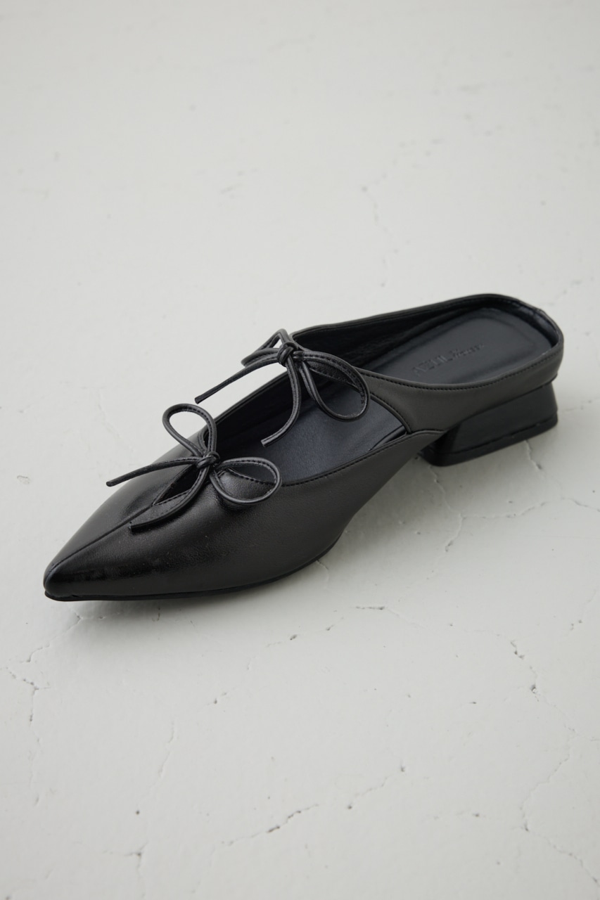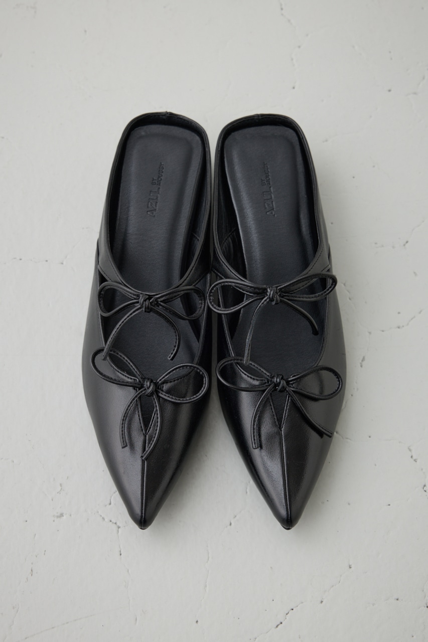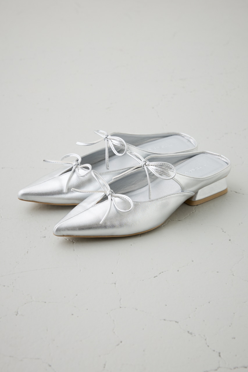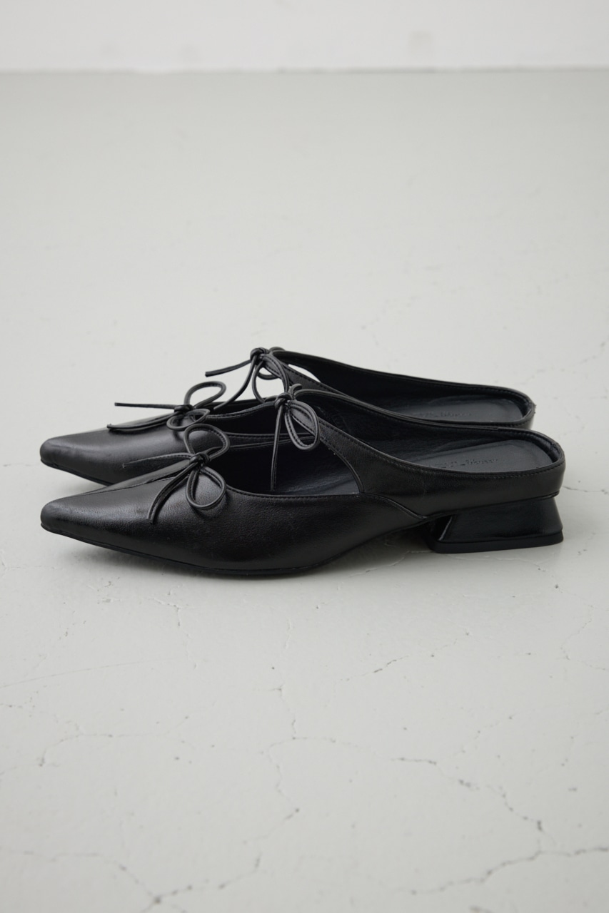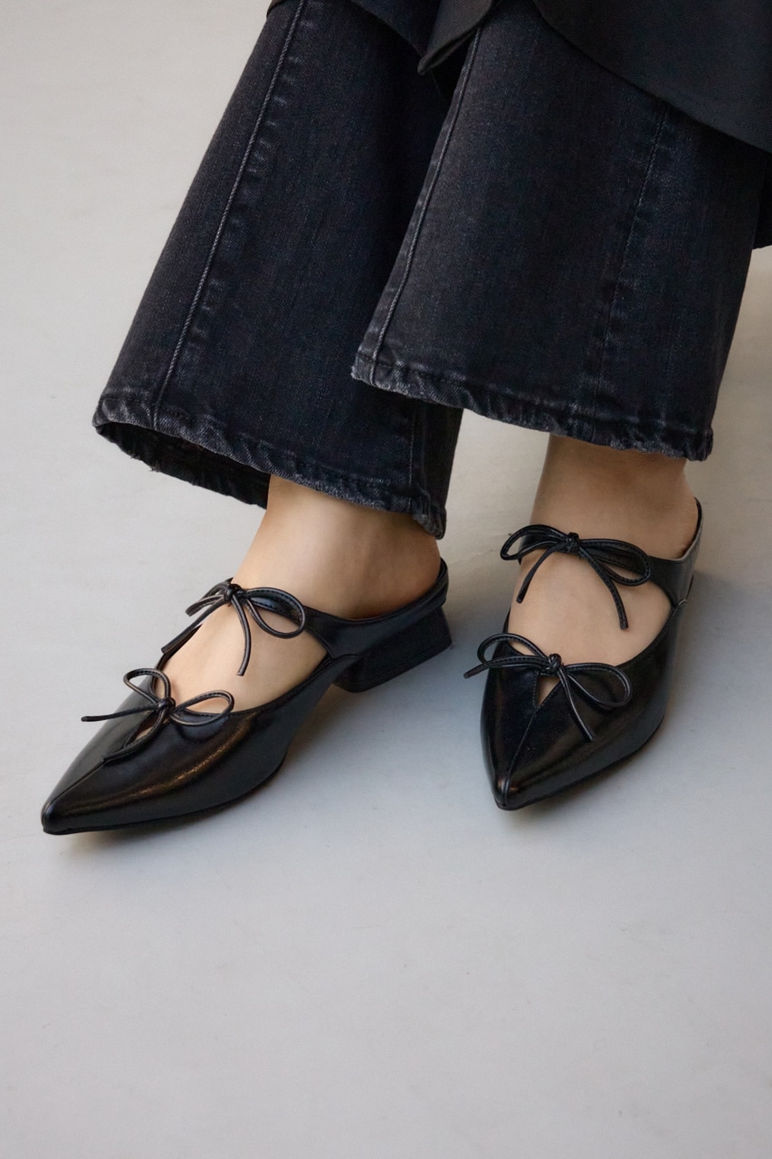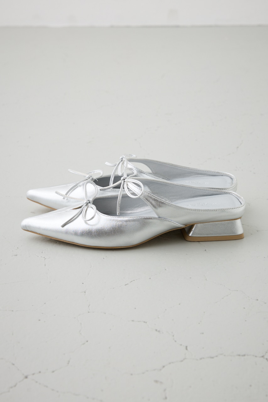 アッパーのラインに添った控えめなリボンモチーフとポインテッドトゥのデザインが新鮮な一足です。