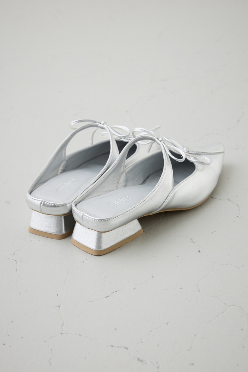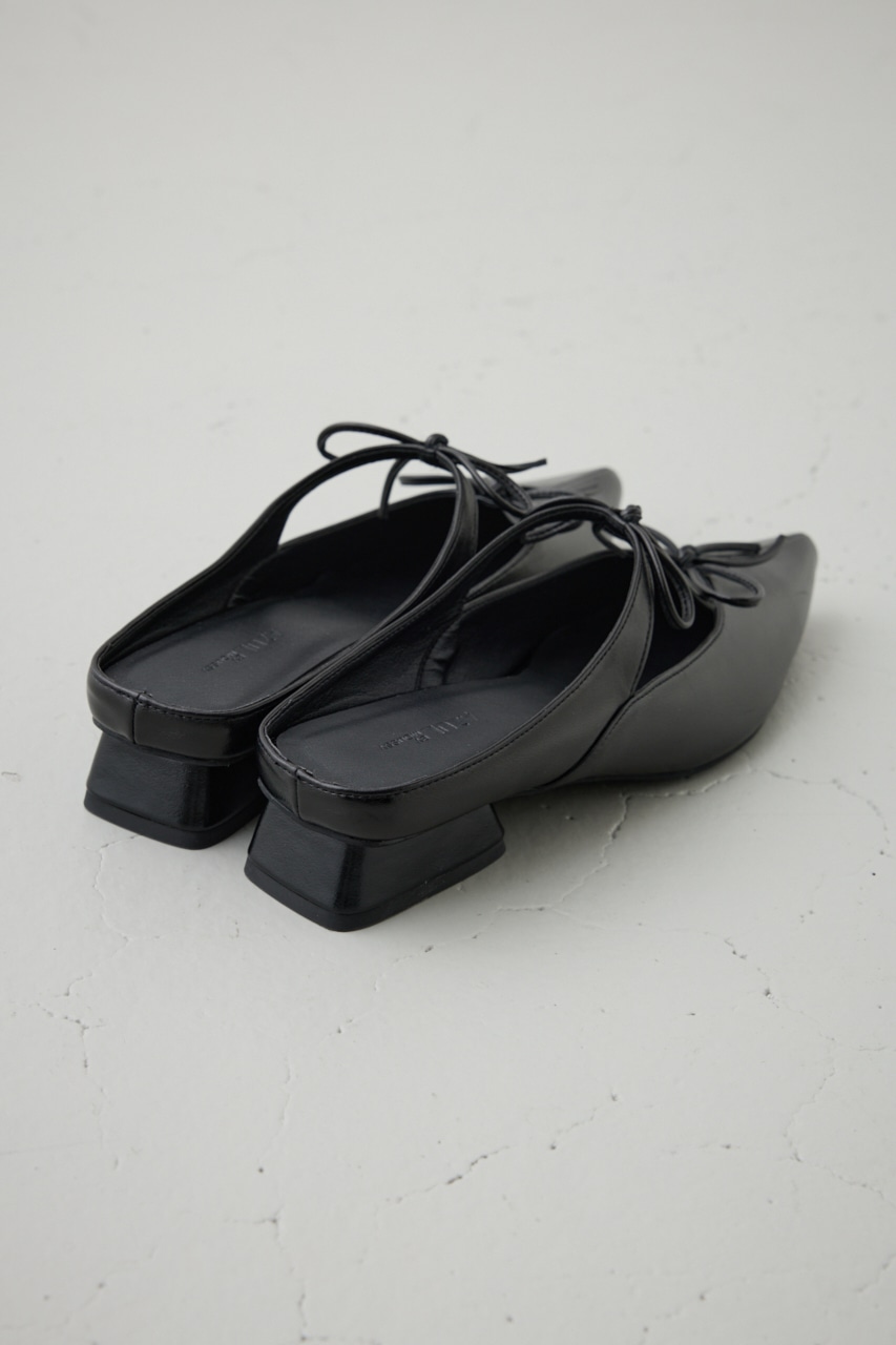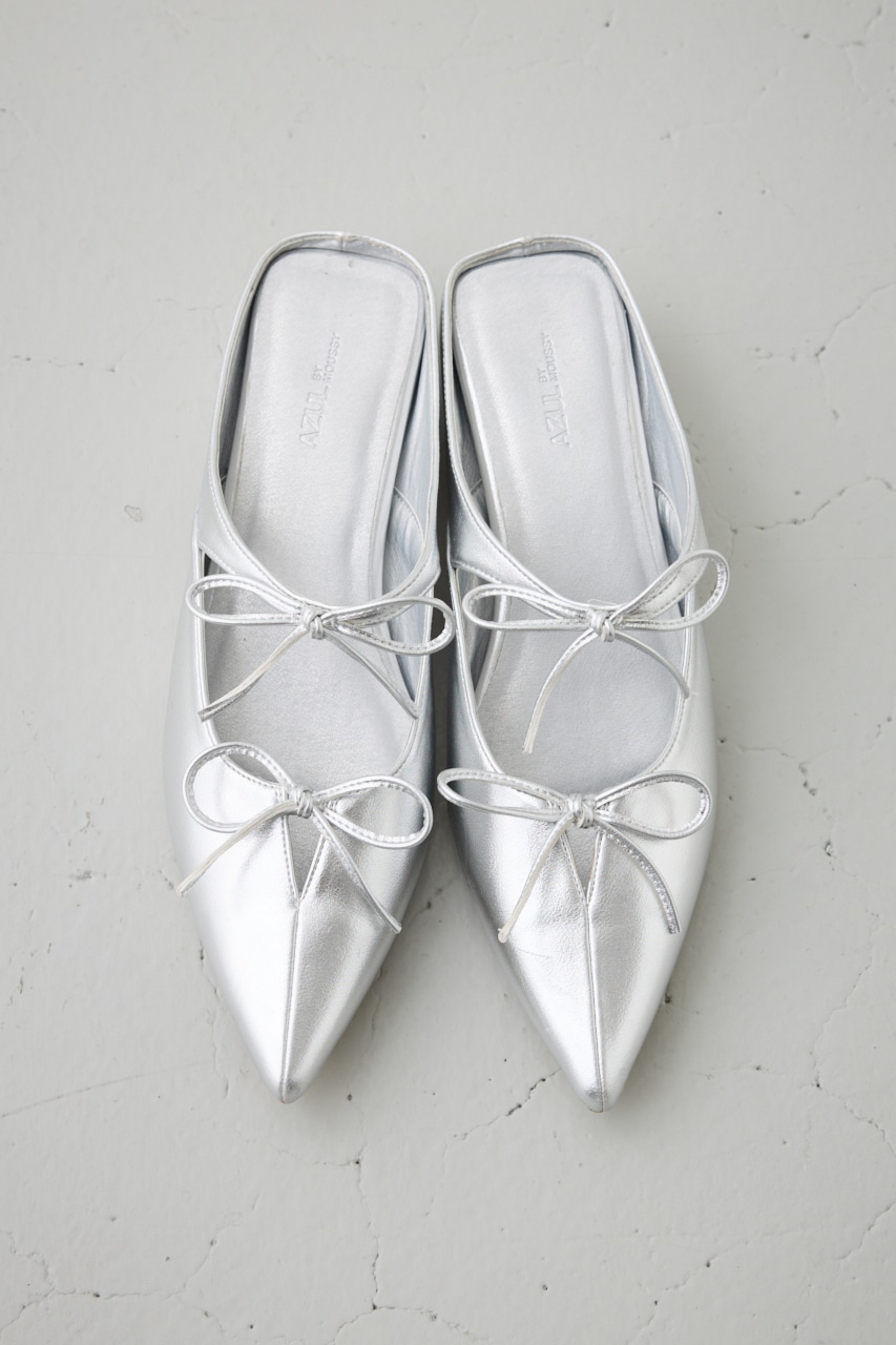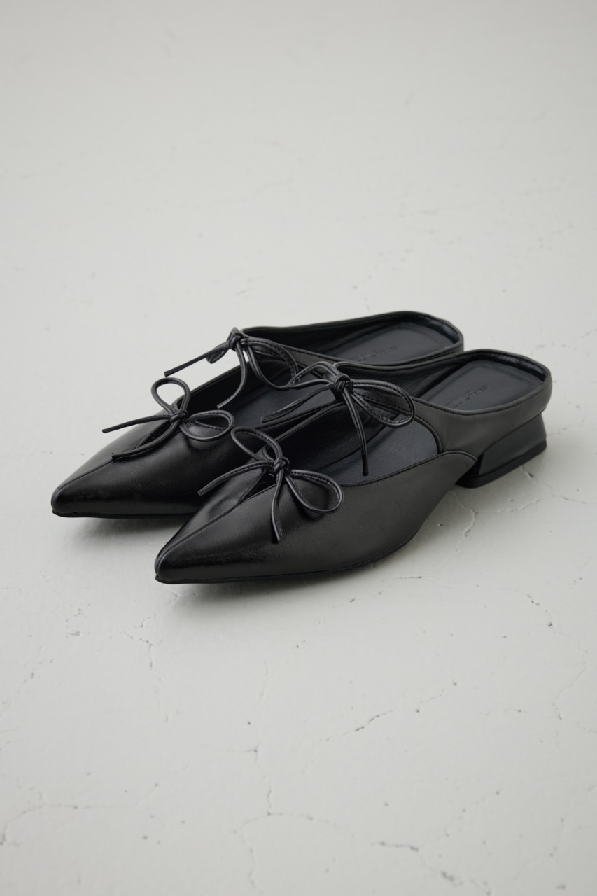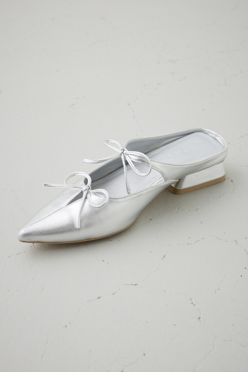 アッパーのラインに添った控えめなリボンモチーフとポインテッドトゥのデザインが新鮮な一足です。