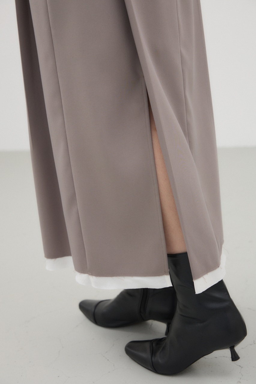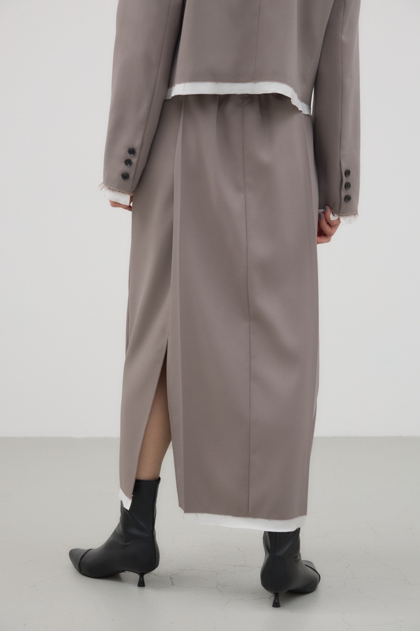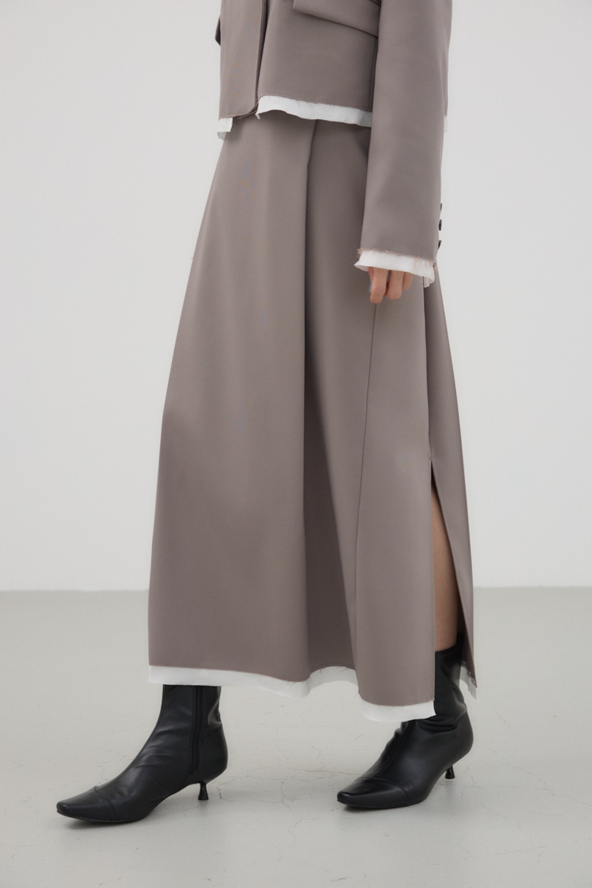 前後に入ったタックと、裾の切りっぱなしの別布がポイントのナロースカート。