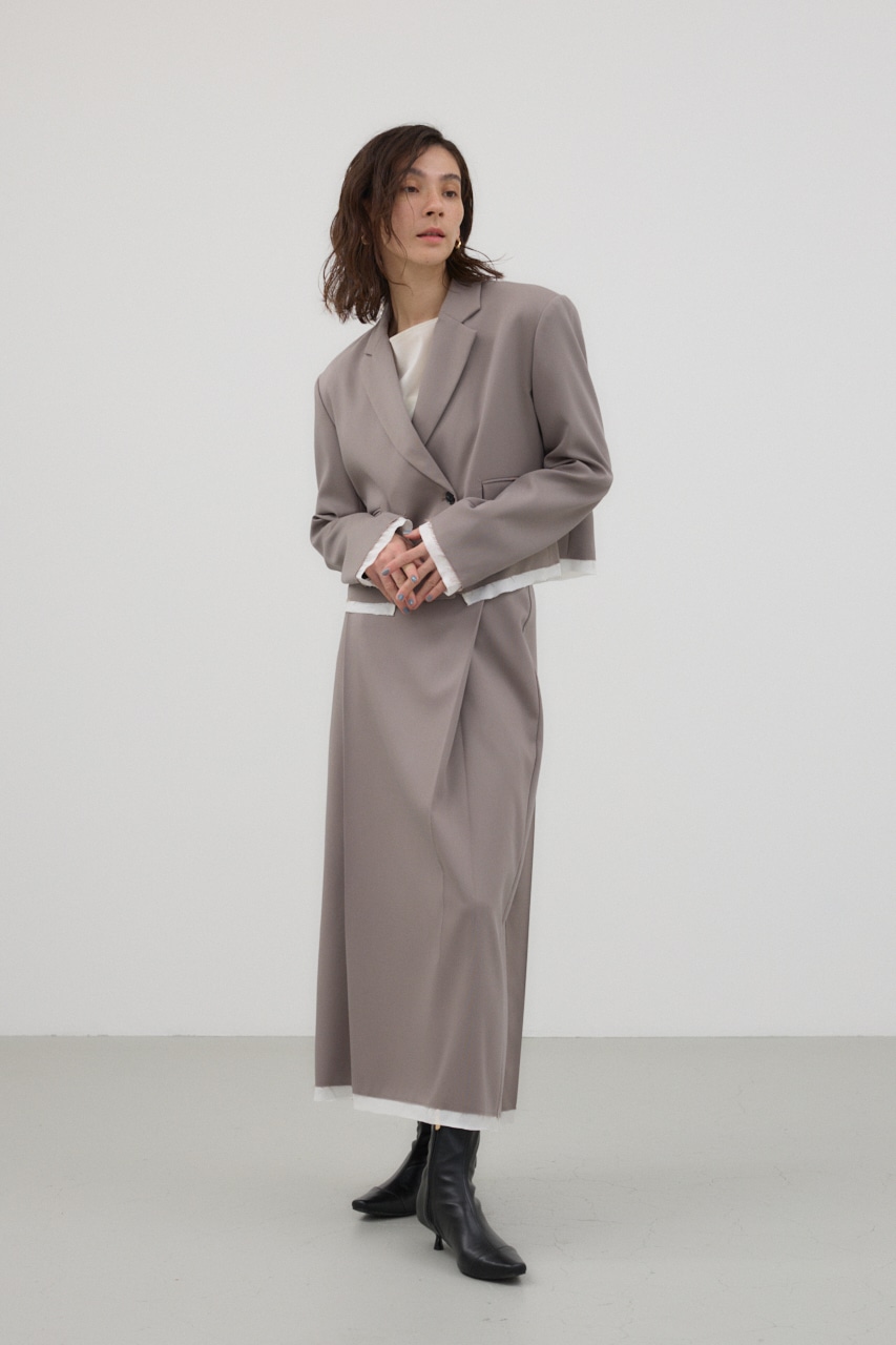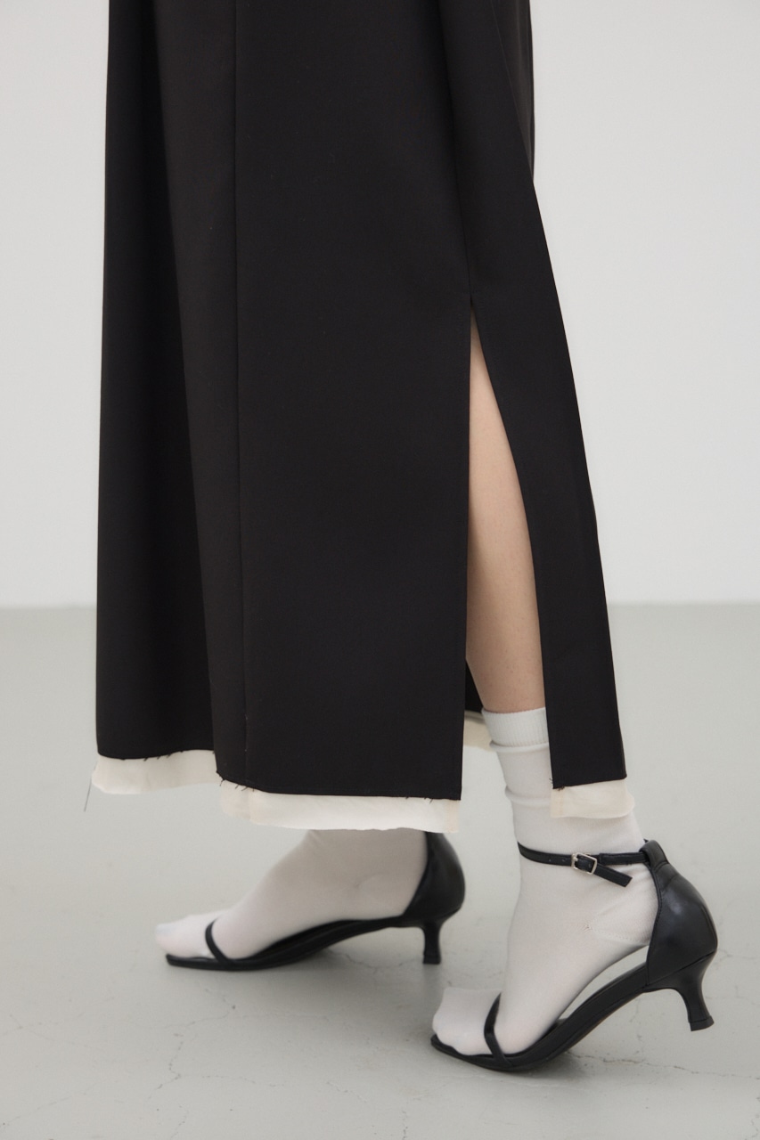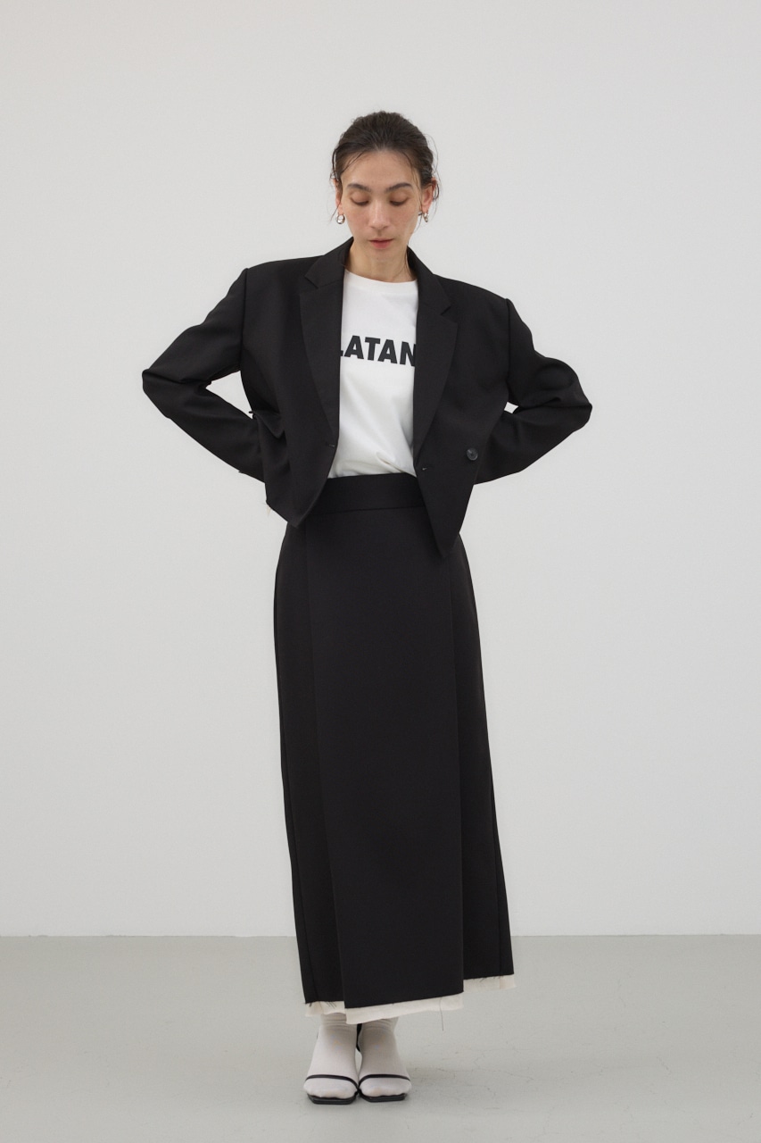 前後に入ったタックと、裾の切りっぱなしの別布がポイントのナロースカート。