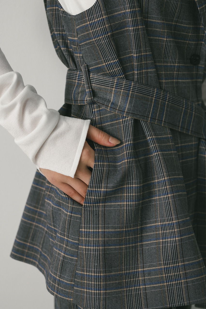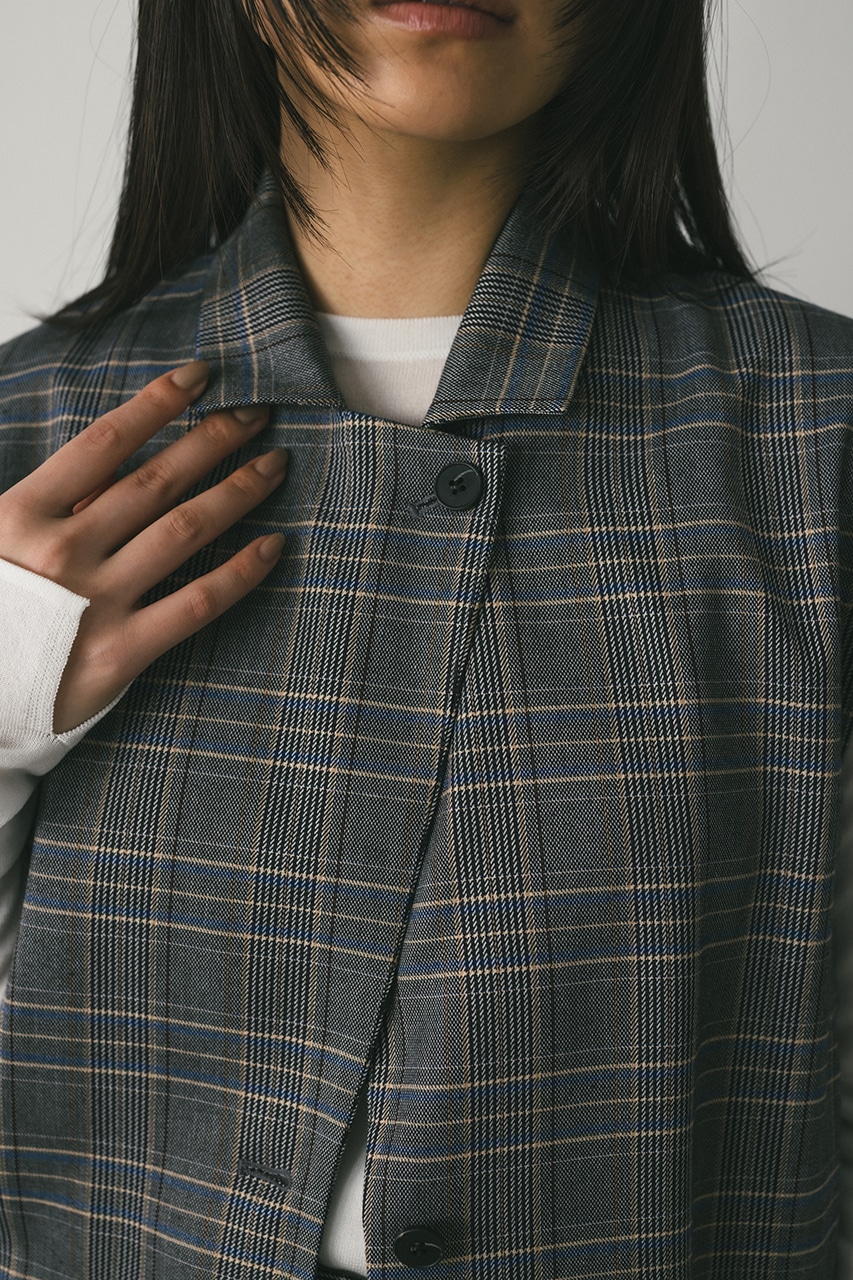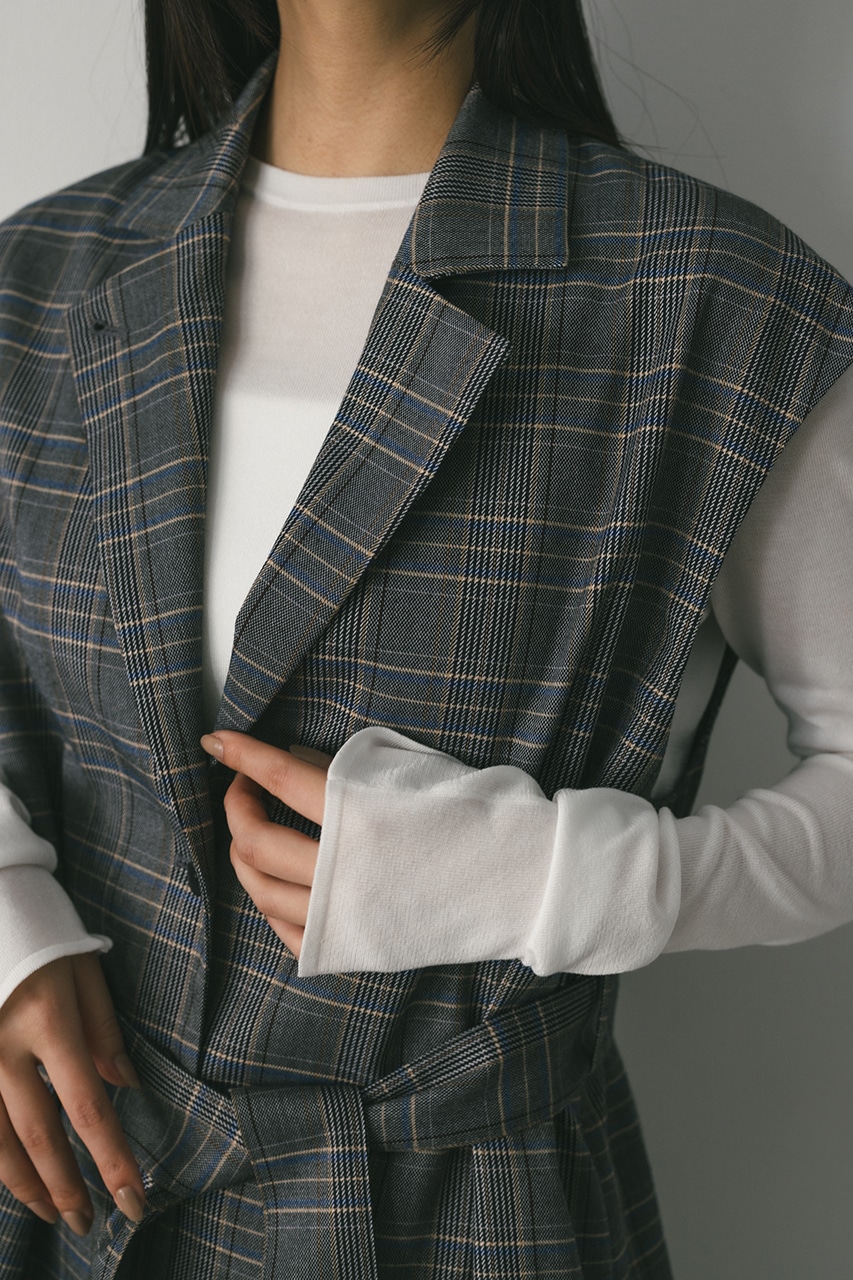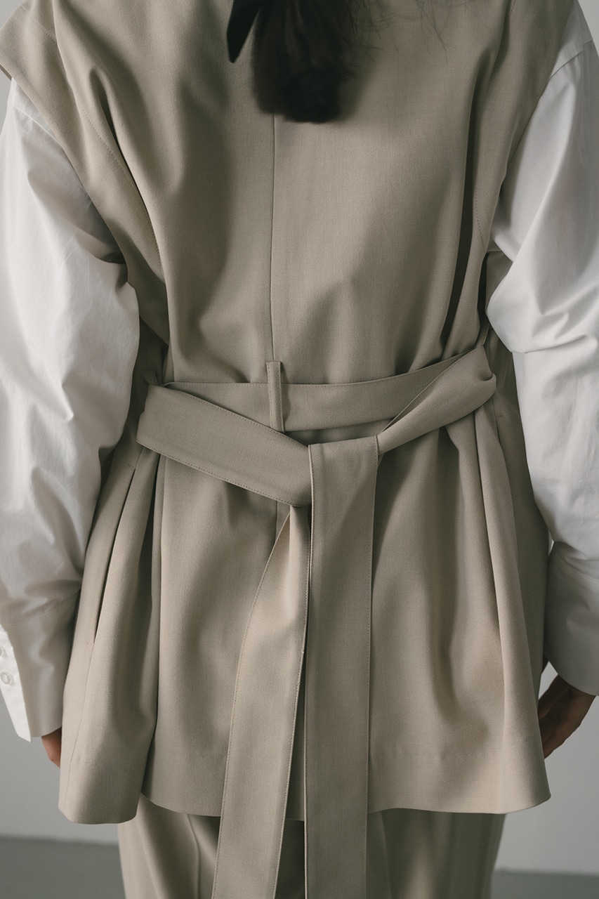 ゆったりフレアラインがこなれた印象に導くルーズテーラードベスト。