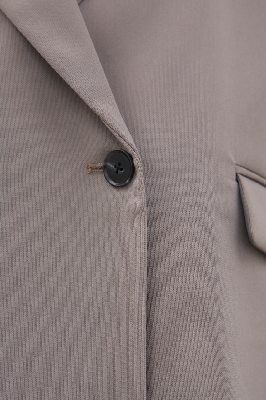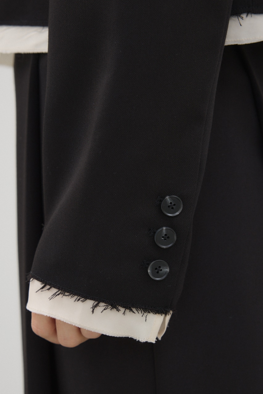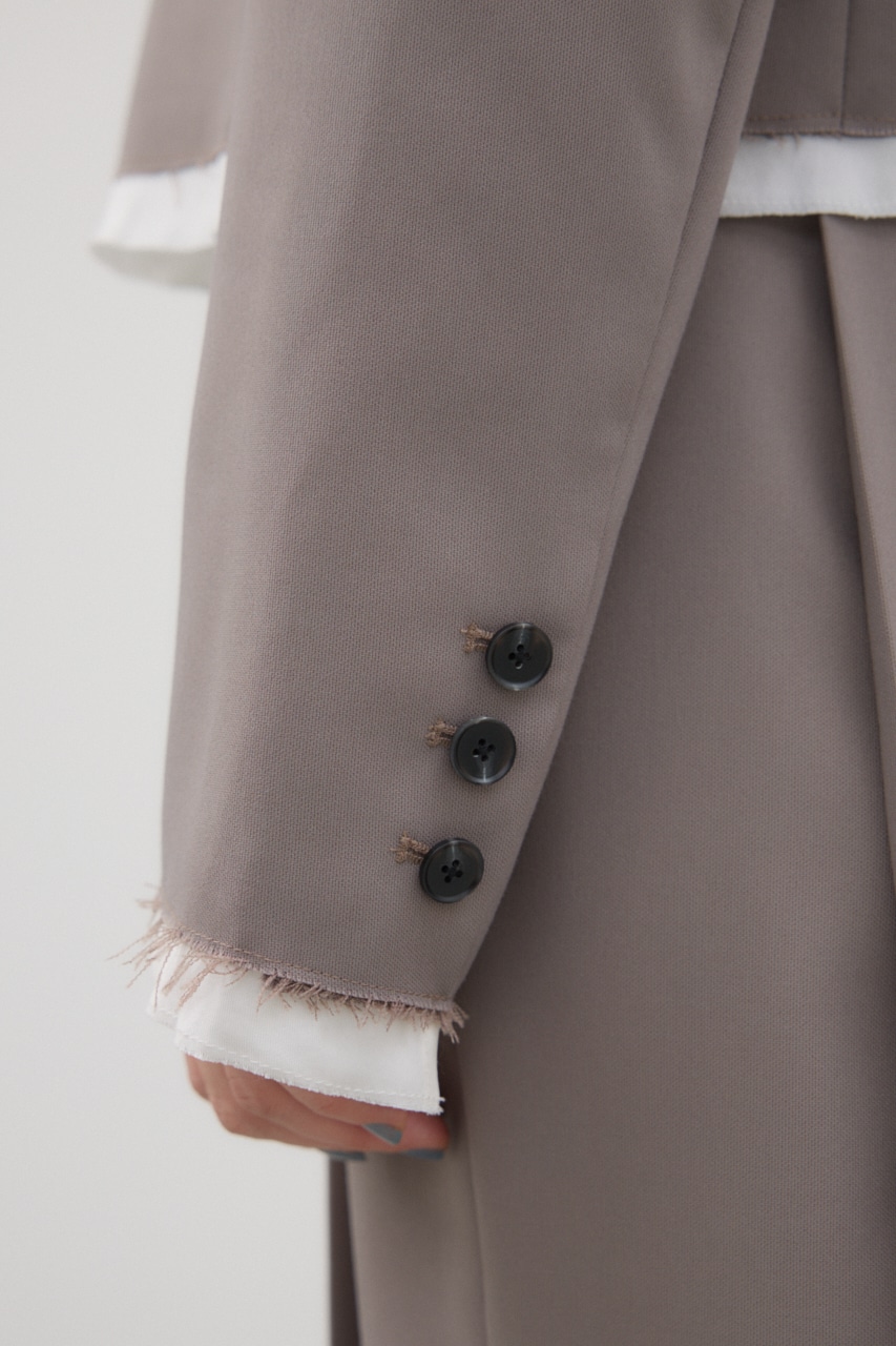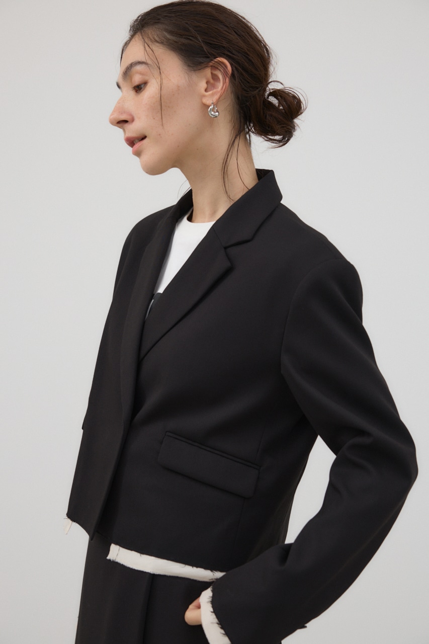 広めの肩幅で今年らしいシルエットのショートジャケット。