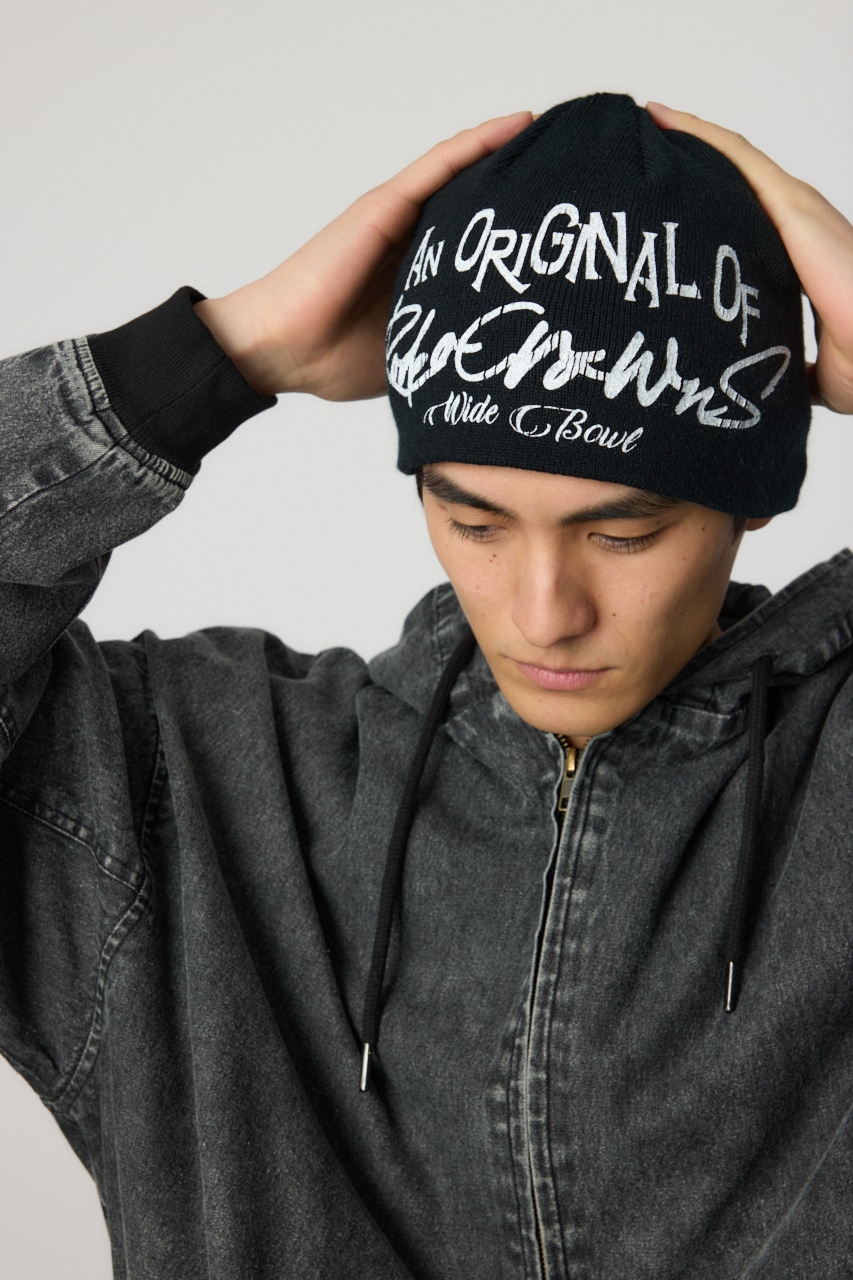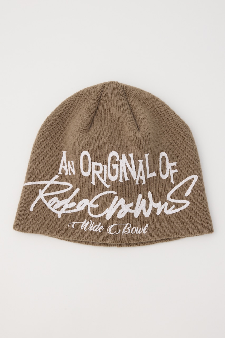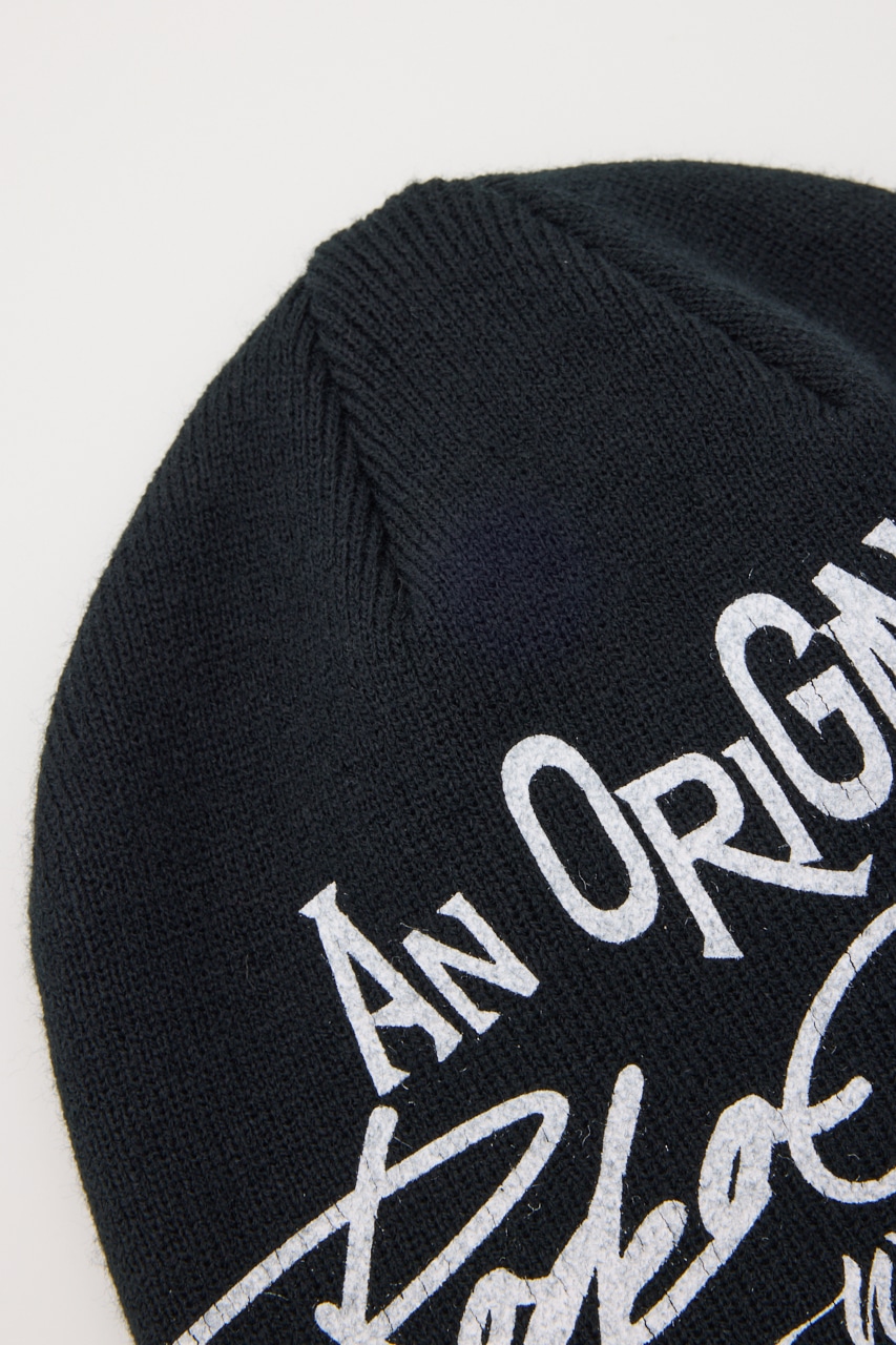 オリジナルロゴデザインが目を引くビーニーニットキャップ。
