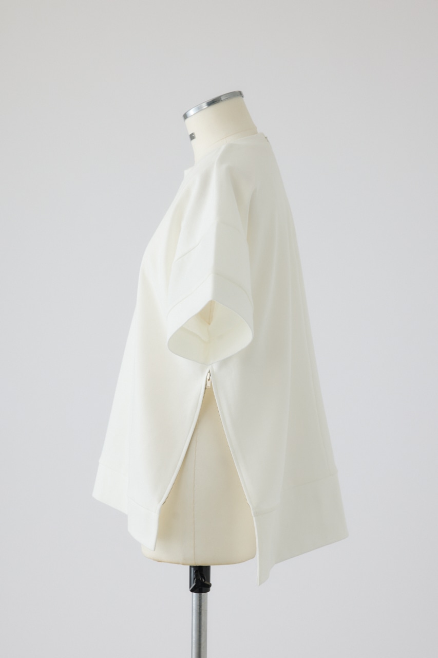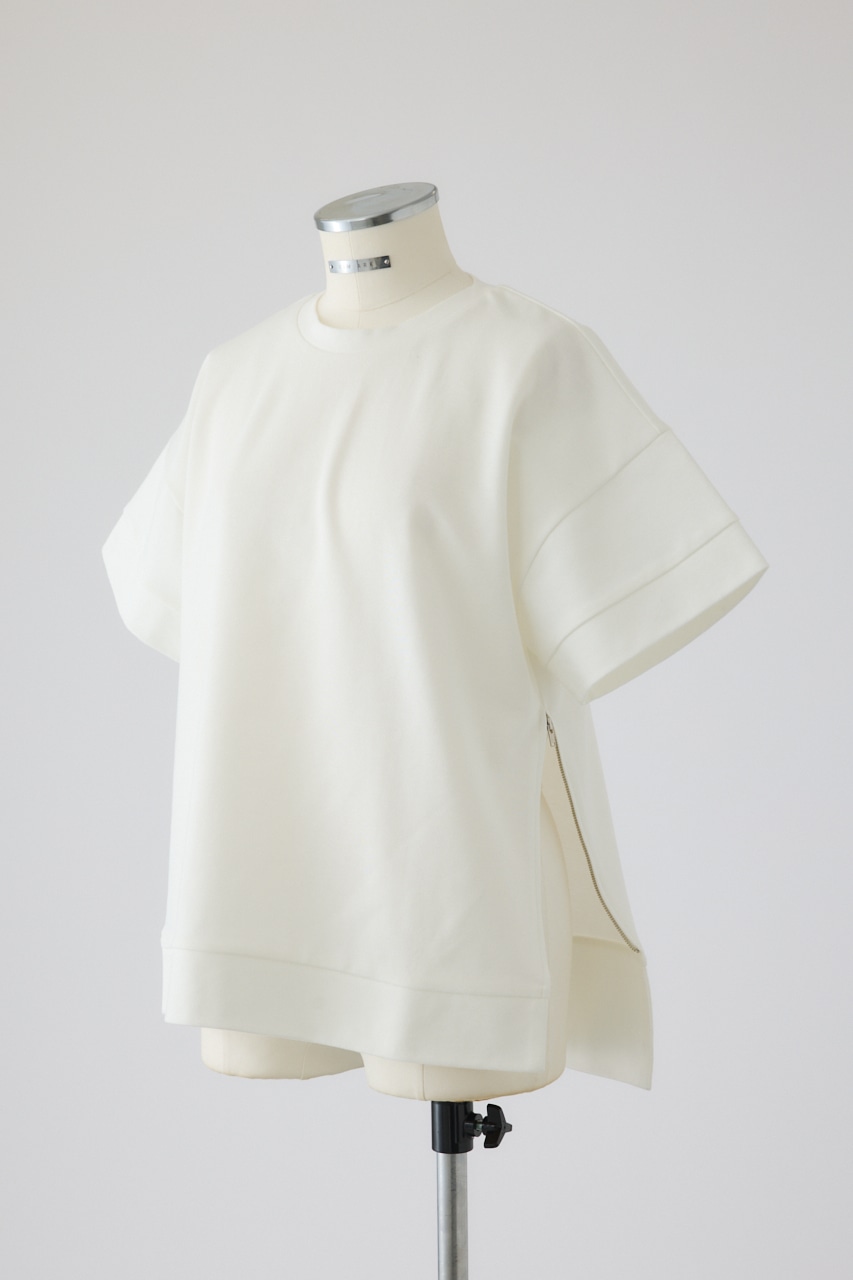 ■POINT:サイドにメタルファスナーをあしらった半袖トップス。