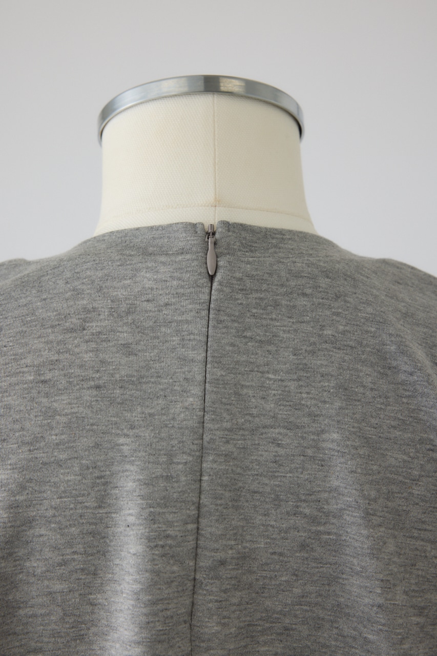 ファスナーを開けばさりげない肌見せとAラインシルエットで意外性のある1着。