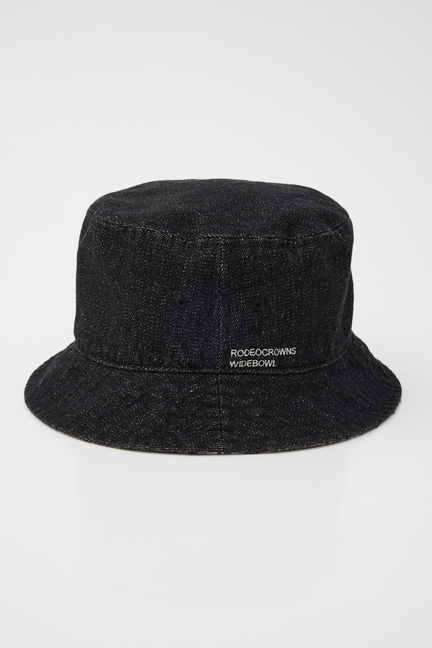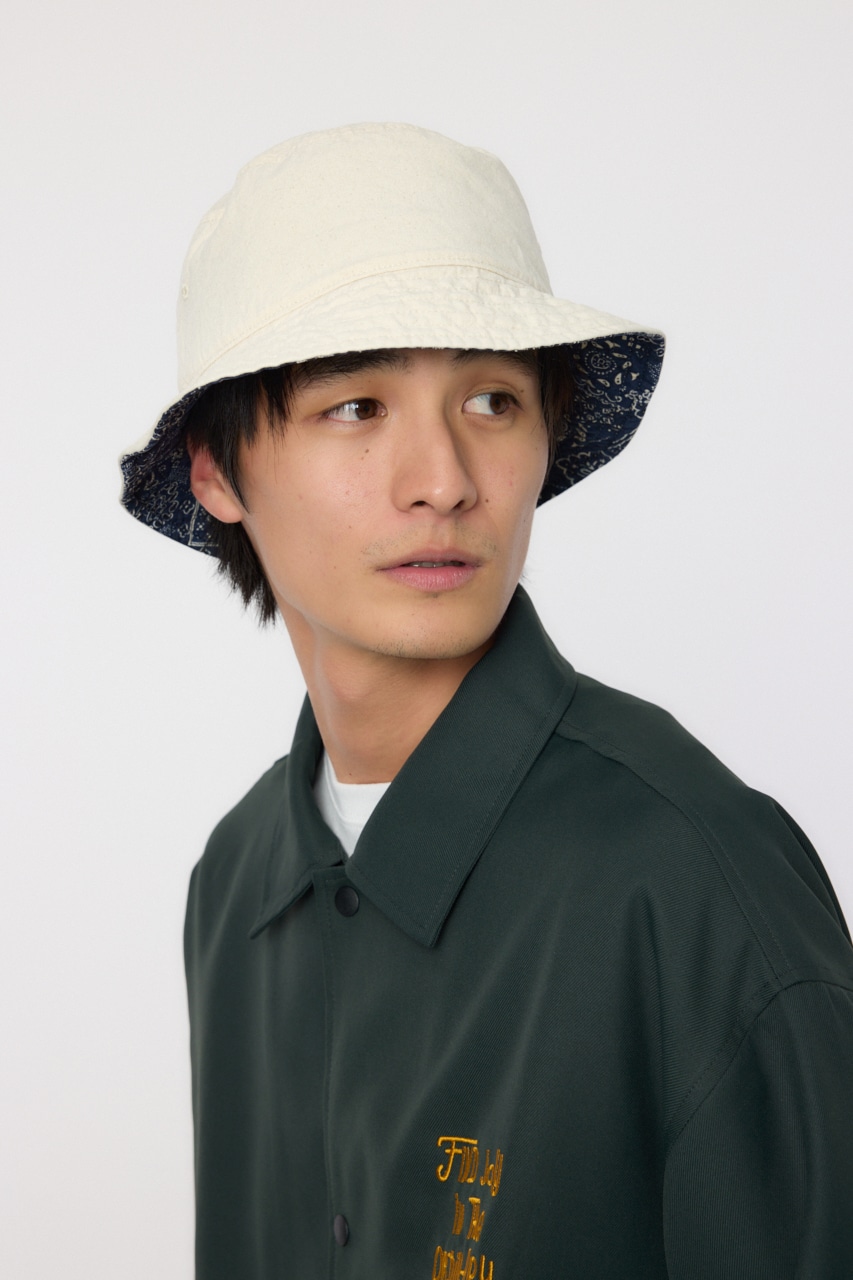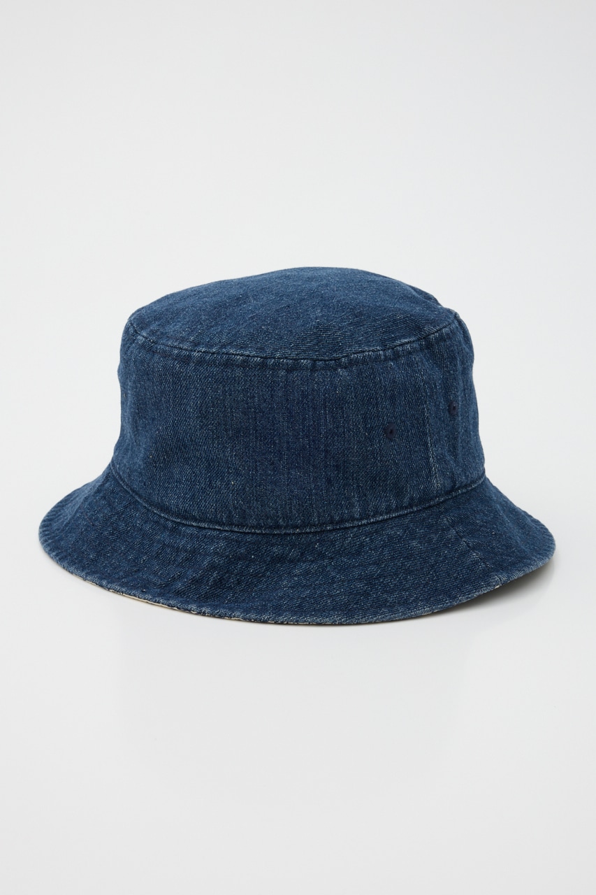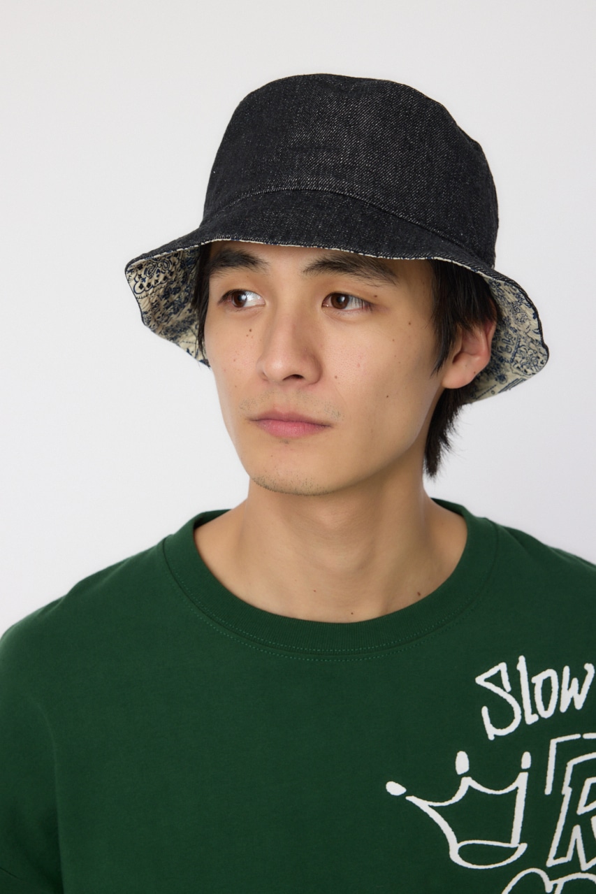 ツバ裏部分をバンダナ柄であしらったデニム素材のバケットハット。