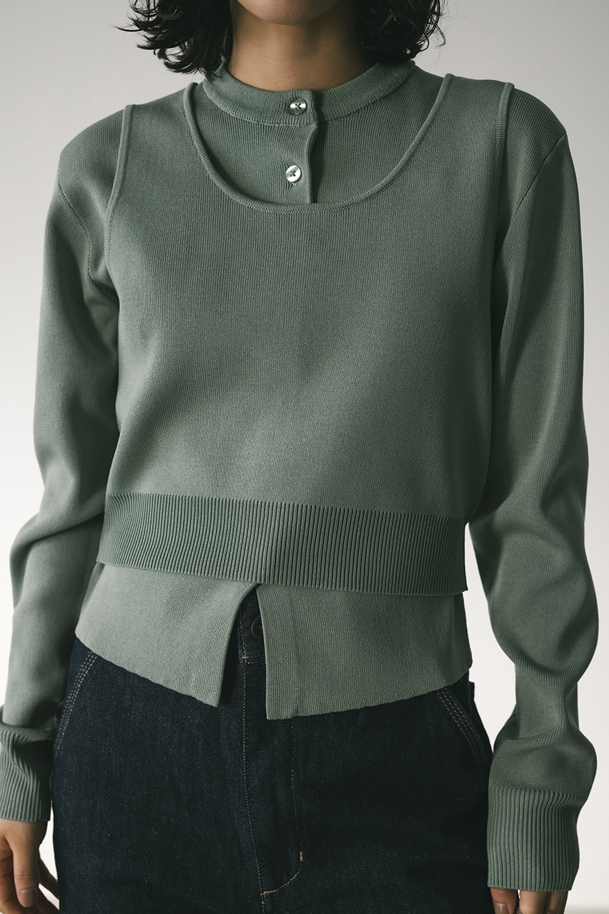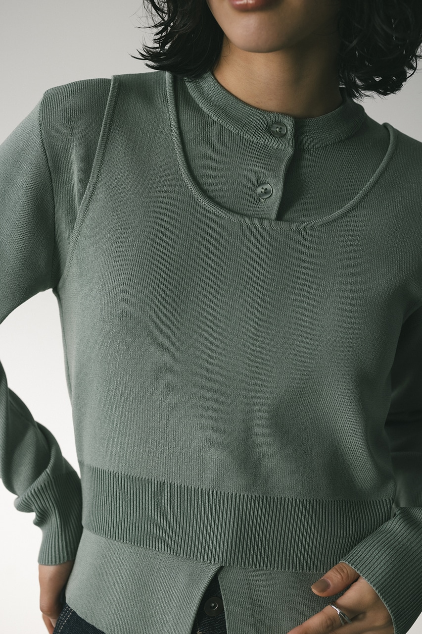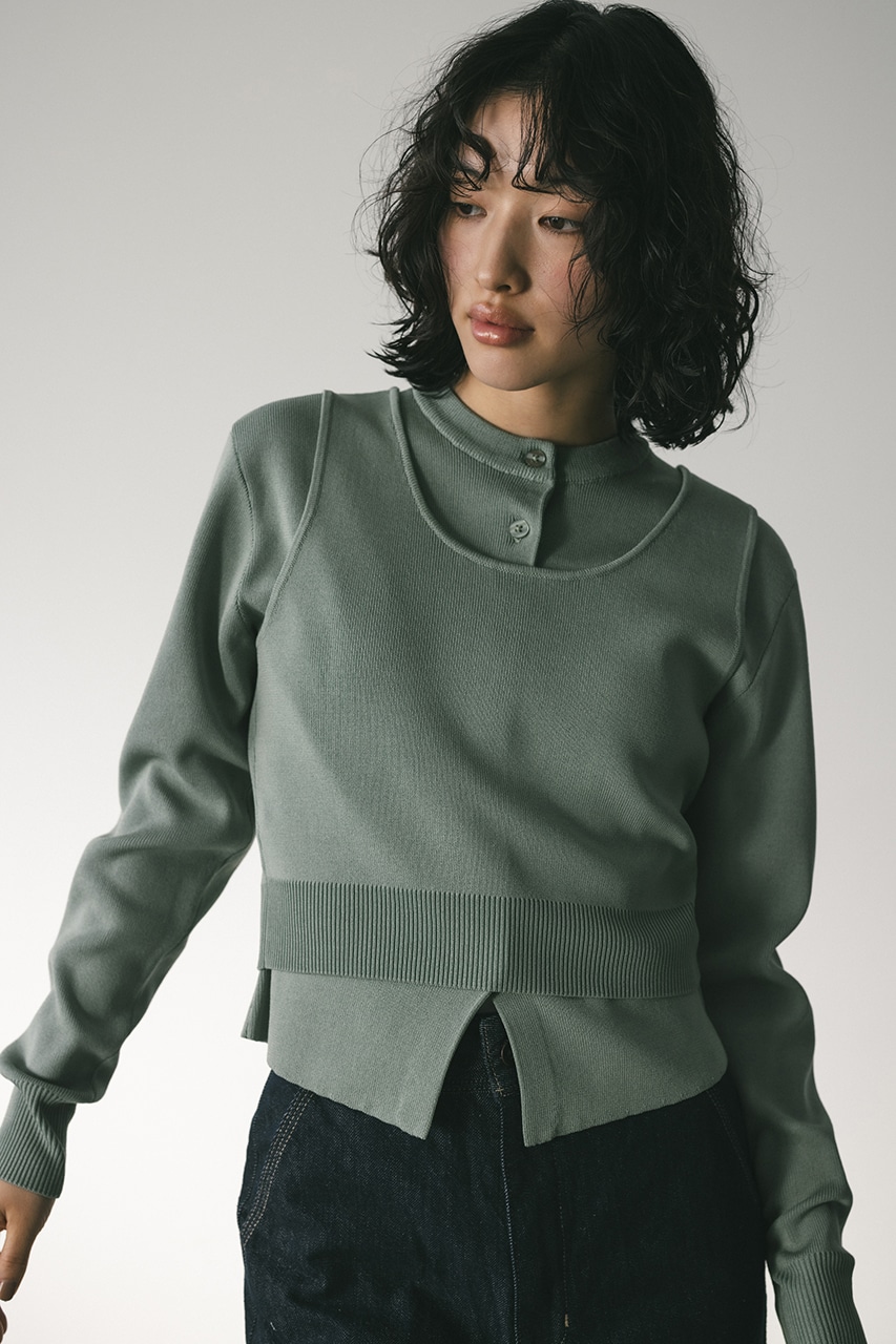 スタイルアップ見えするコンパクトなシルエットのニットカーデと前後2WAYで着用できるタンクのセットアイテム。