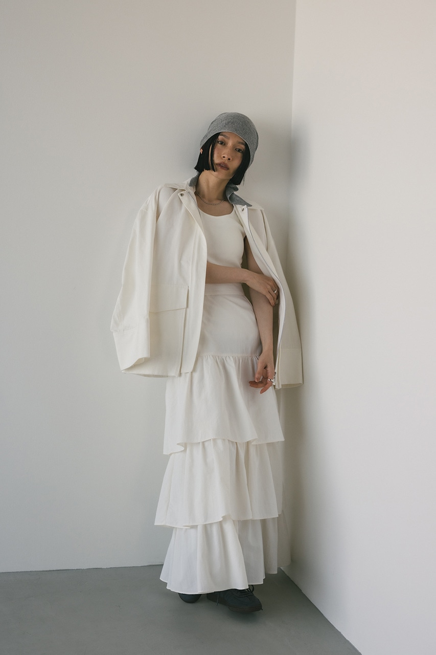 フロント逆開ファスナーでスタイリングバランスがとりやすい一枚。