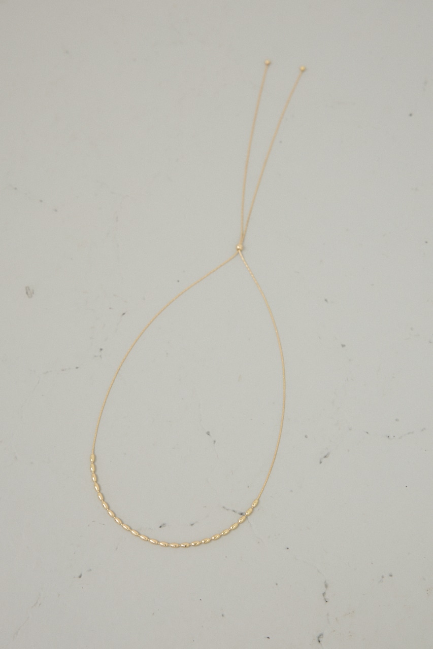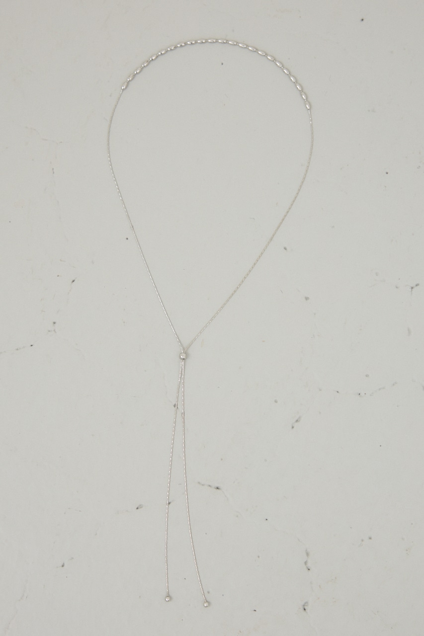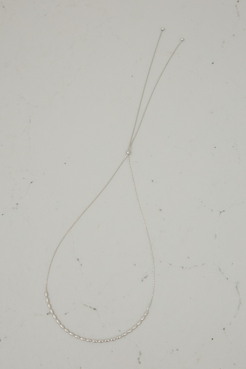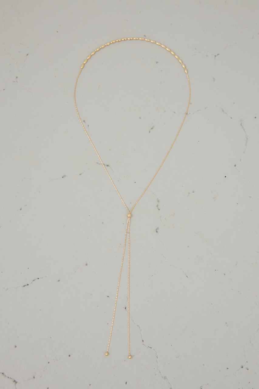 お米の粒のような華奢なライスチェーンがポイントのラリエットネックレス。