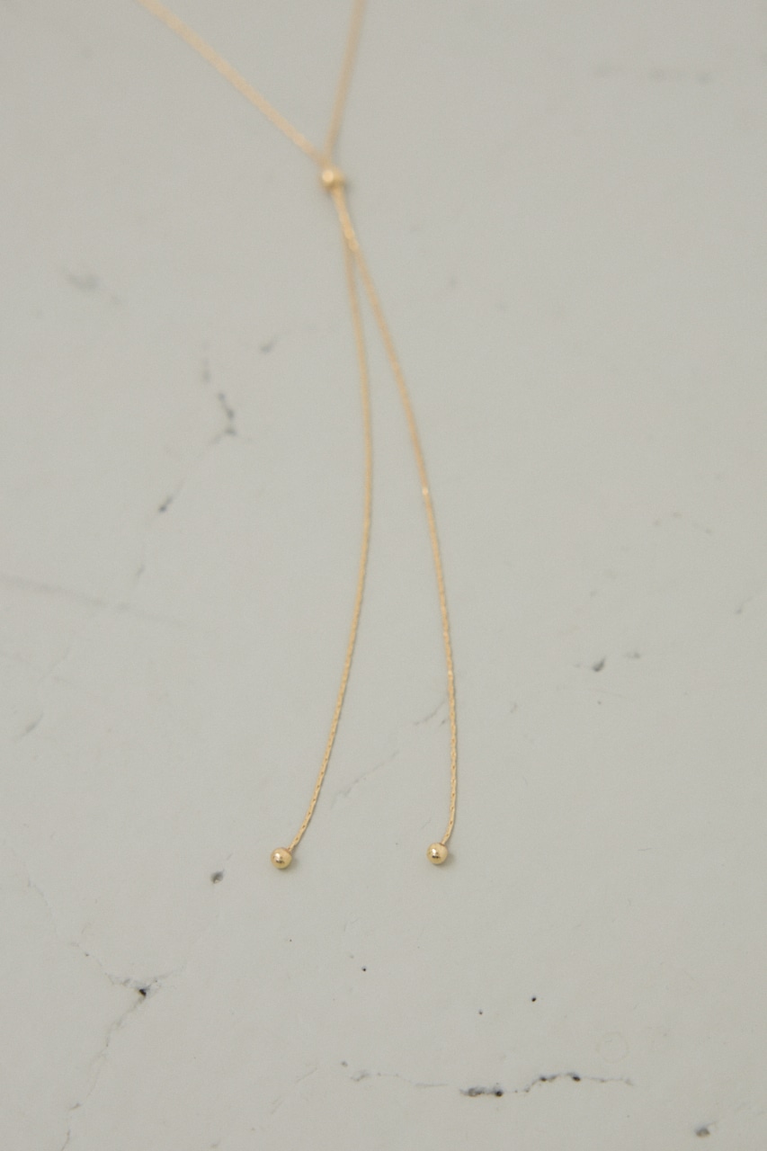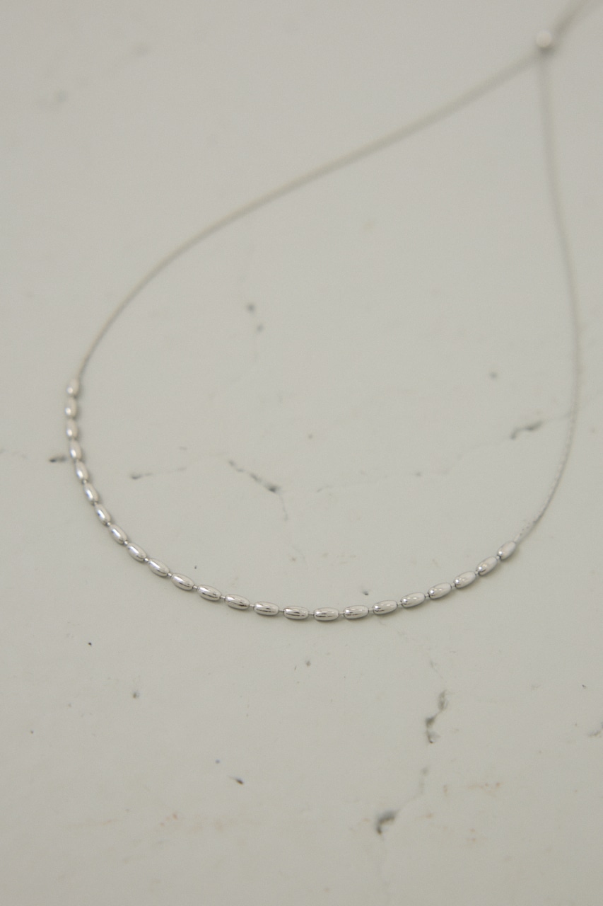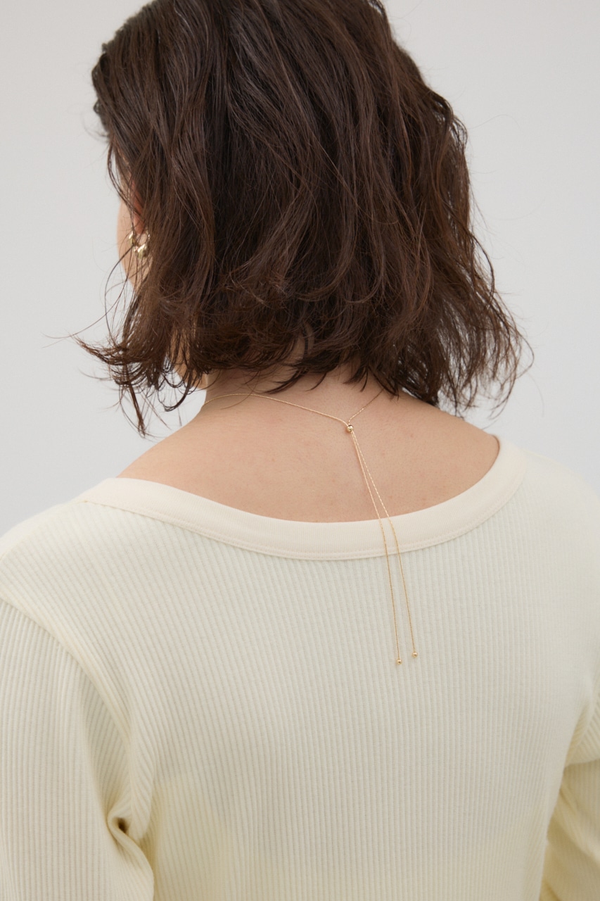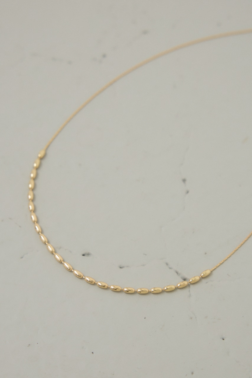 お米の粒のような華奢なライスチェーンがポイントのラリエットネックレス。
